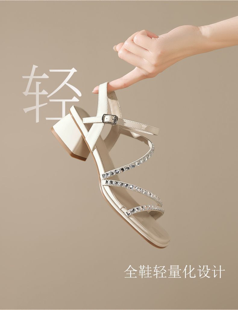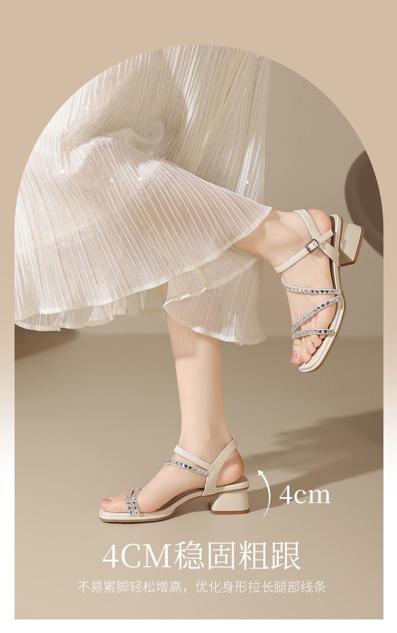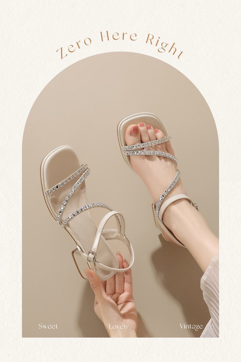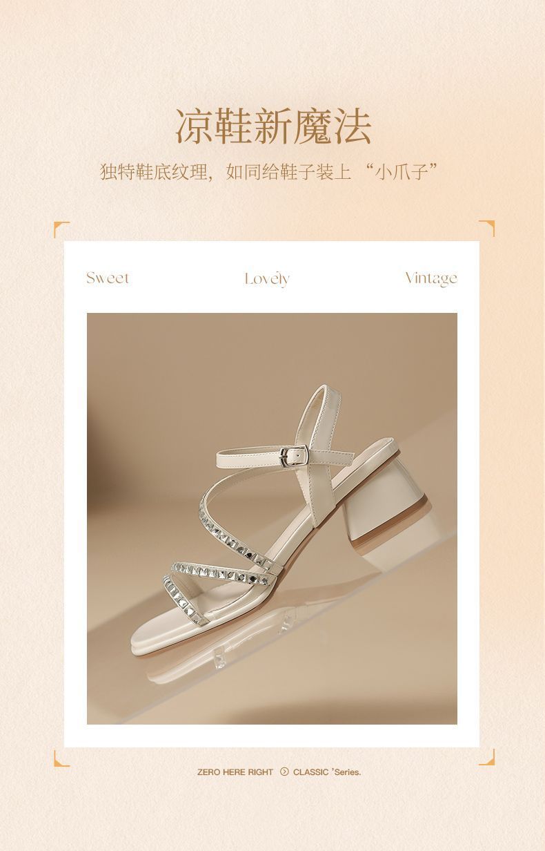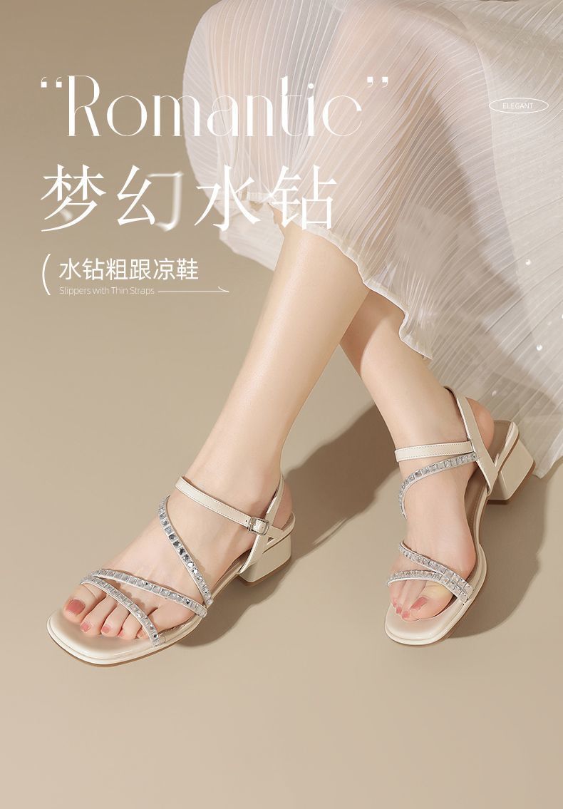 ZHR则则仙女水钻粗跟夏季凉鞋女2025年新款爆款高级鞋超软宽脚鞋