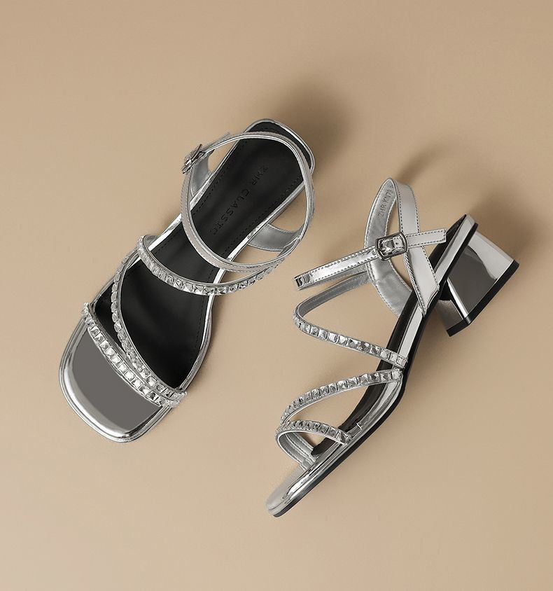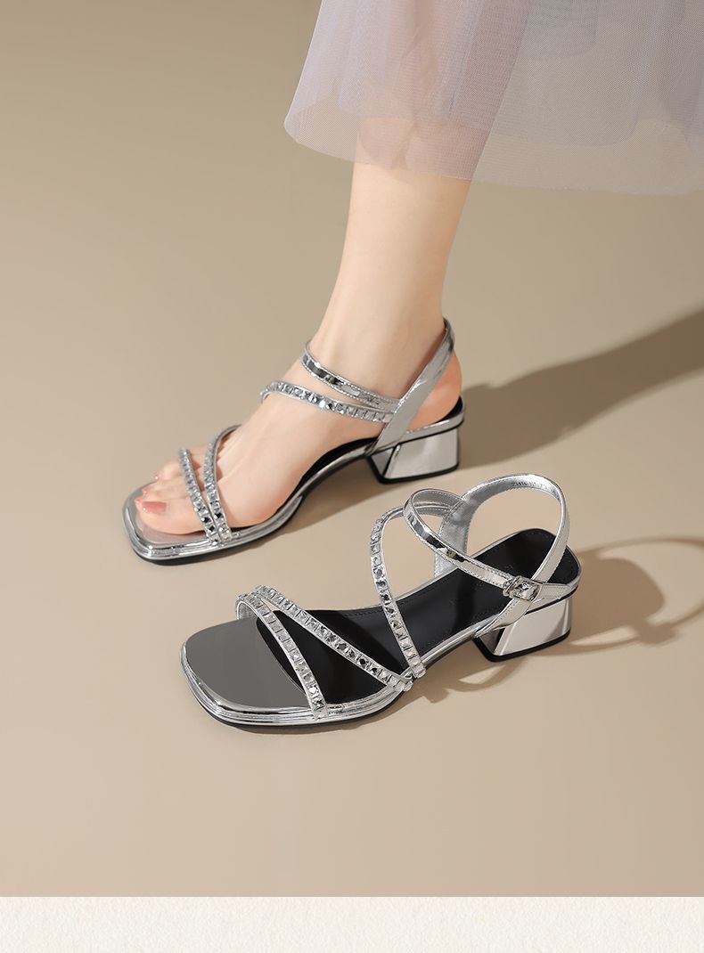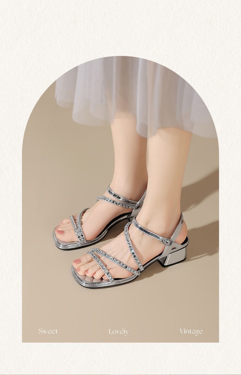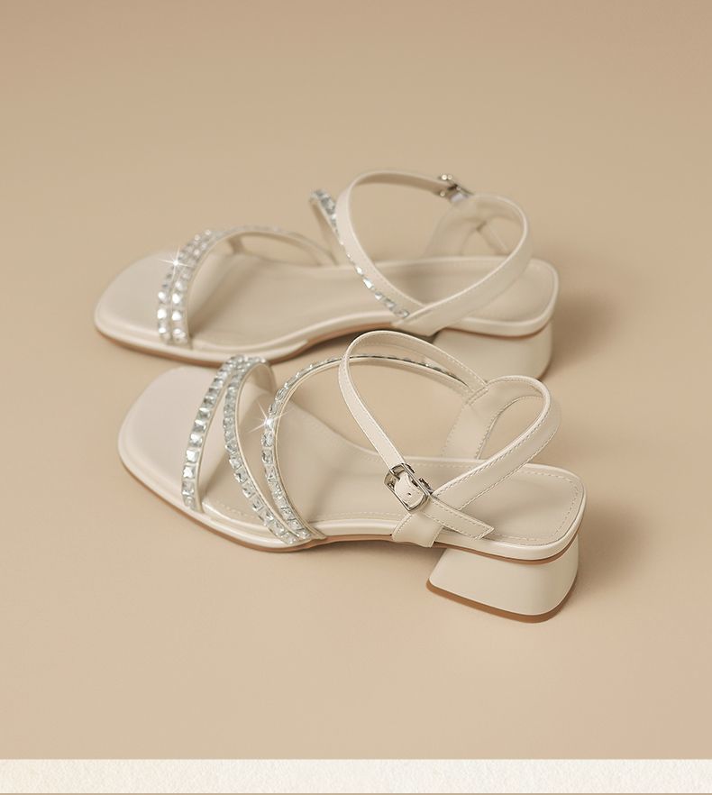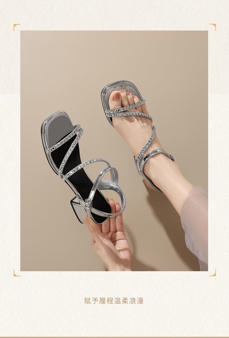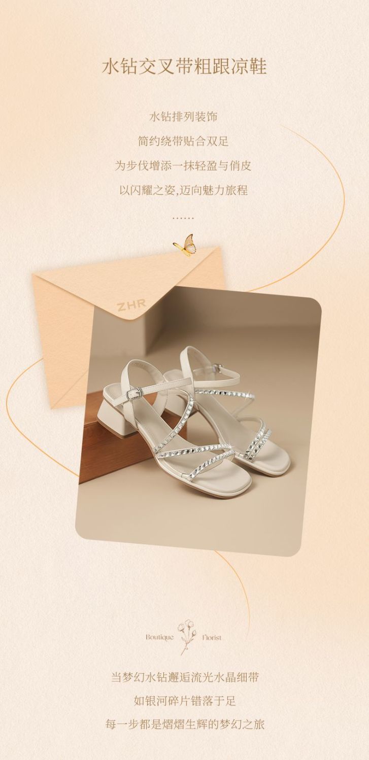 ZHR则则仙女水钻粗跟夏季凉鞋女2025年新款爆款高级鞋超软宽脚鞋