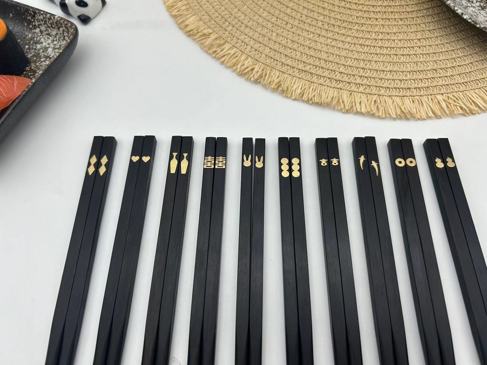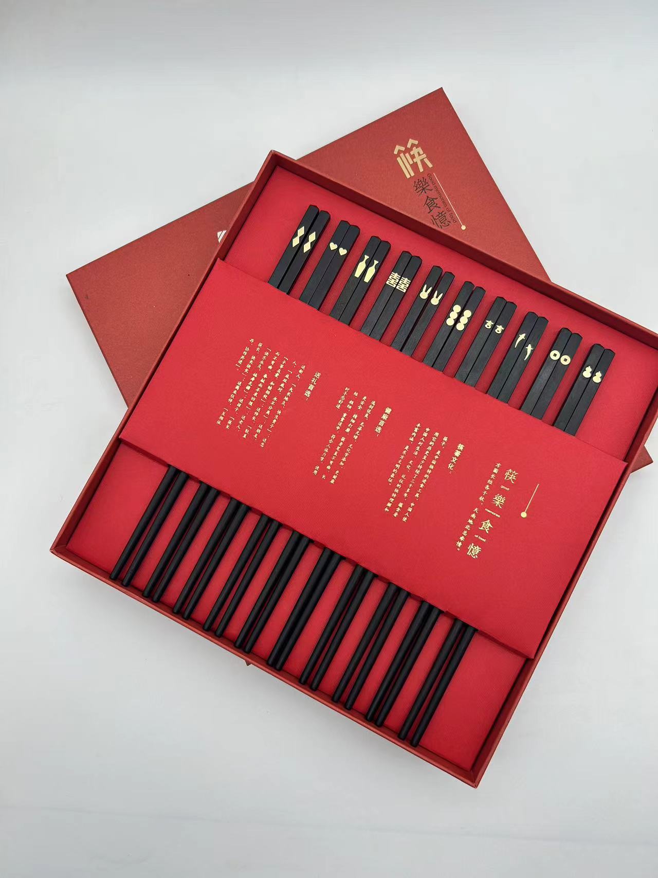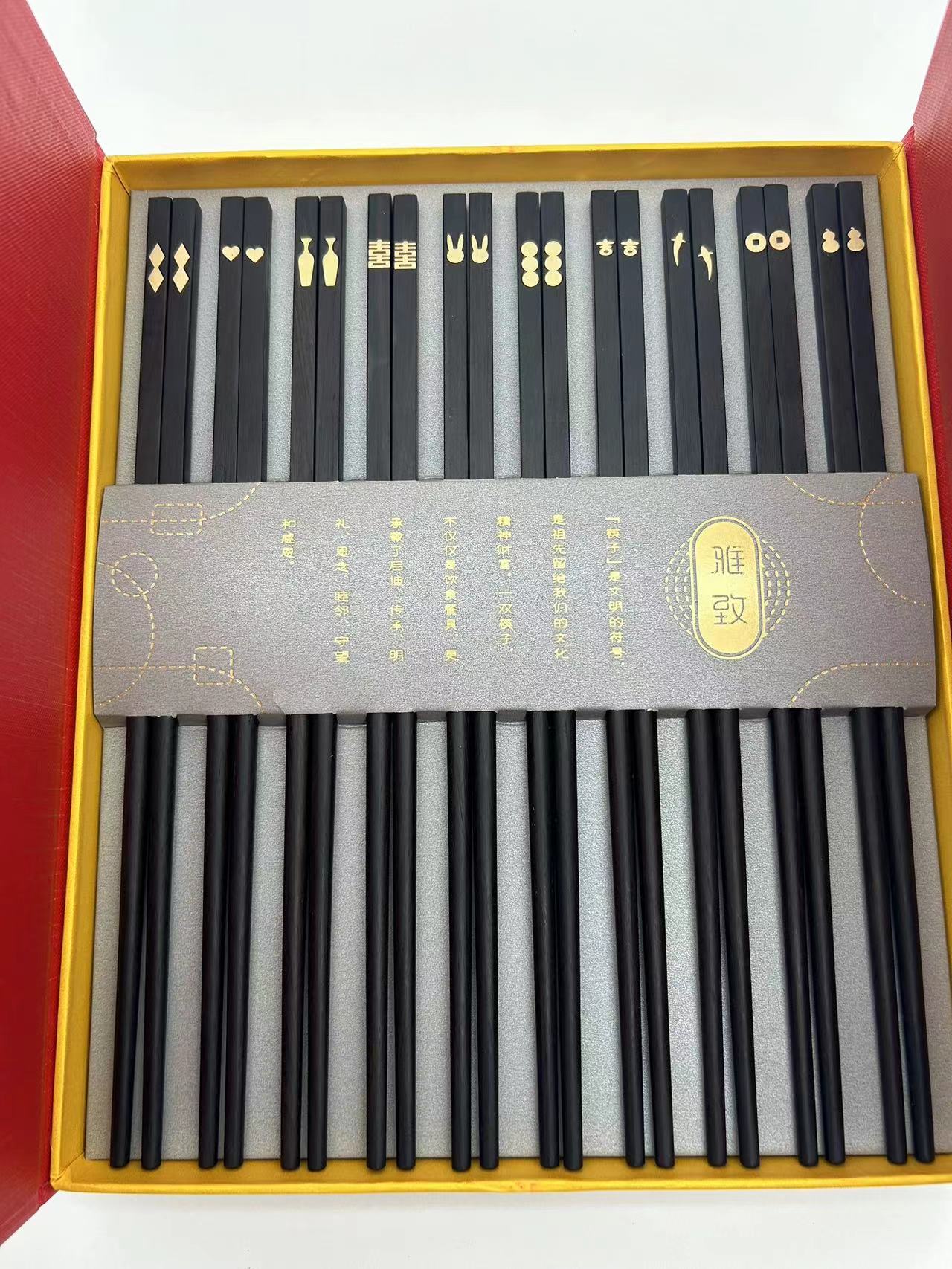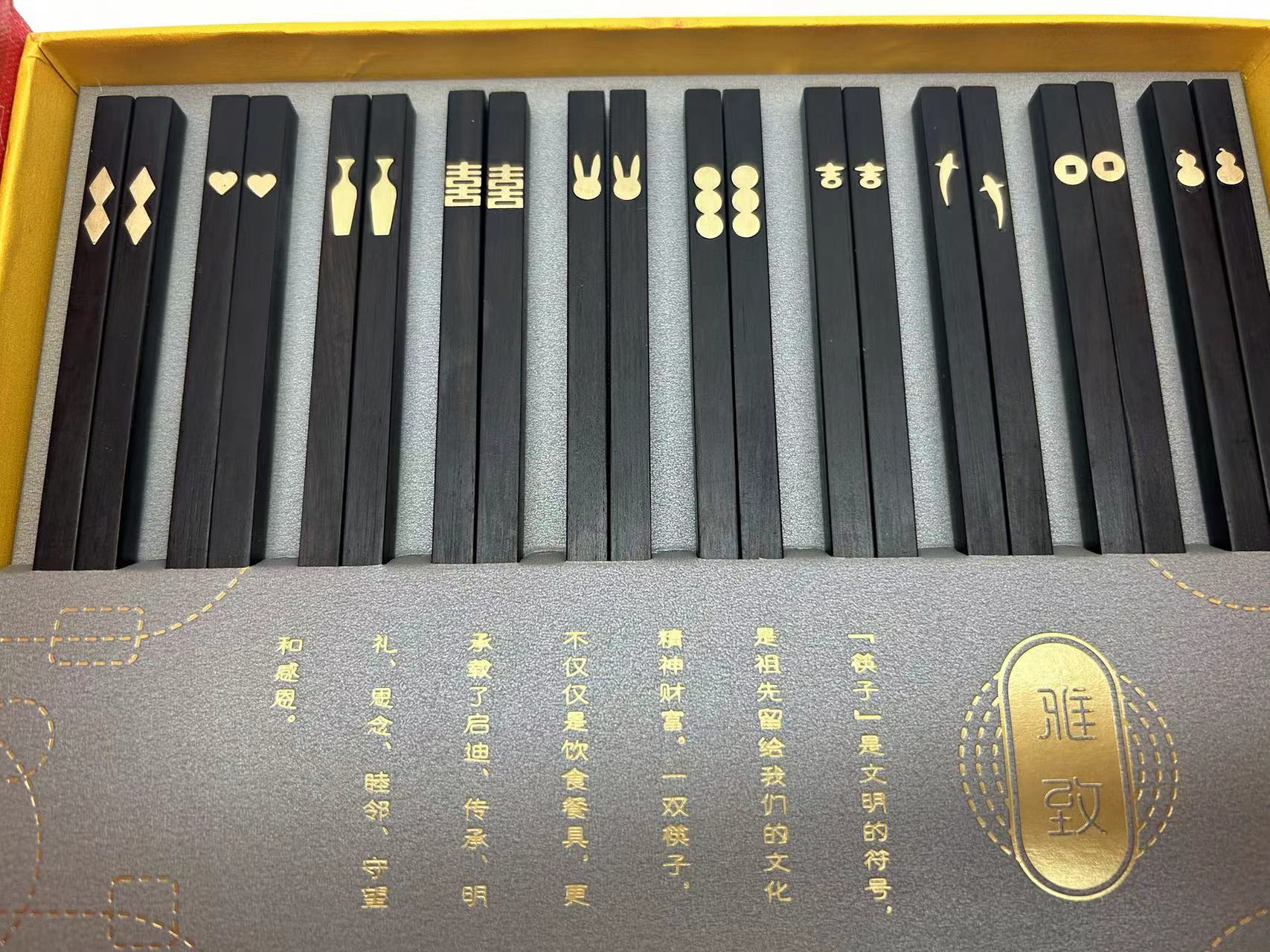 镶嵌紫光檀中华木筷礼盒套装(十双装)