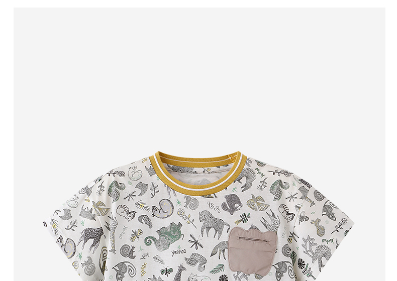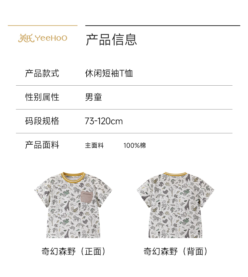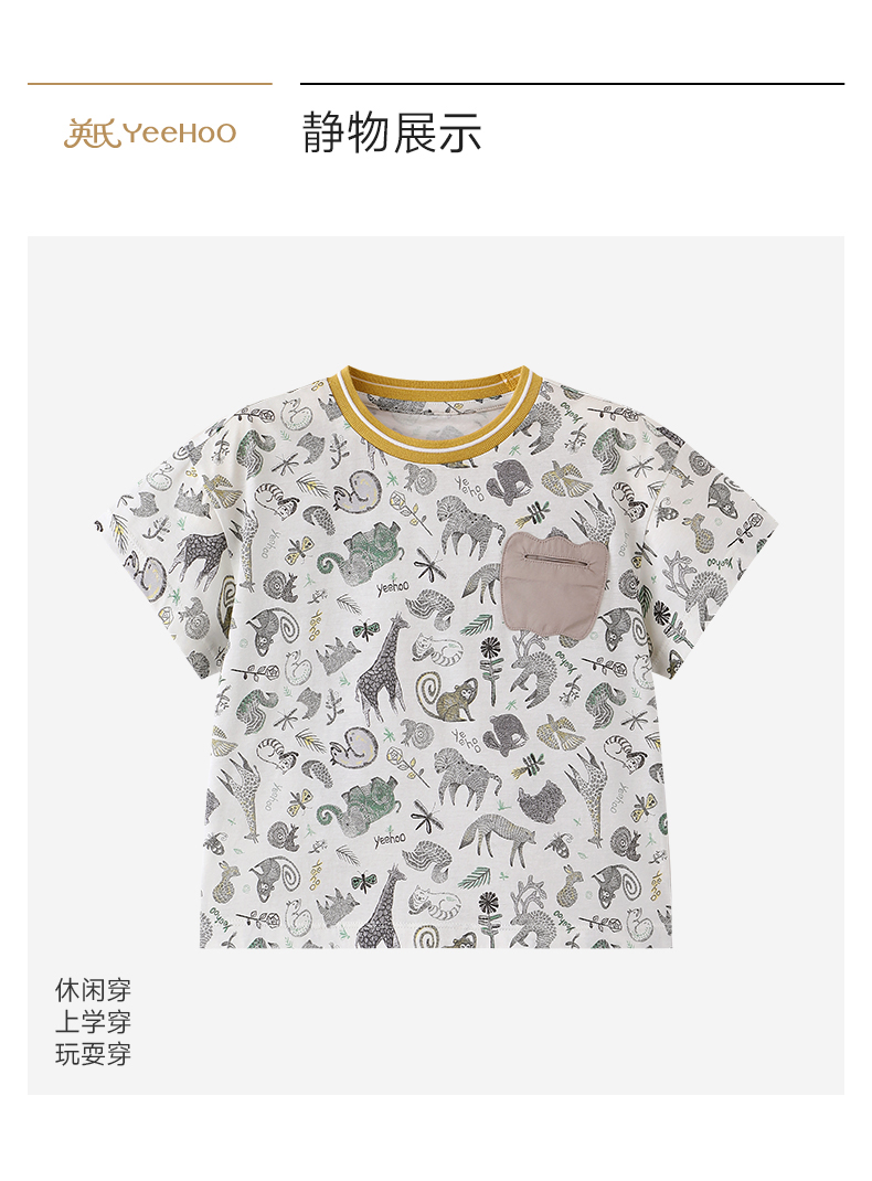 【商场同款】英氏儿童衣服男童夏季短袖T恤纯棉动物印花百搭上衣