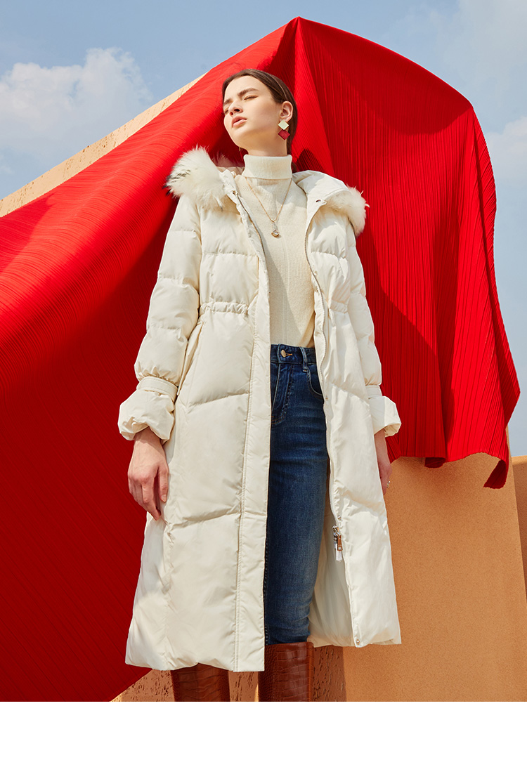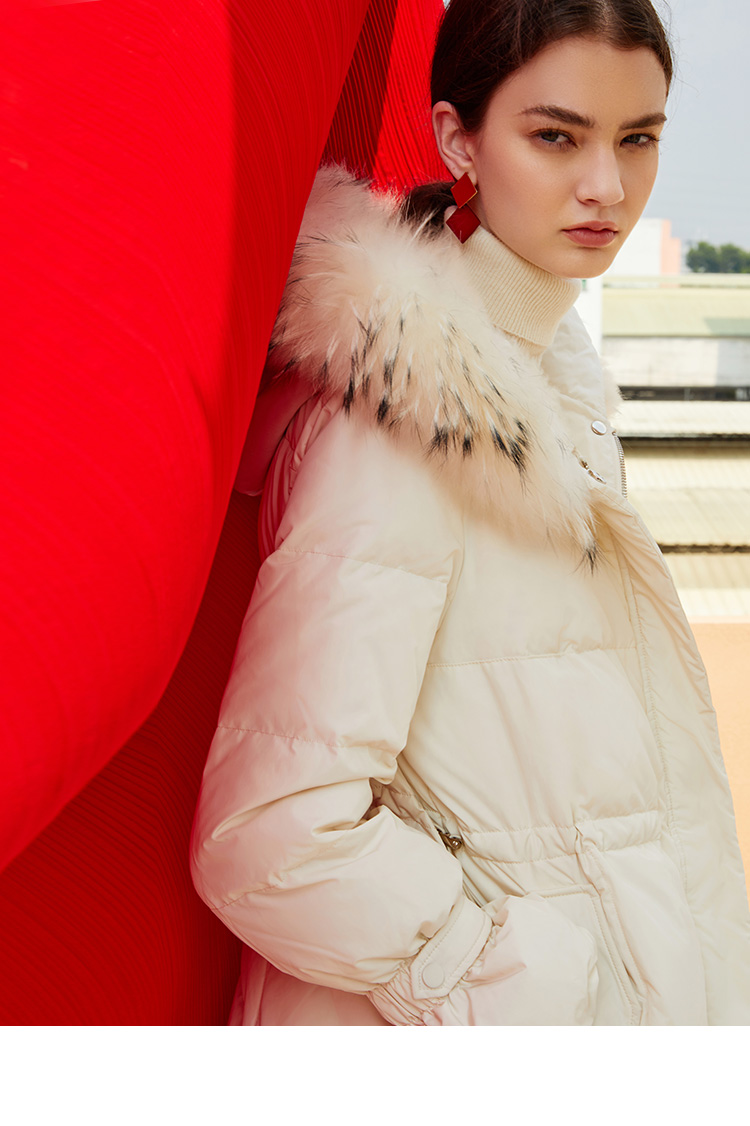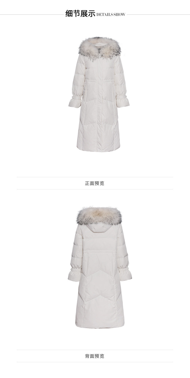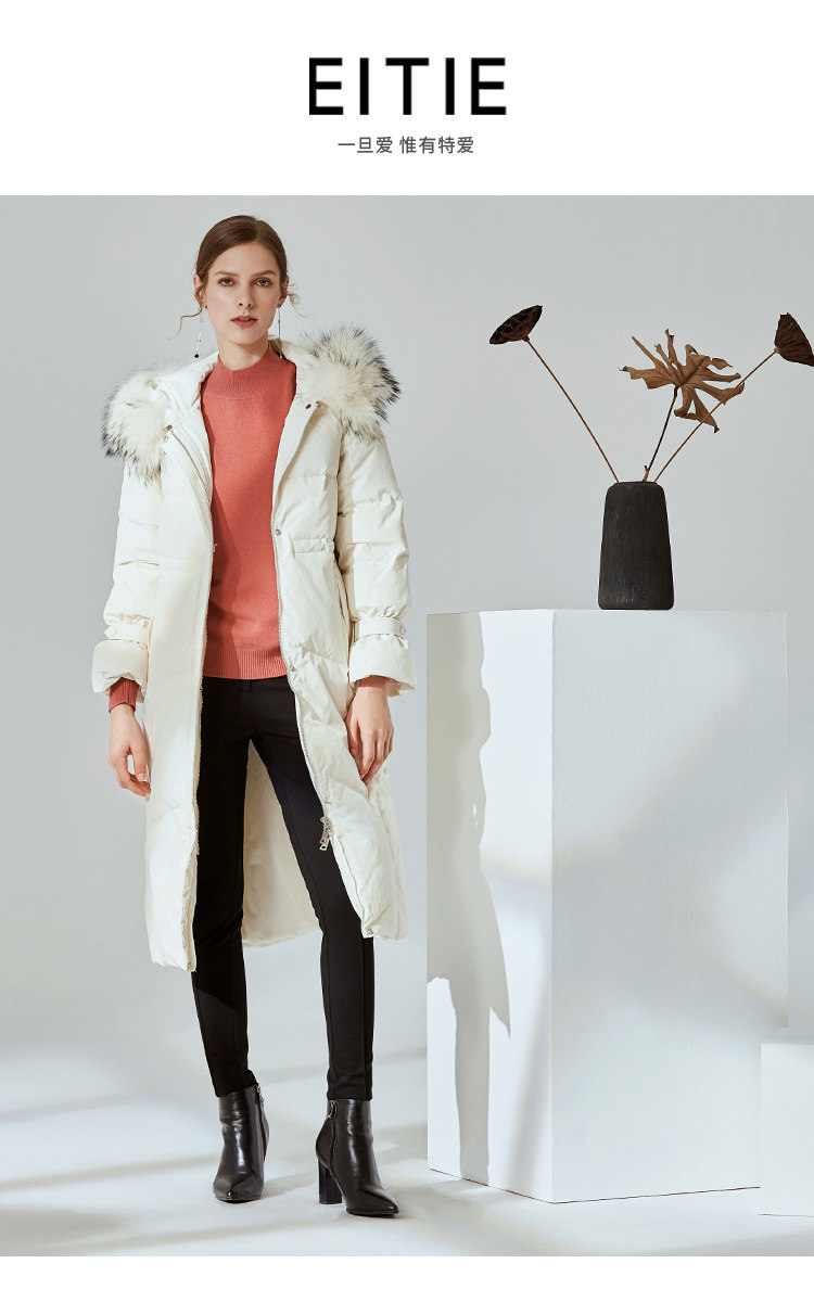 故障 EITIE爱特爱冬季纯色宽松毛领连帽加厚羽绒服女中长款6011707