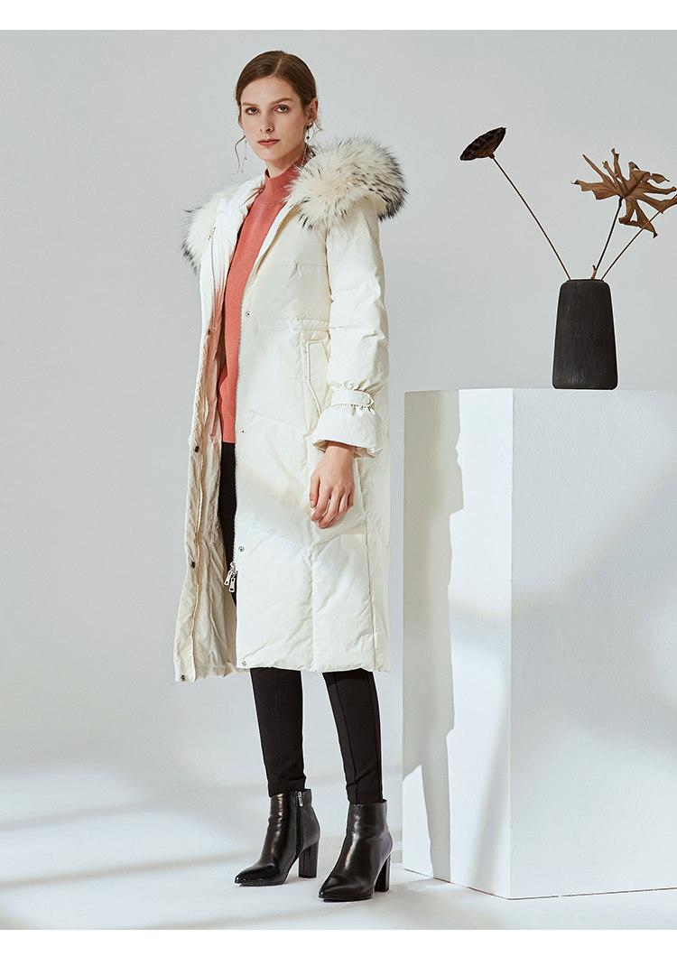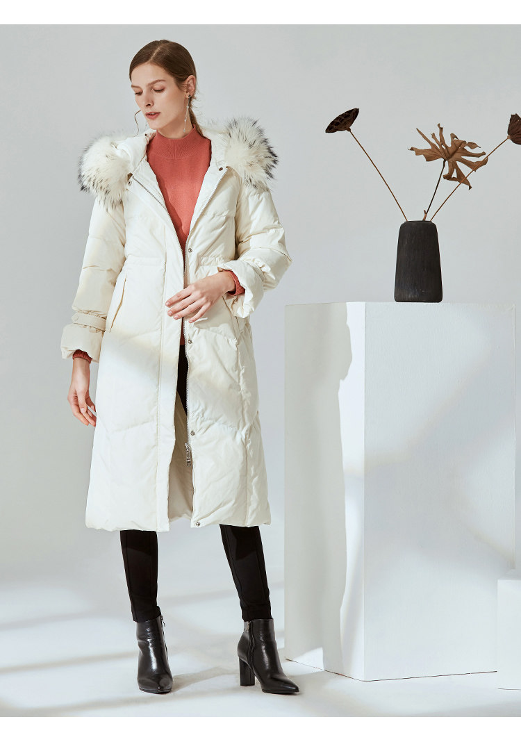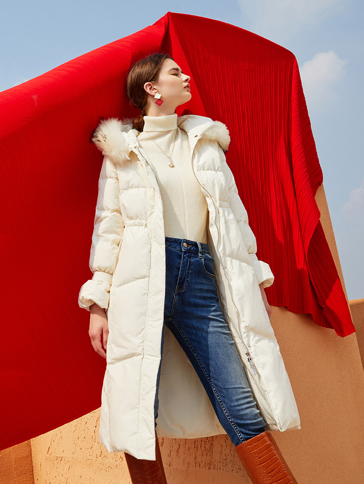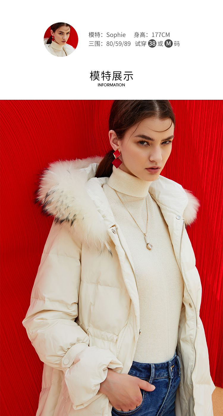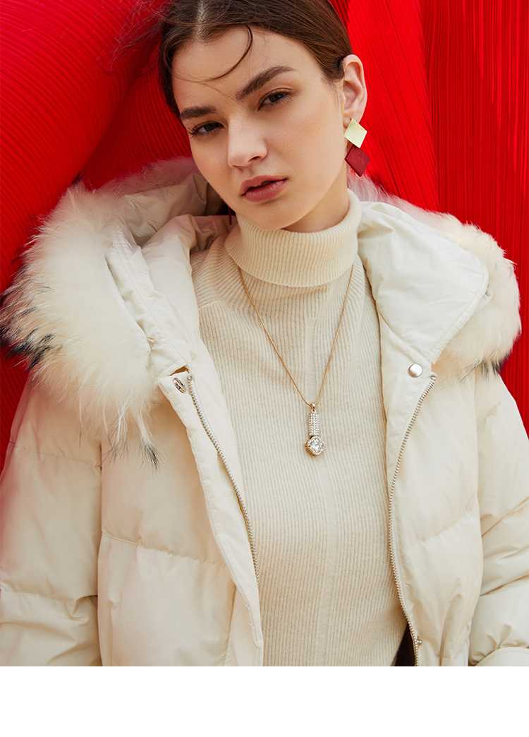 故障 EITIE爱特爱冬季纯色宽松毛领连帽加厚羽绒服女中长款6011707