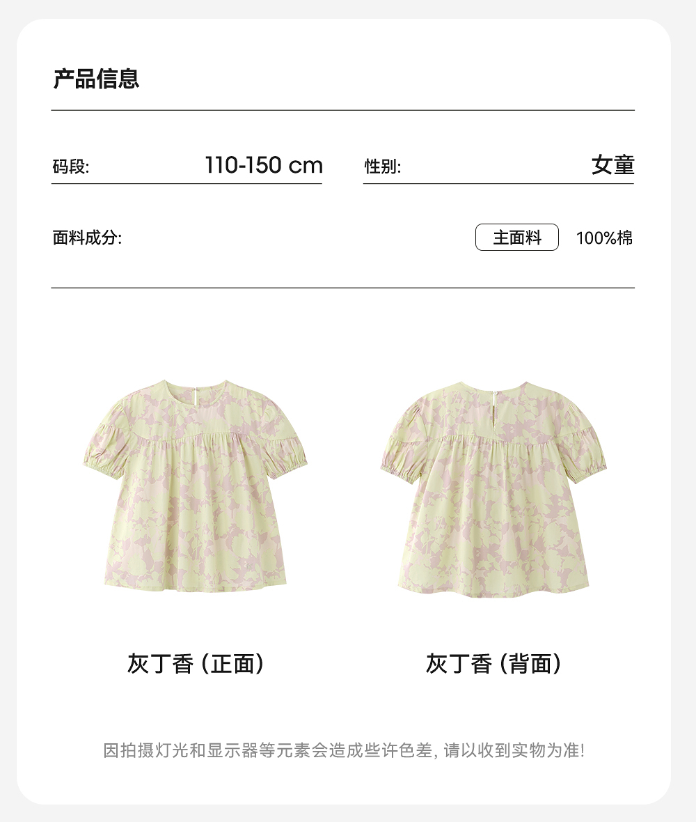 【商场同款】英氏儿童衣服夏季短袖上衣女童圆领纯棉T恤2025新款