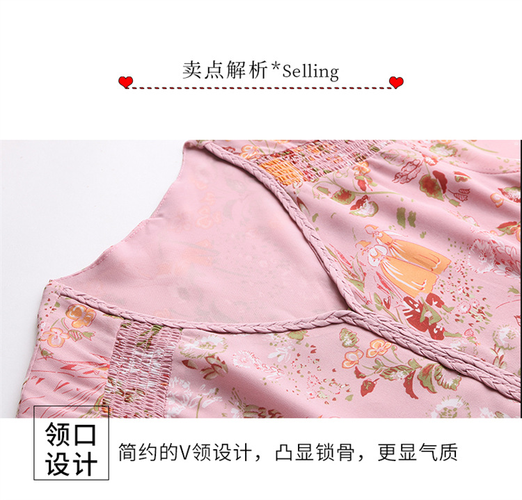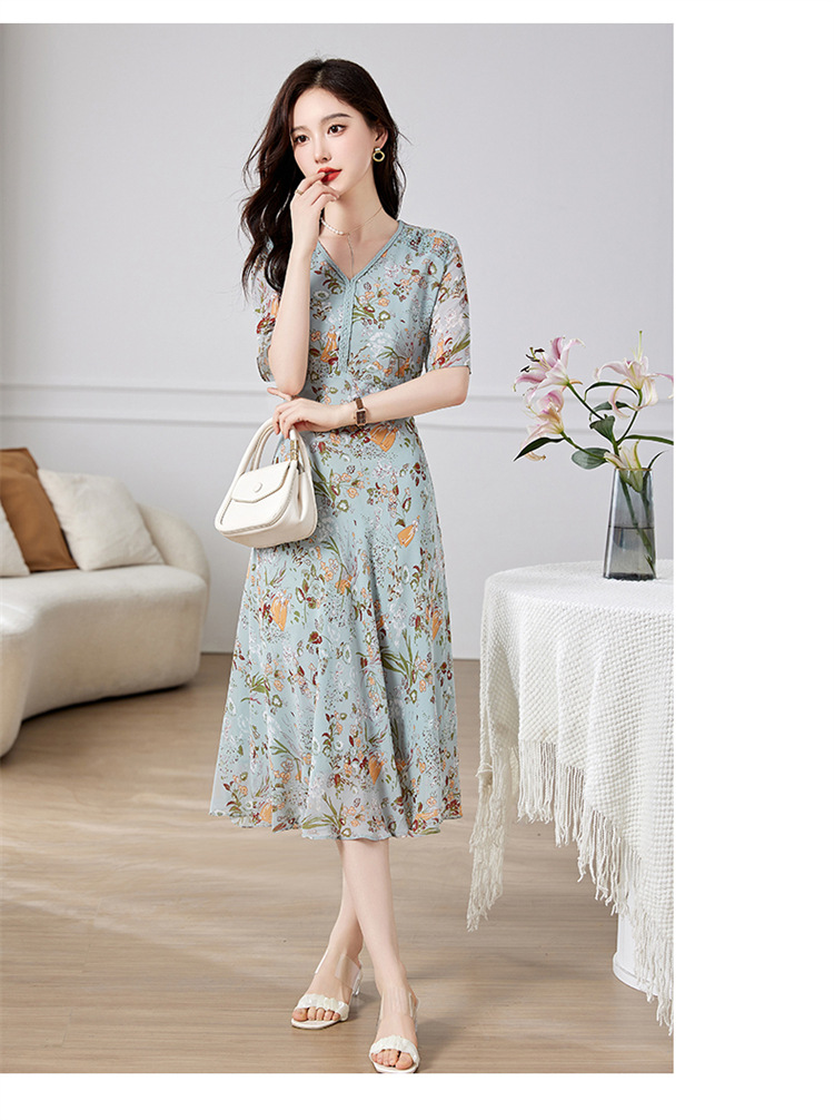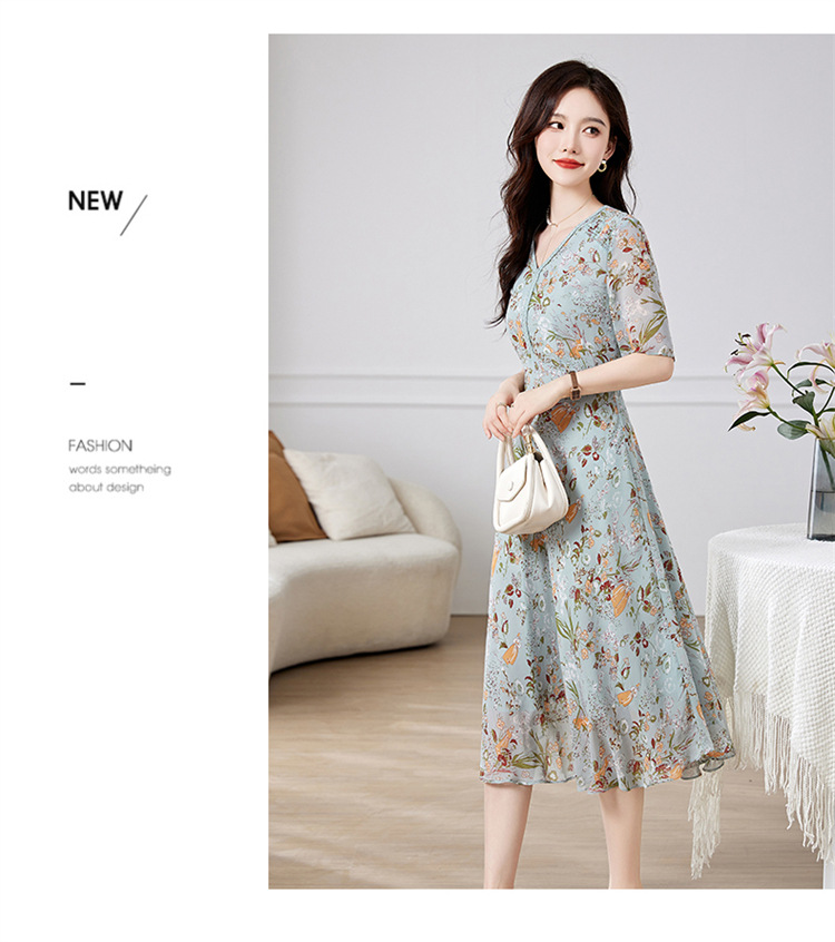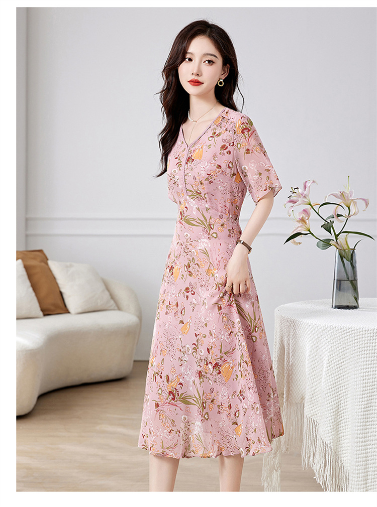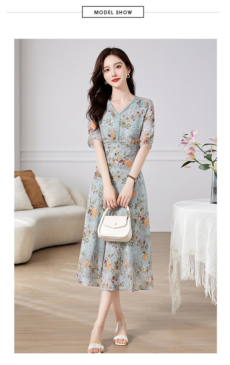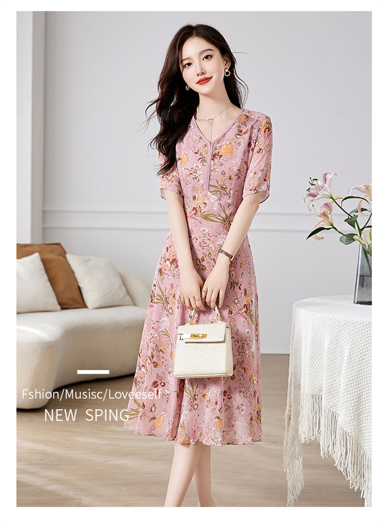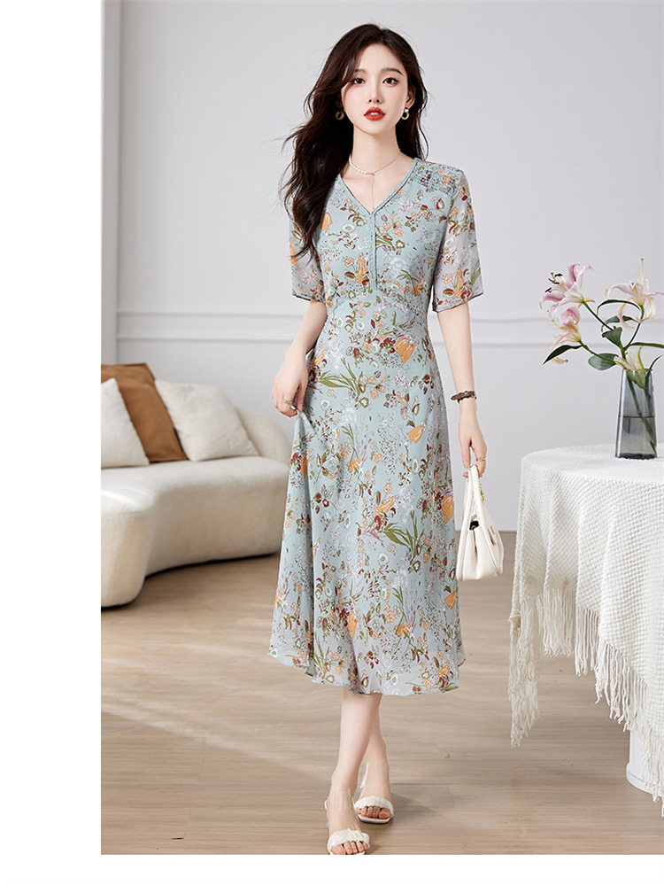 修身显瘦,时尚v领月印花简洁干练气质碎花连衣裙HR-WZ25219