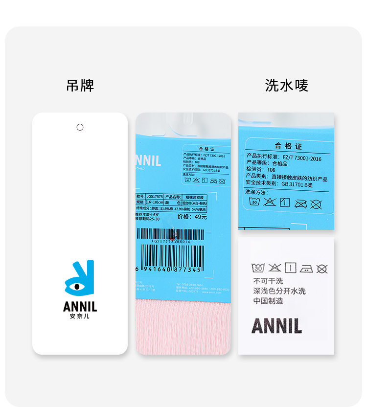 女童短袜两双装春季新款安奈儿童装实体店同款JG517575