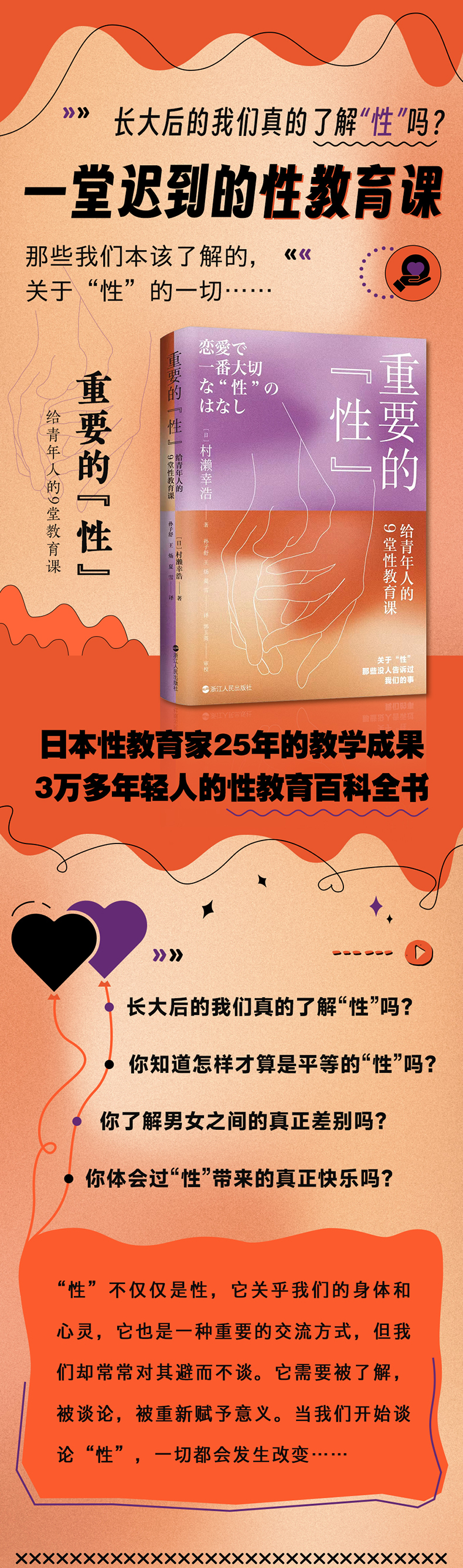 日本性教育家村濑幸浩从学校退休后,在日本多所大学教授性教育课。本书是他几年来的性教育旅程中与学生们的思想碰撞,里面既有他对性教育的思考,也有学生们学习后的真实感想。相信我们每个人都能从中获益。