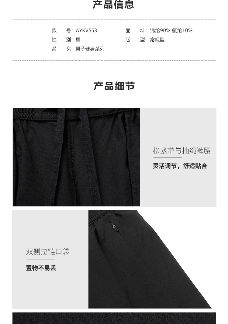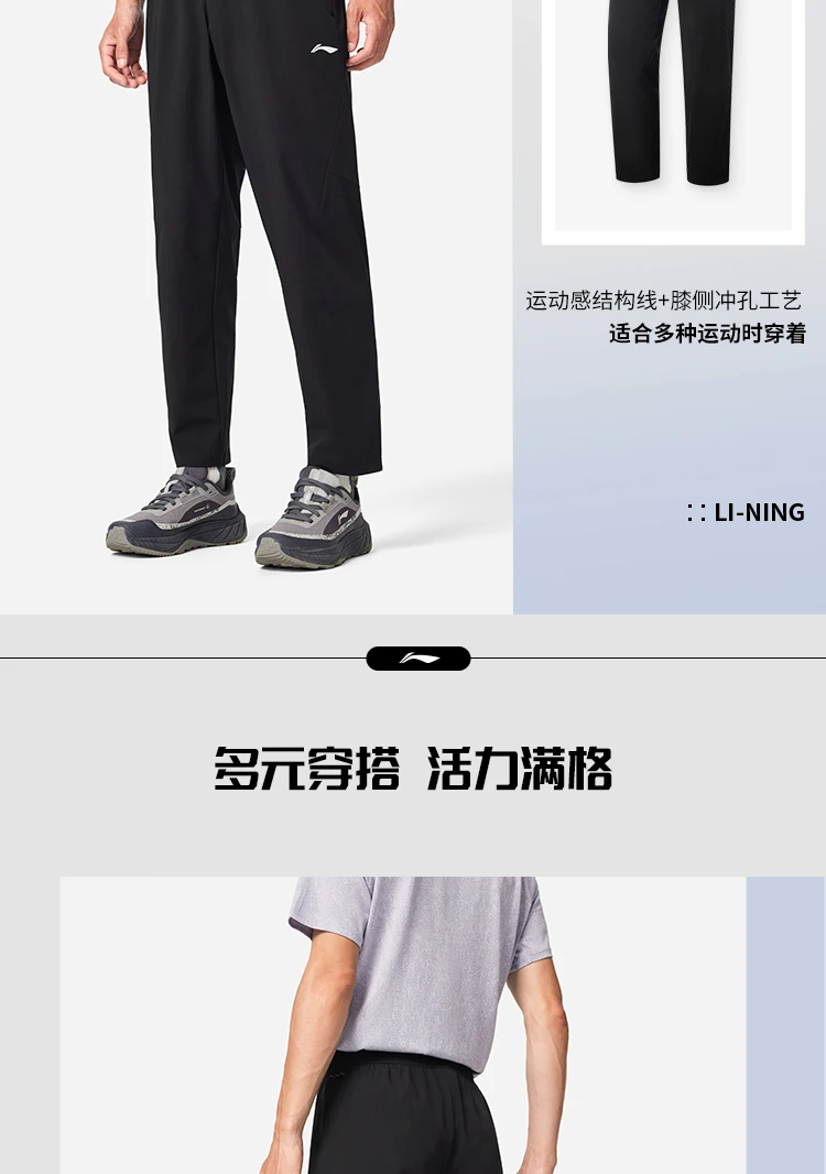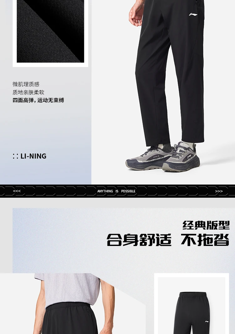 李宁健身系列男子直筒冰感舒适防泼水运动长裤AYKV553