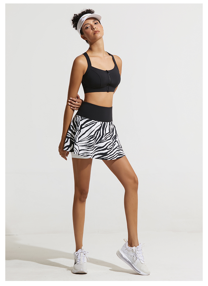 科里芙斑马纹运动短裙跑步运动健身时尚拼色带口袋半身裙