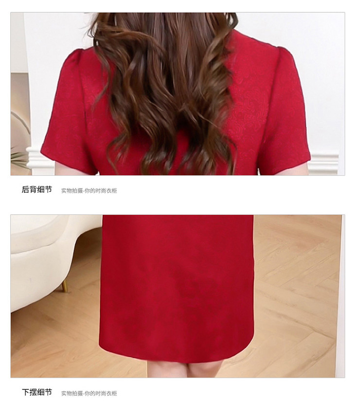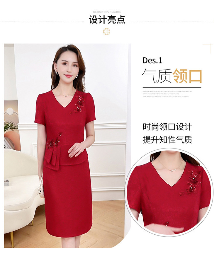 HRXYKL-DN8922-L24年夏款中长款印花通勤时尚连衣裙假两件短袖修身洋气优雅A字裙