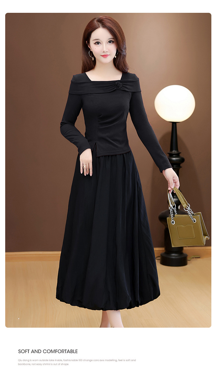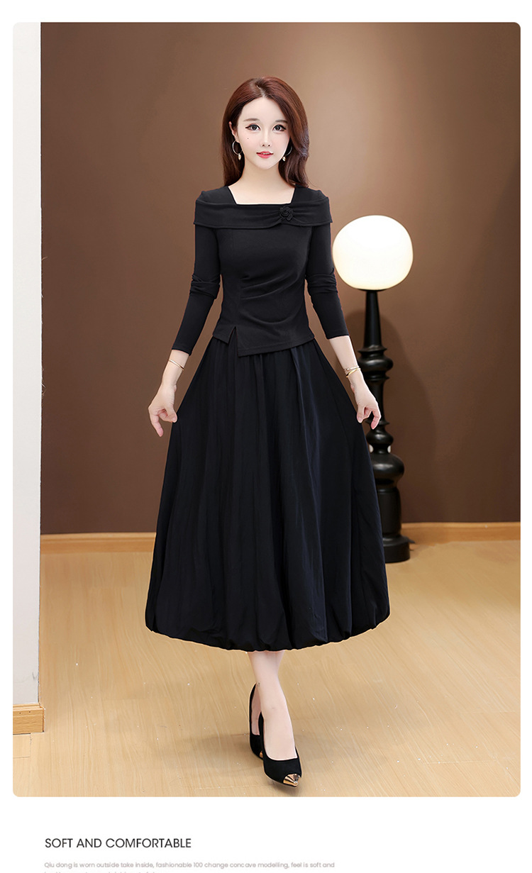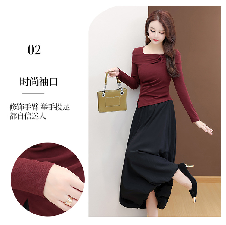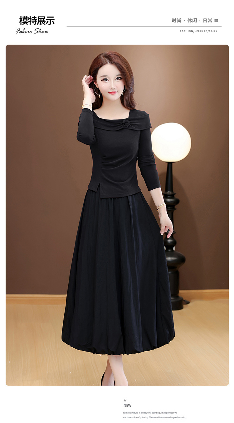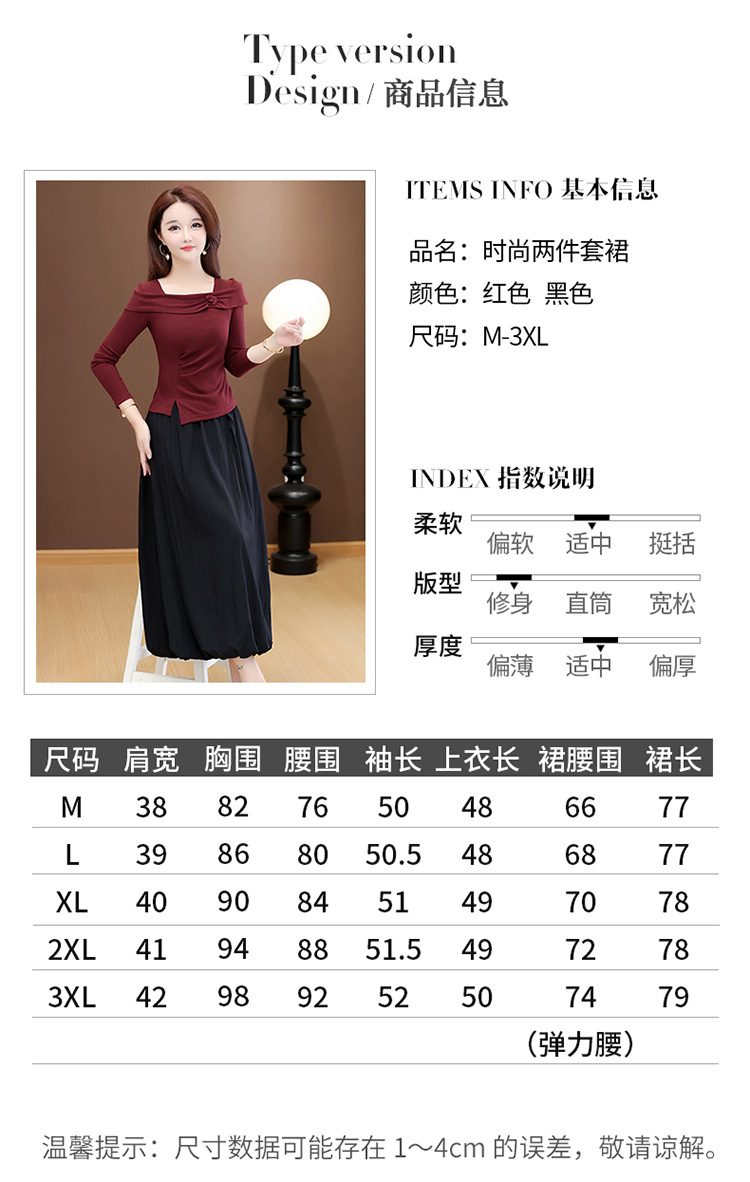 QYM 53B255-Y两件套连衣裙开衩短款小衫+高腰中长款花苞半身裙