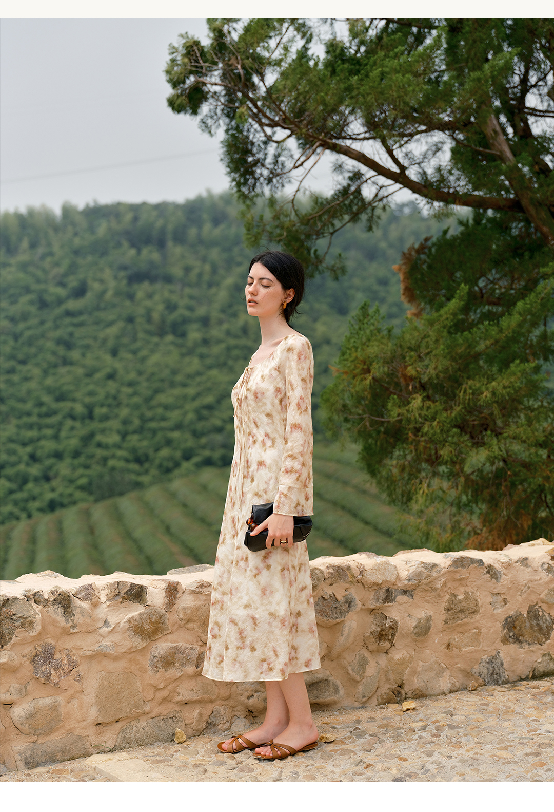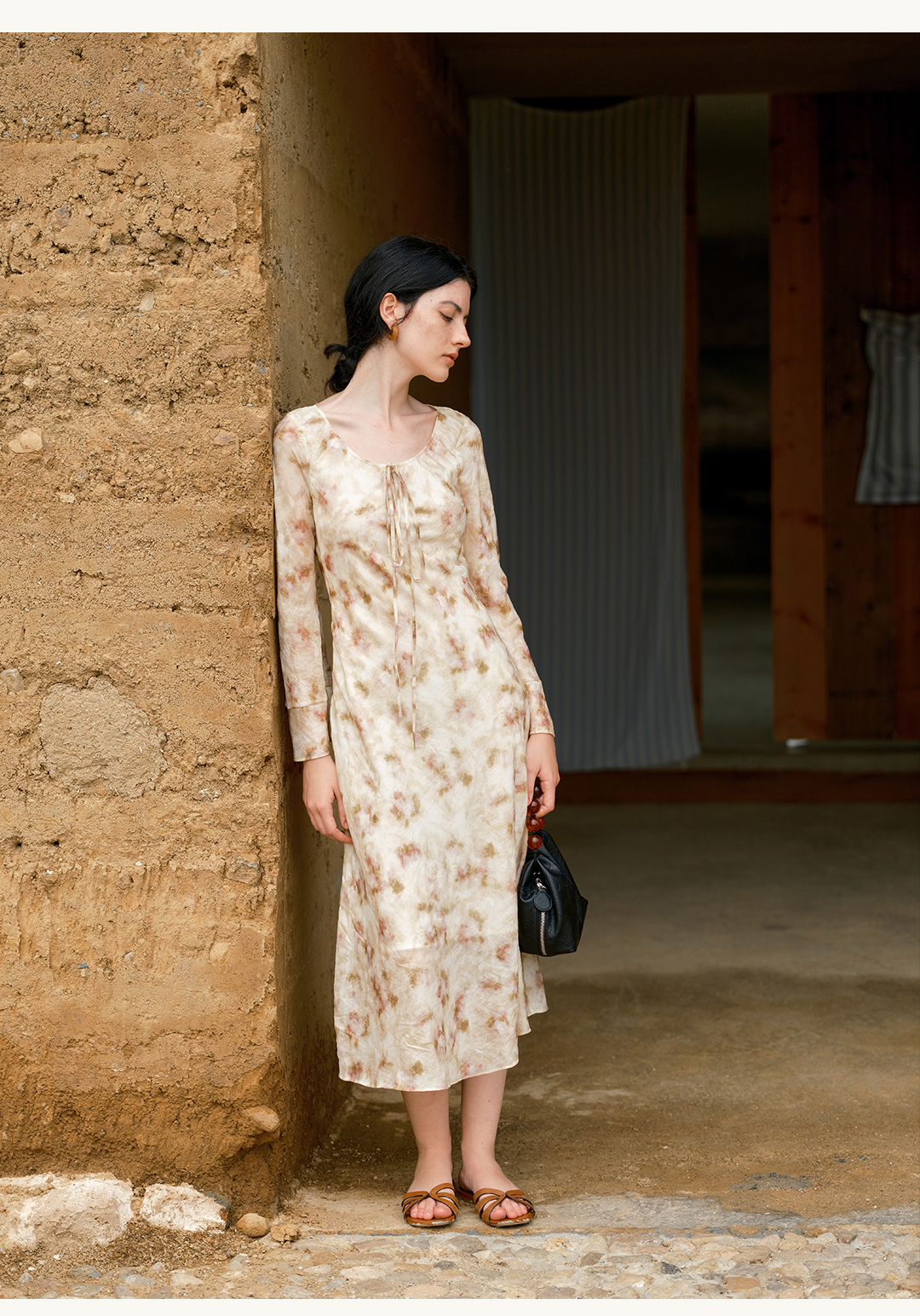 HeyDress晕染印花圆领飘带连衣裙