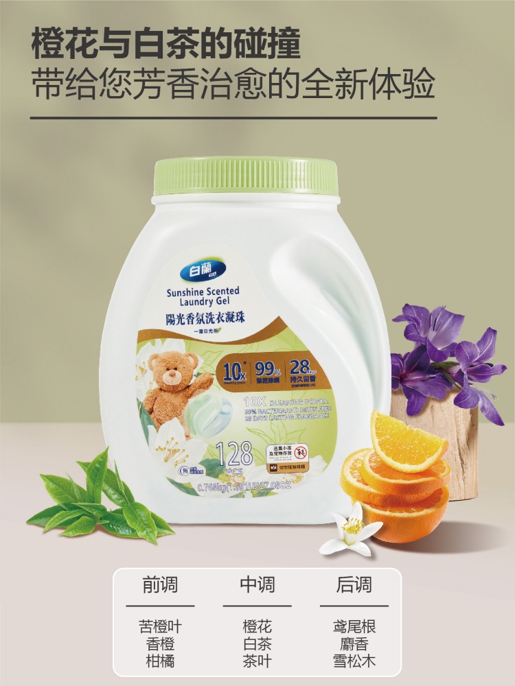 白蘭阳光香氛洗衣凝珠(一盏日光茶)/1桶(6g*128颗)限用日期28年3月