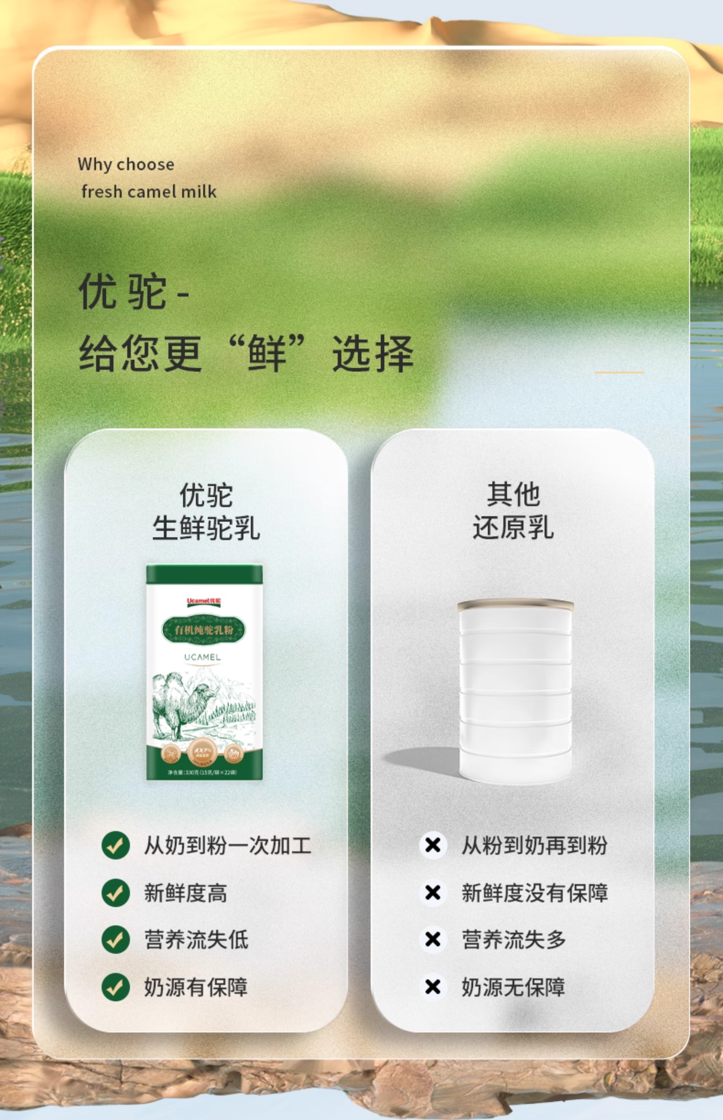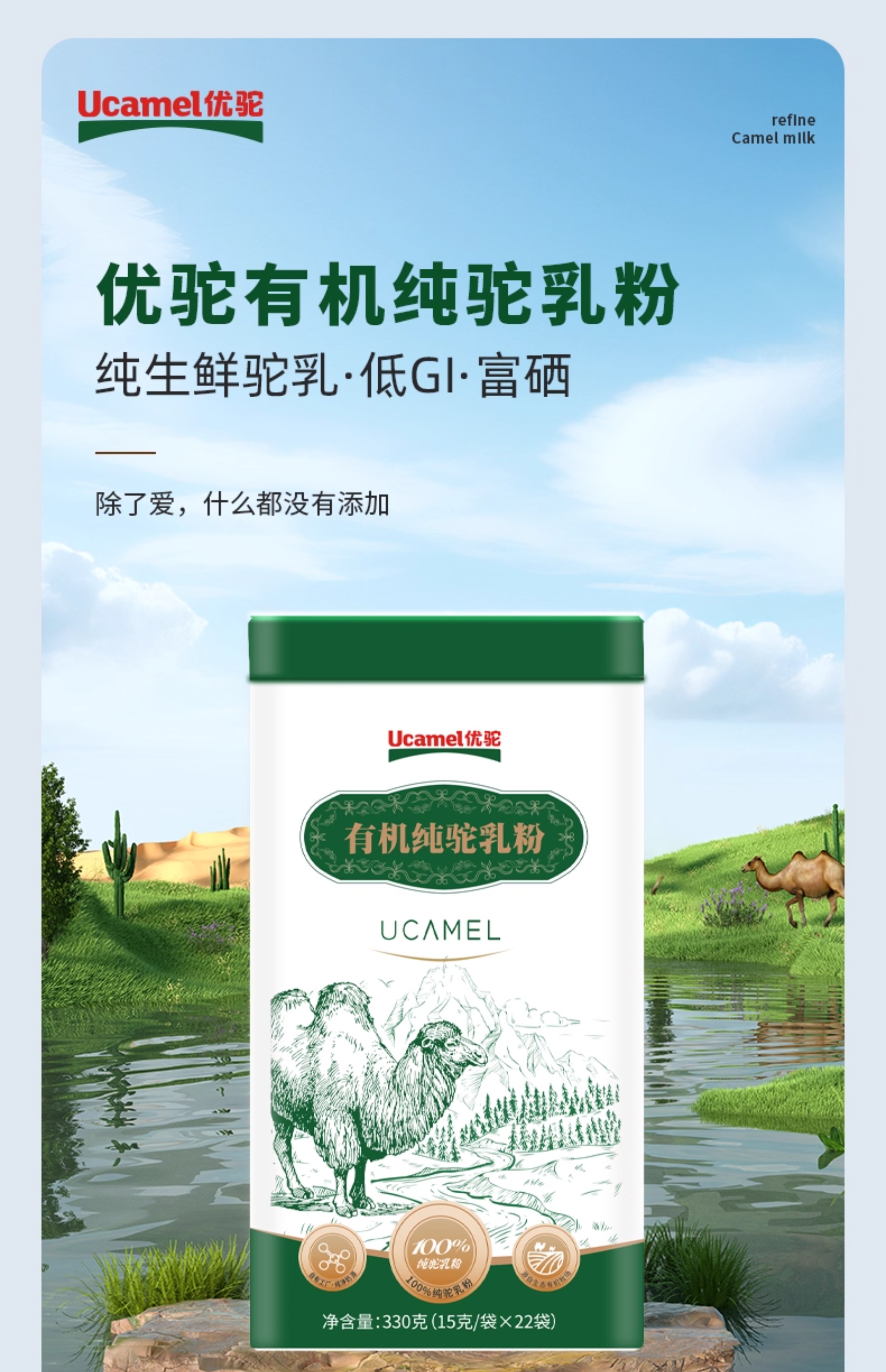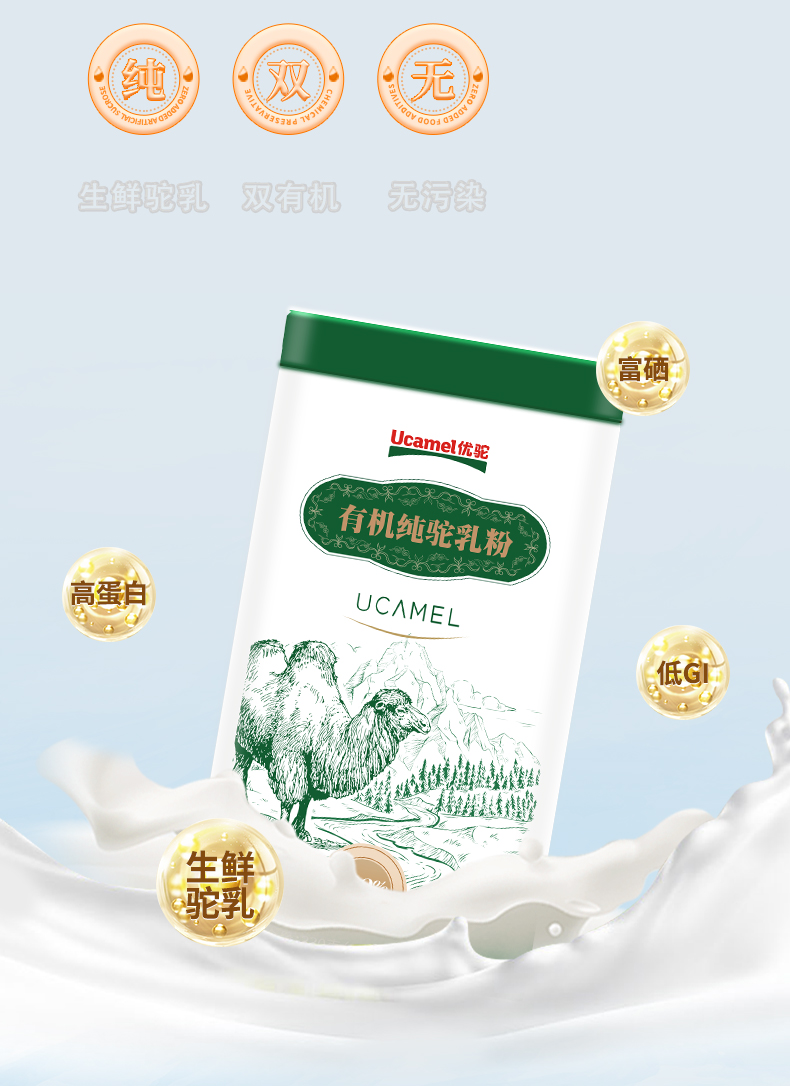 优驼·有机纯驼乳粉·330g 双有机、富硒、高钙、低GI 100%纯驼乳粉