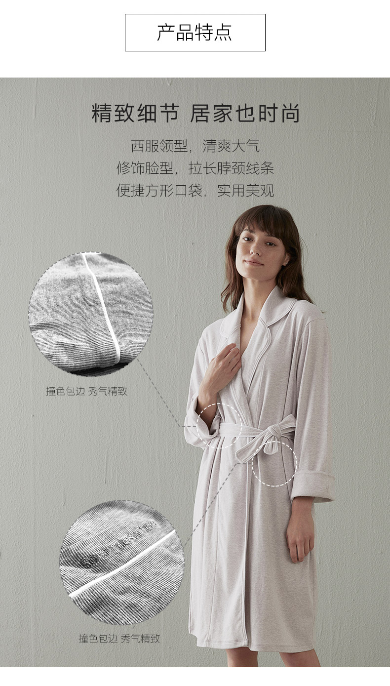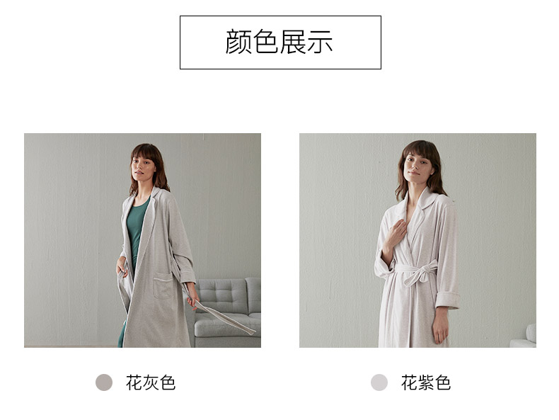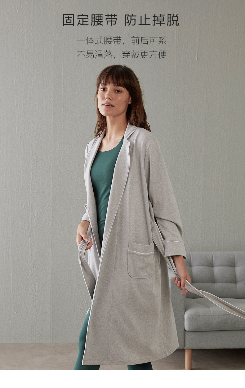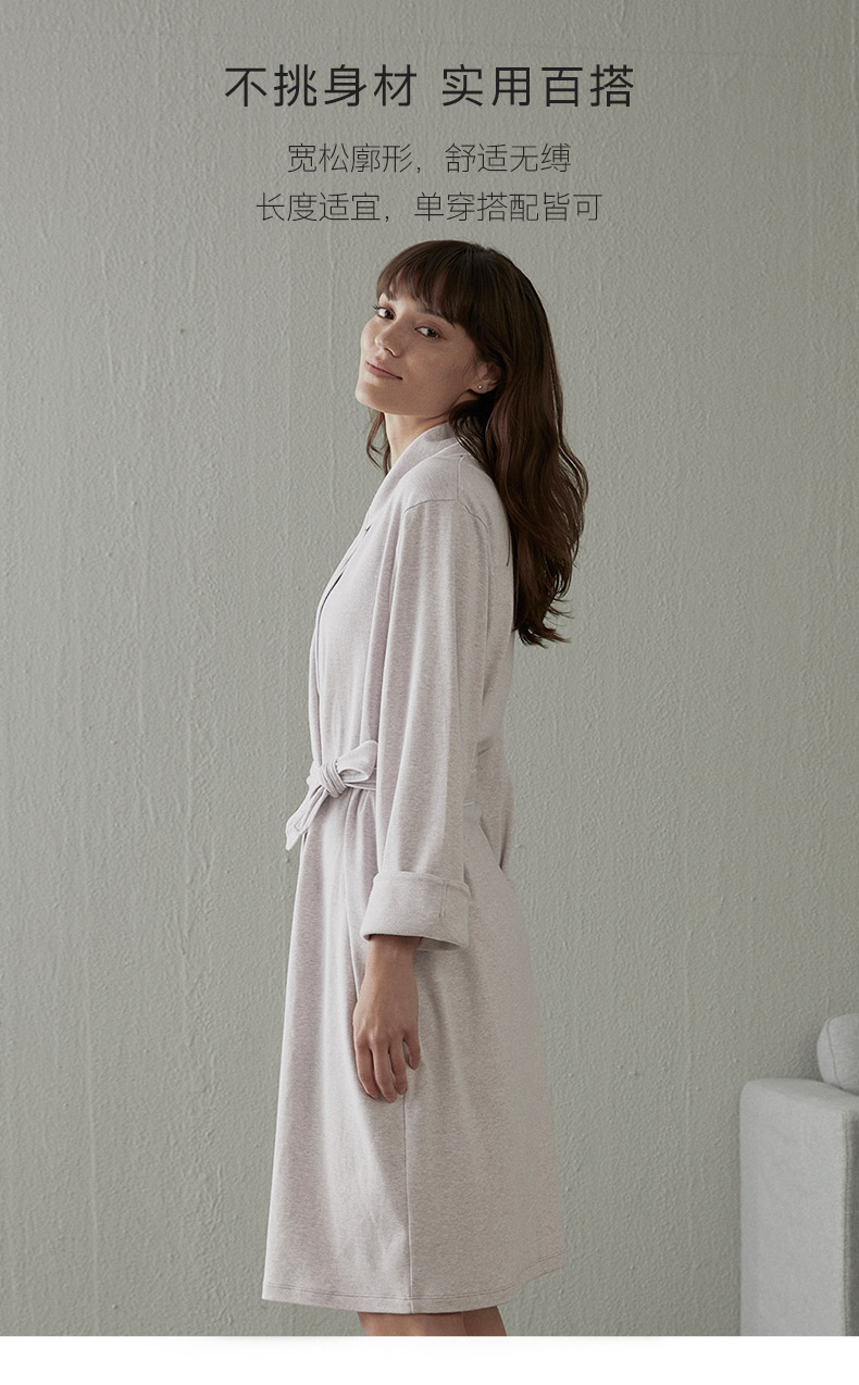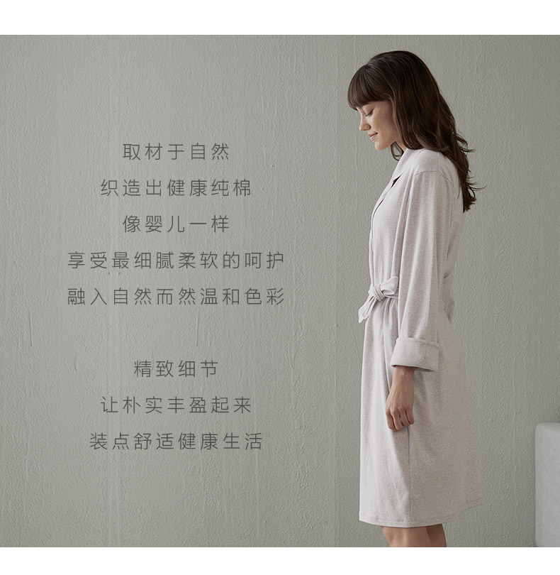 Ubras睡袍浴袍女长款纯棉家居服天然亲肤透气长袖吸汗睡衣秋季