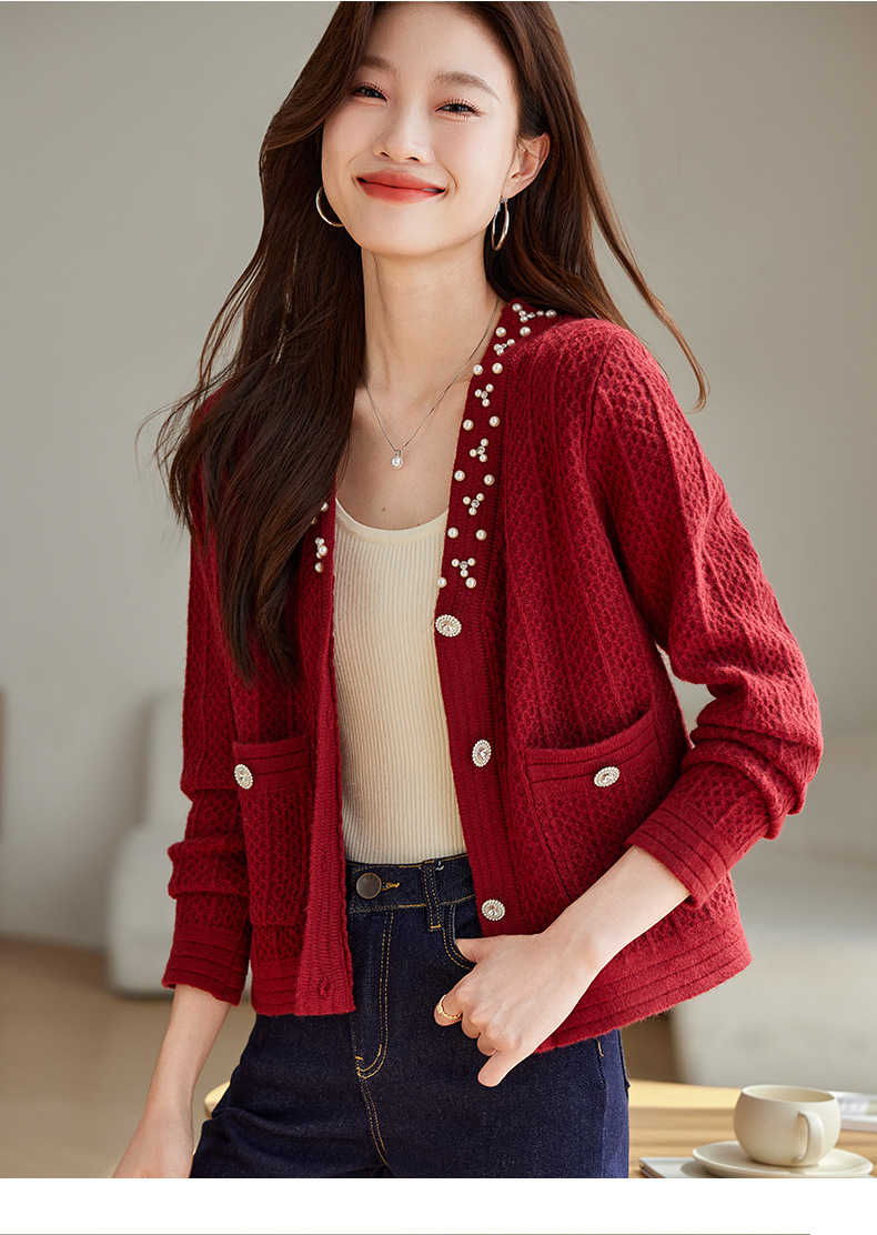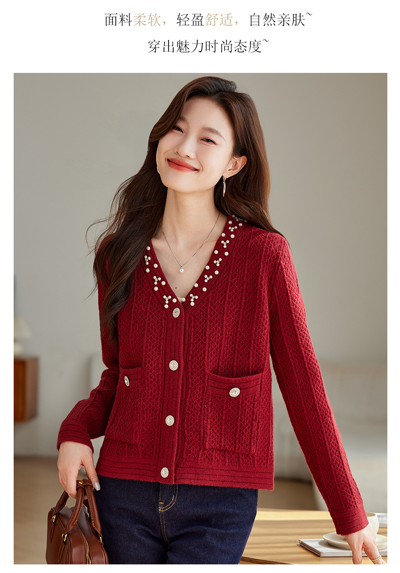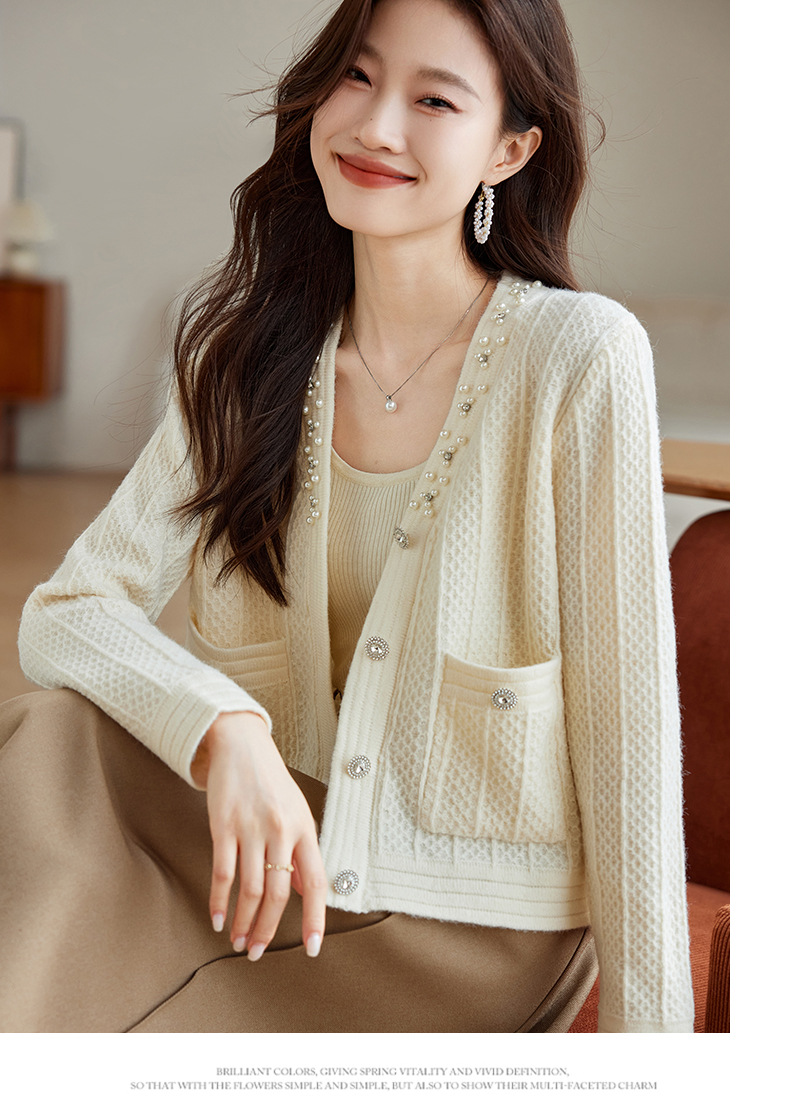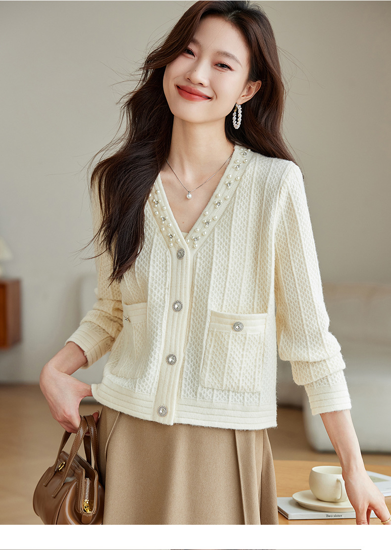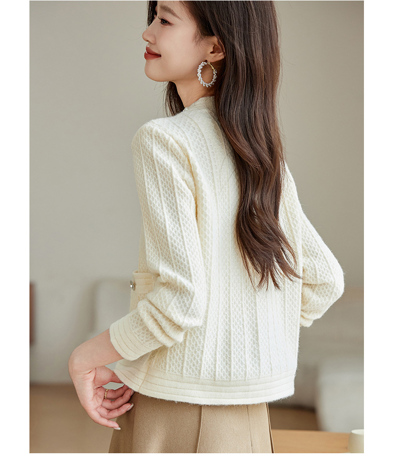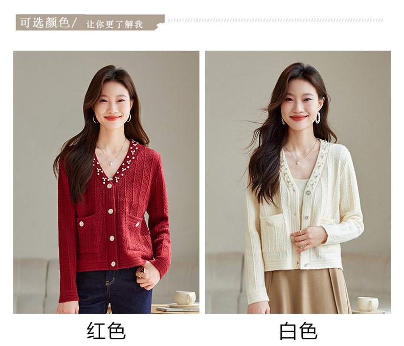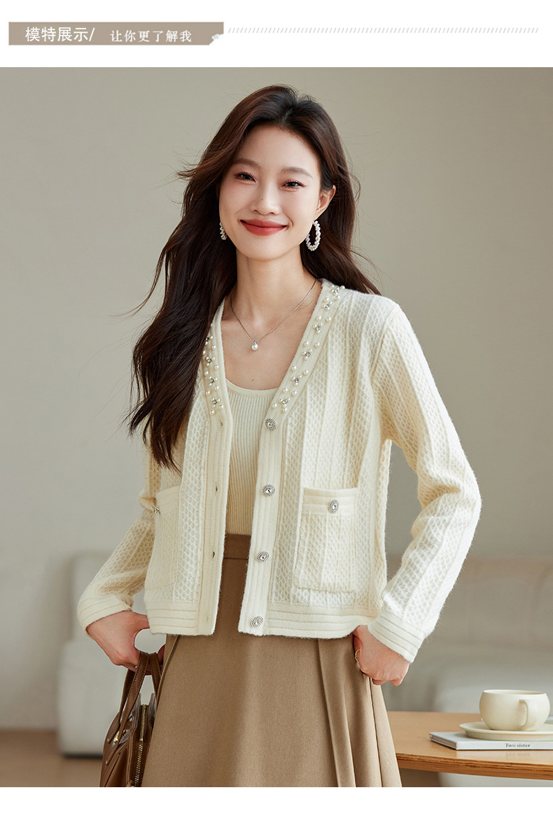 CC-J876 V领小香风针织开衫短款毛衣外套女2024春秋装新款配裙子气质上衣