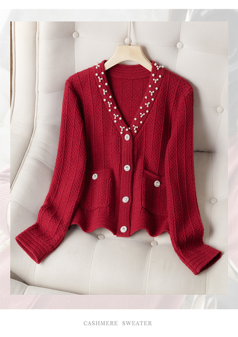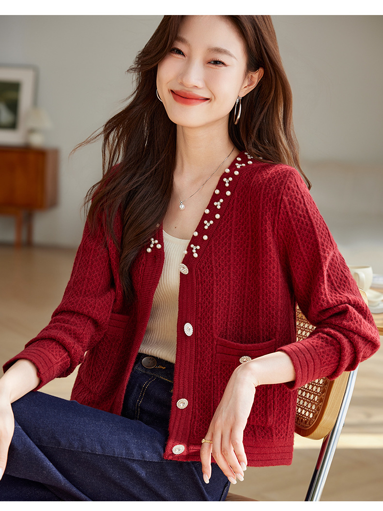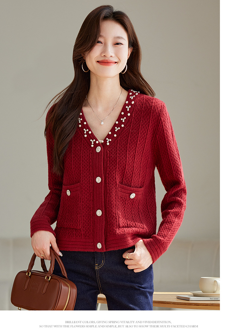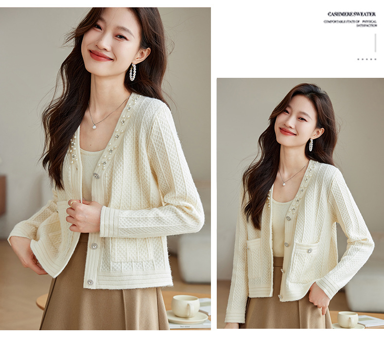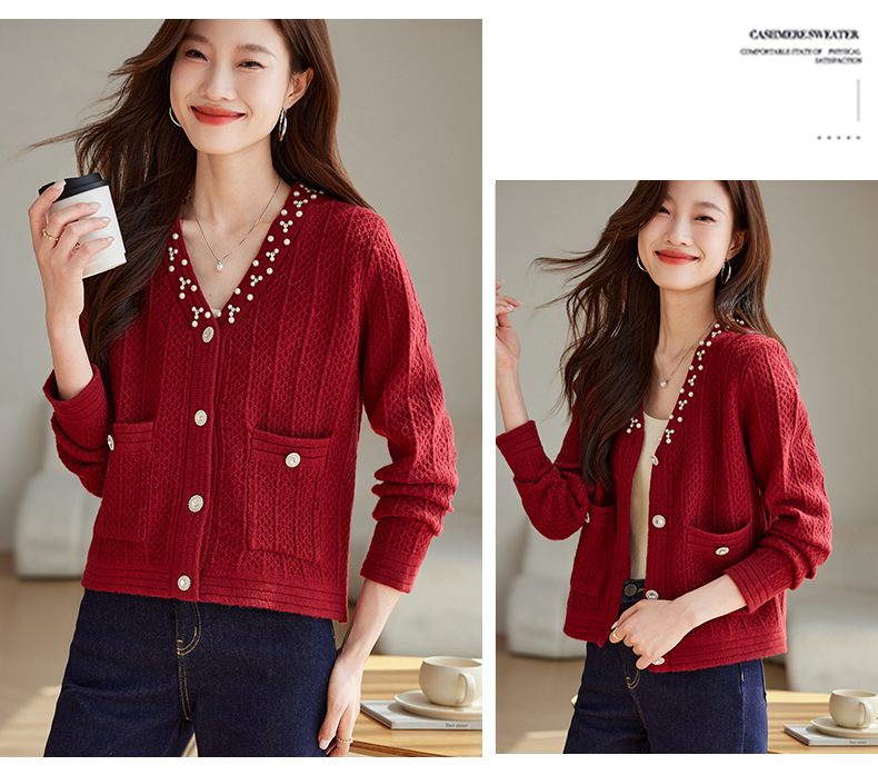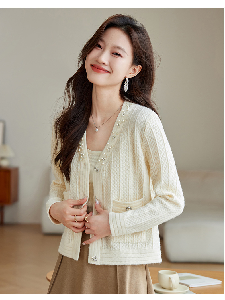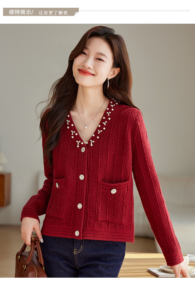CC-J876 V领小香风针织开衫短款毛衣外套女2024春秋装新款配裙子气质上衣
