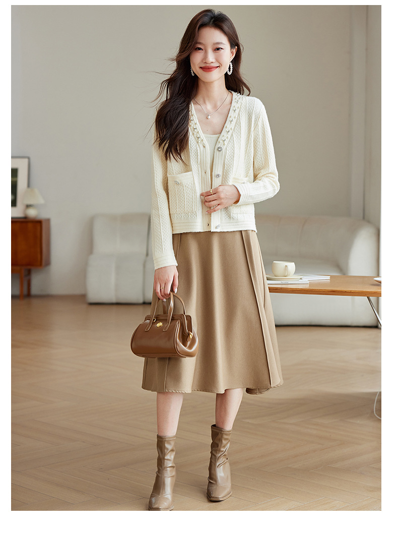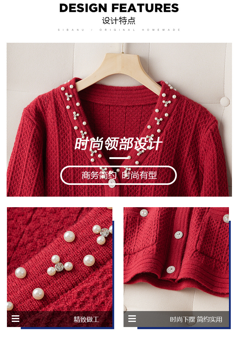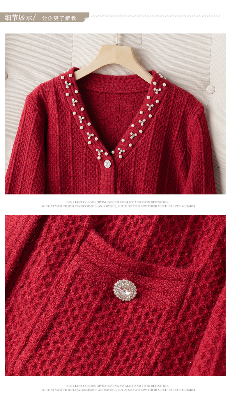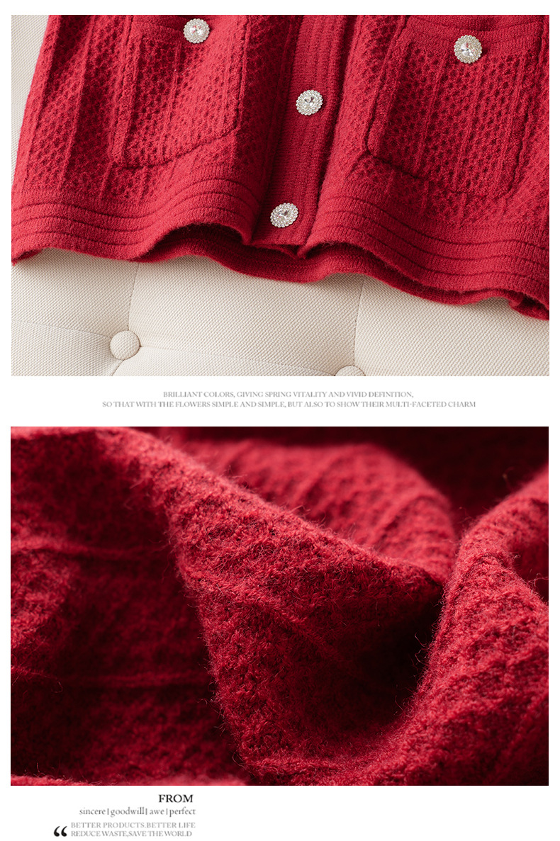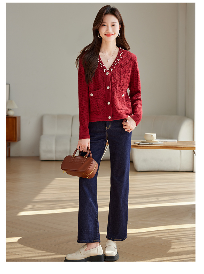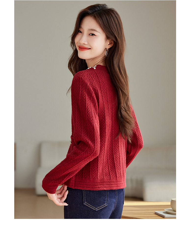 CC-J876 V领小香风针织开衫短款毛衣外套女2024春秋装新款配裙子气质上衣