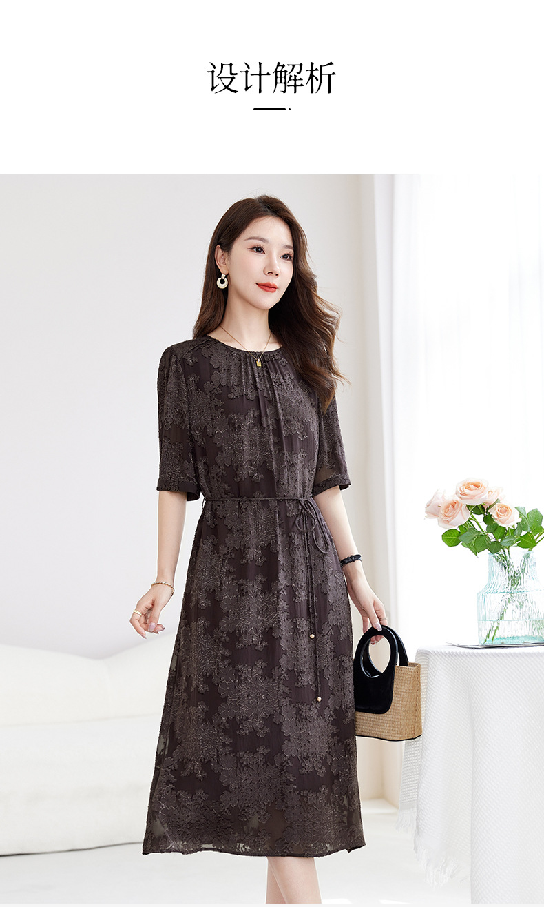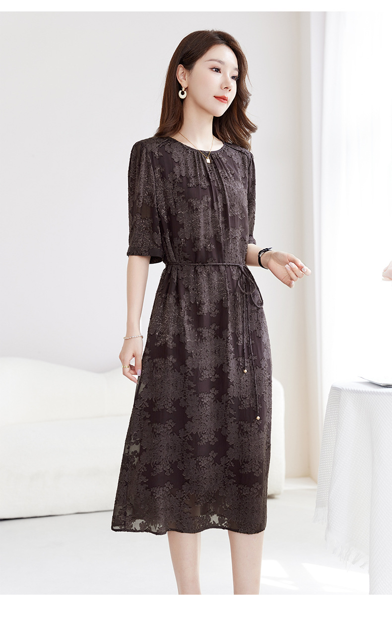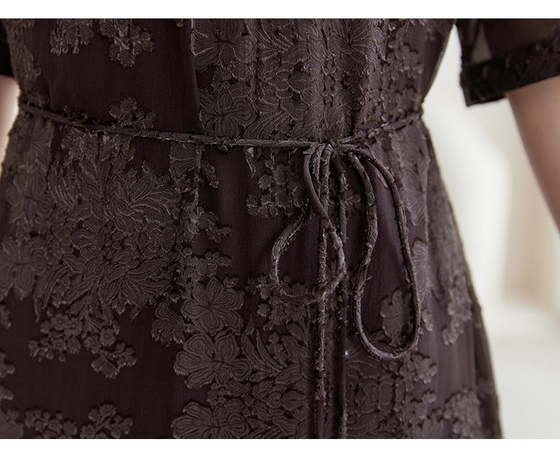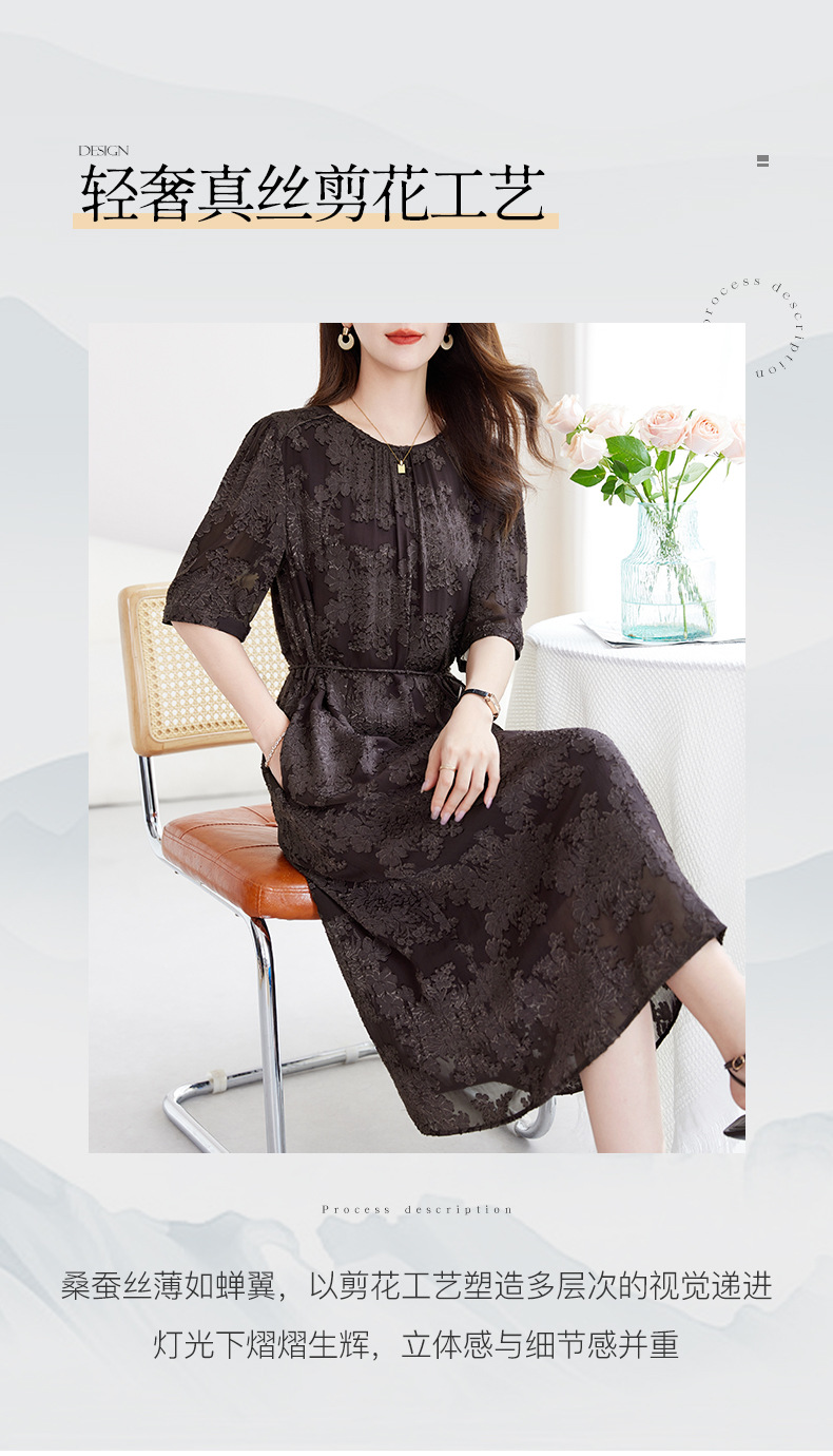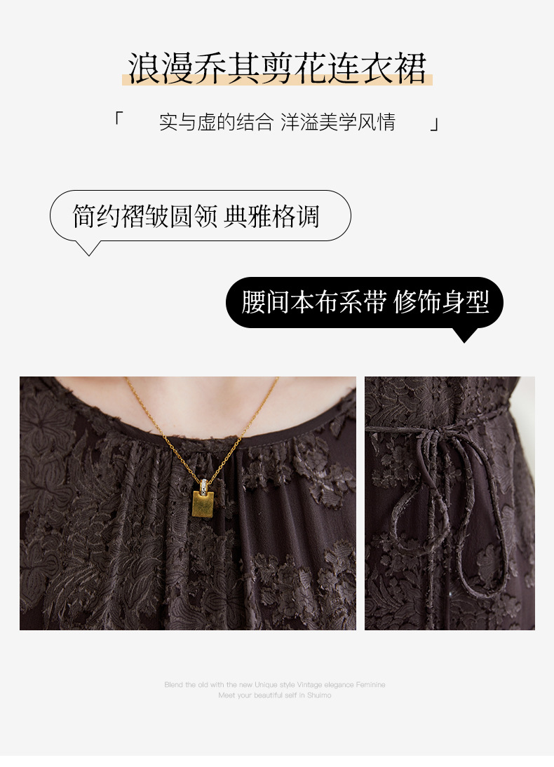 QS-82599008【100%桑蚕丝】真丝连衣裙女100%剪花复古文艺显瘦连衣裙女9008