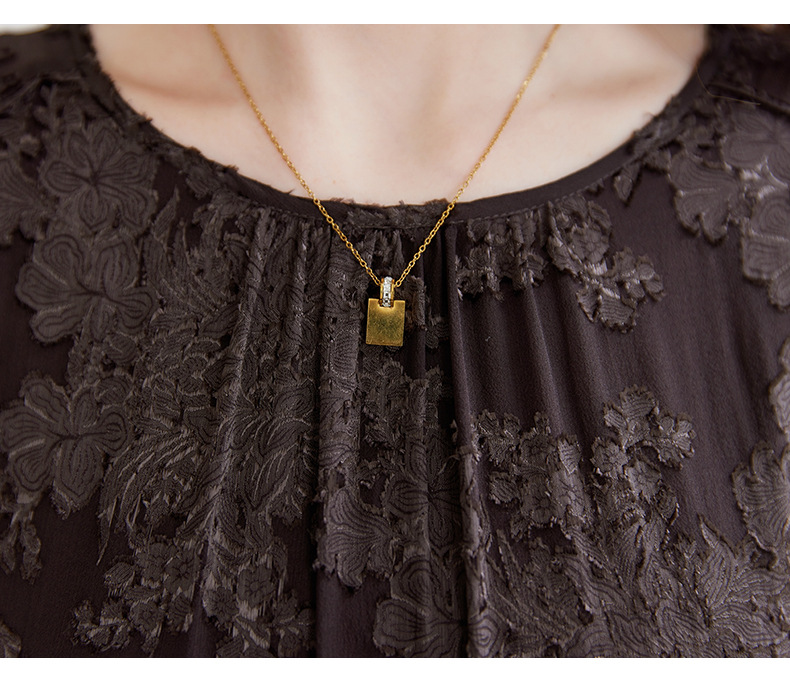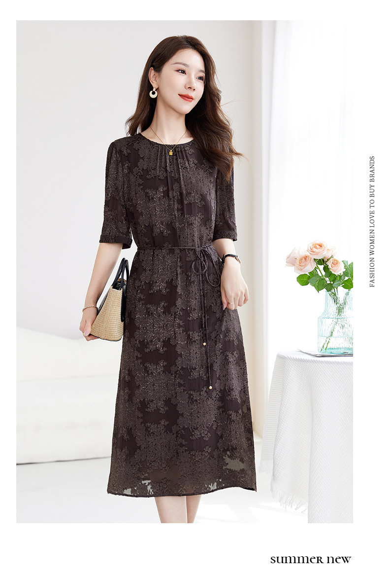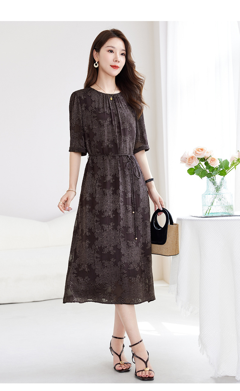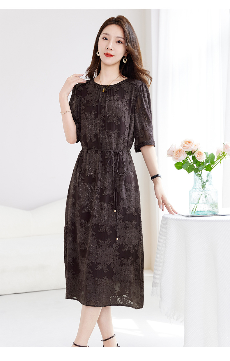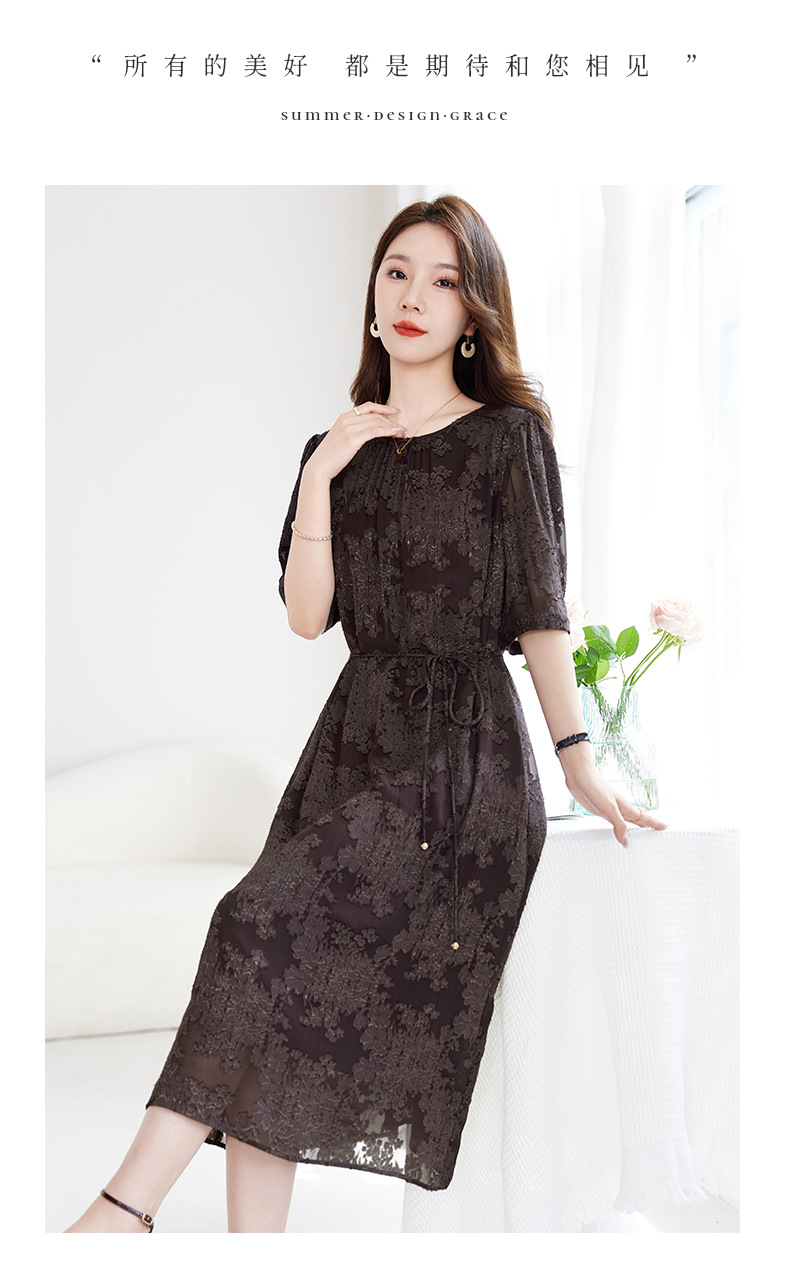 QS-82599008【100%桑蚕丝】真丝连衣裙女100%剪花复古文艺显瘦连衣裙女9008