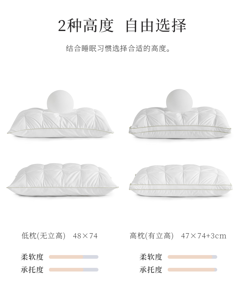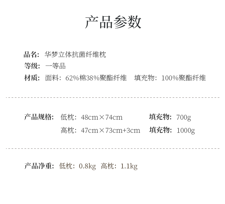 whinny/惠谊柔软蓬松纤维单人枕芯华梦立体抗菌纤维枕高枕低枕
