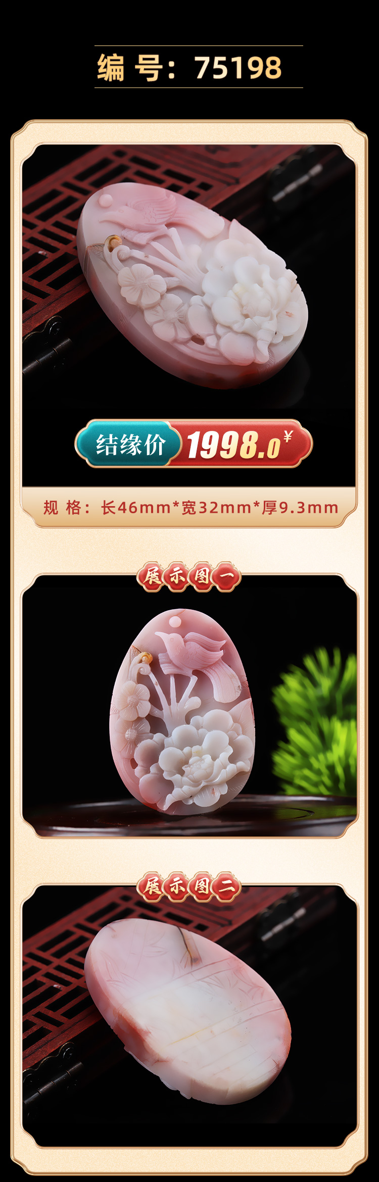 老元吉 老矿盐源玛瑙花鸟挂件雕刻件 吊坠