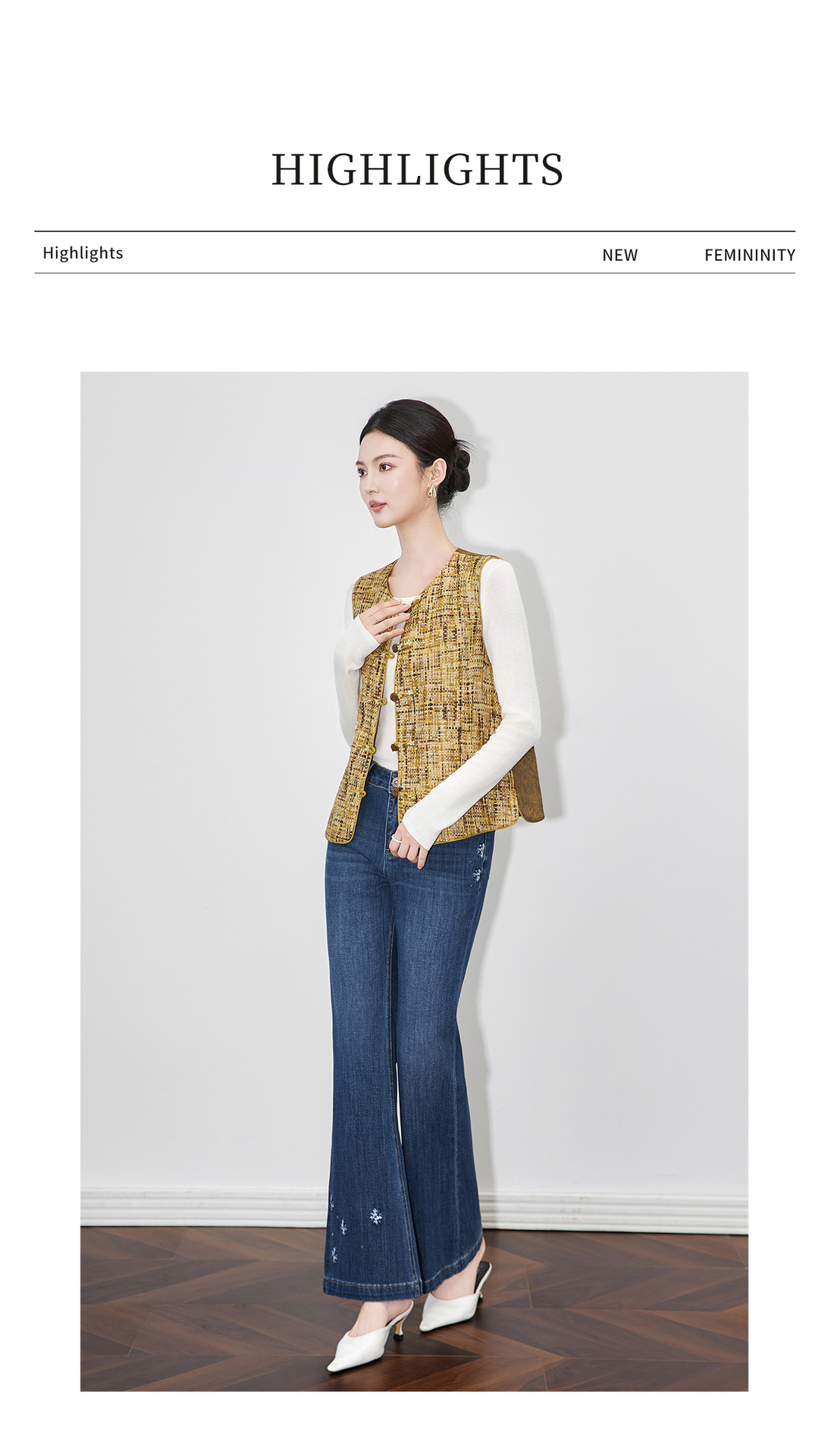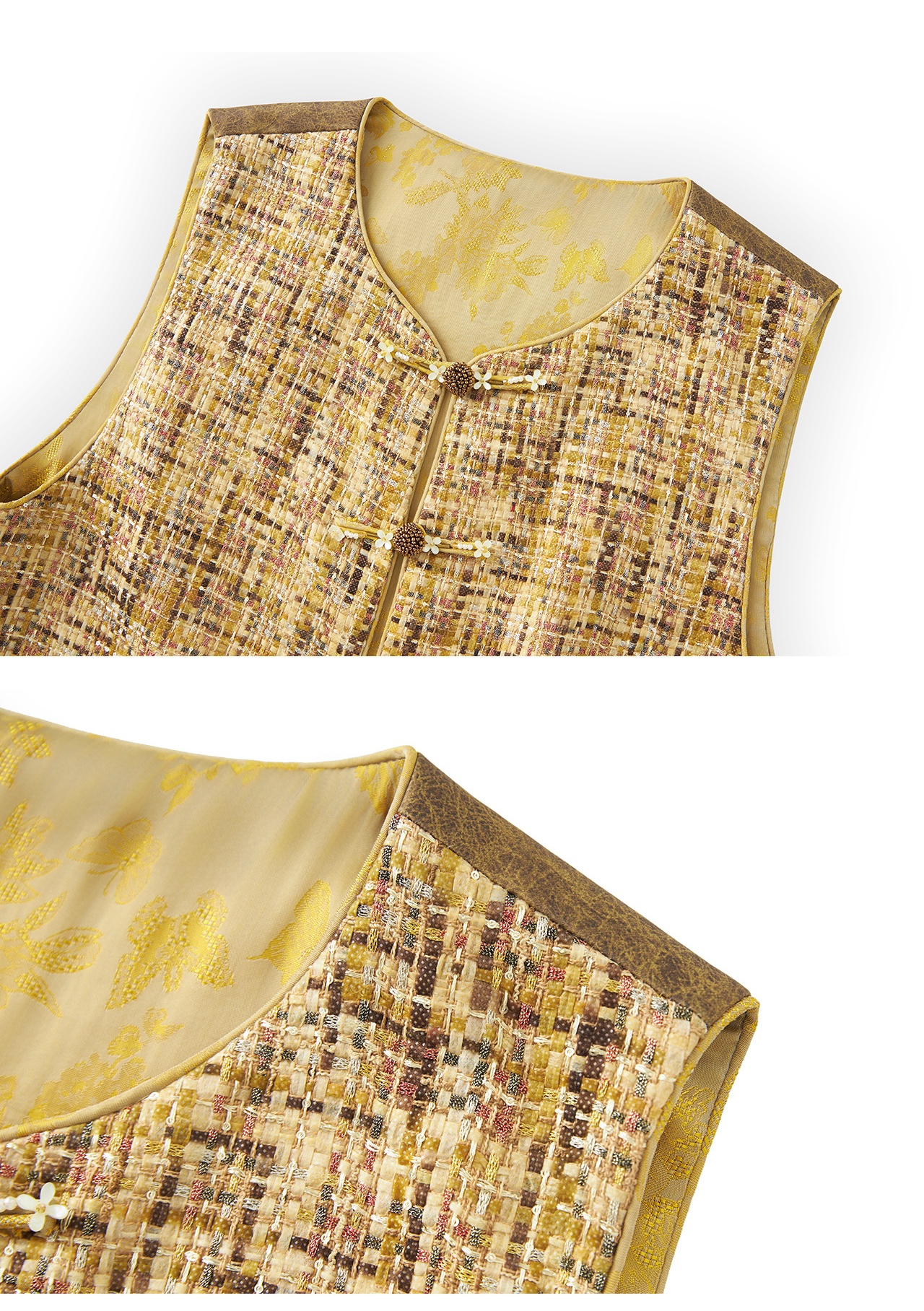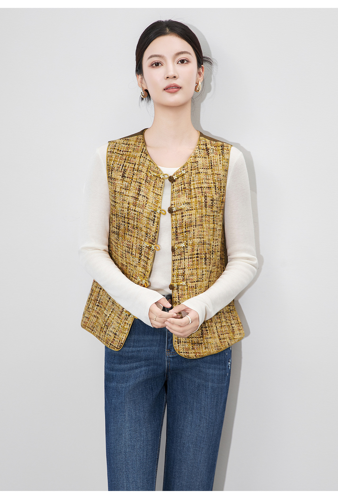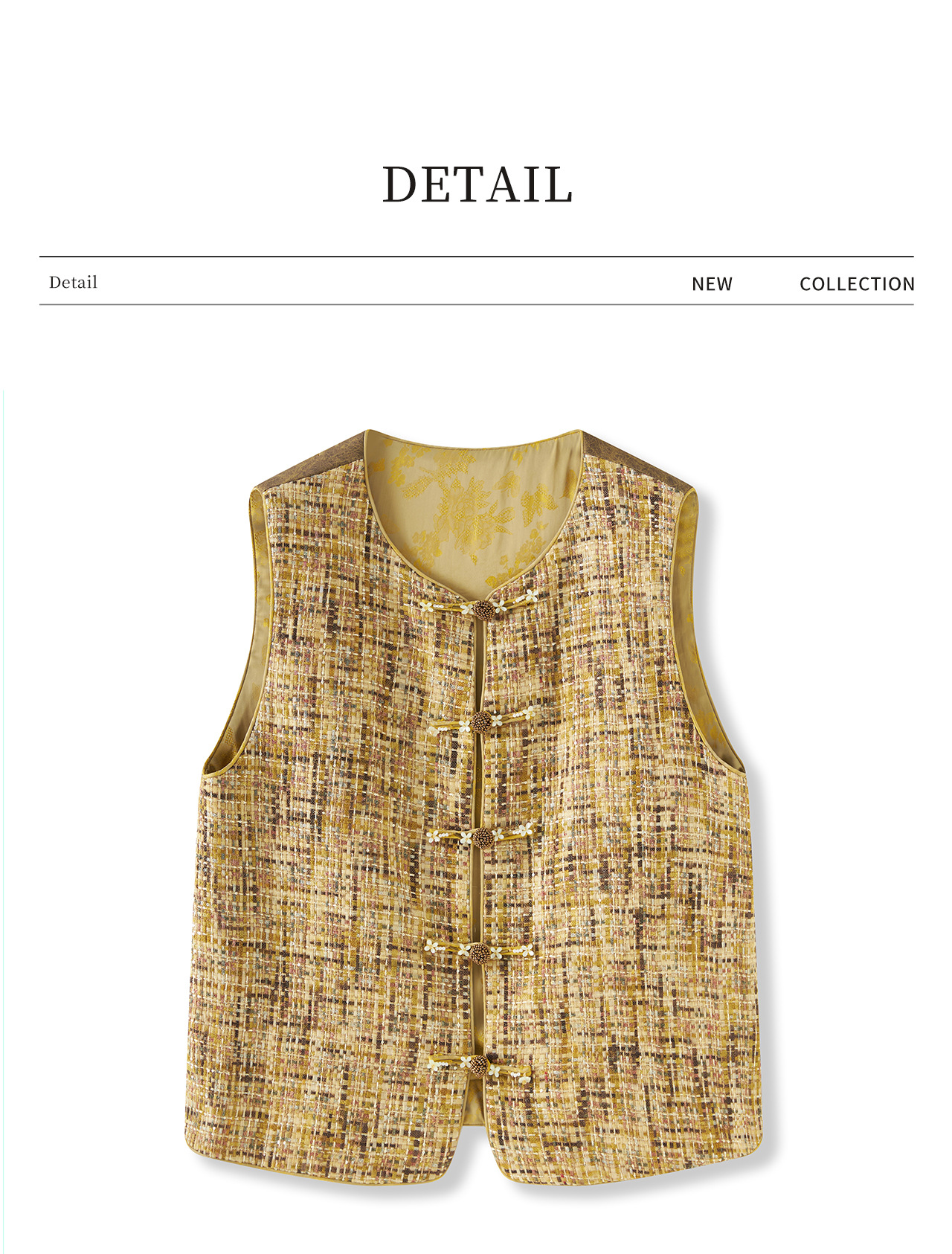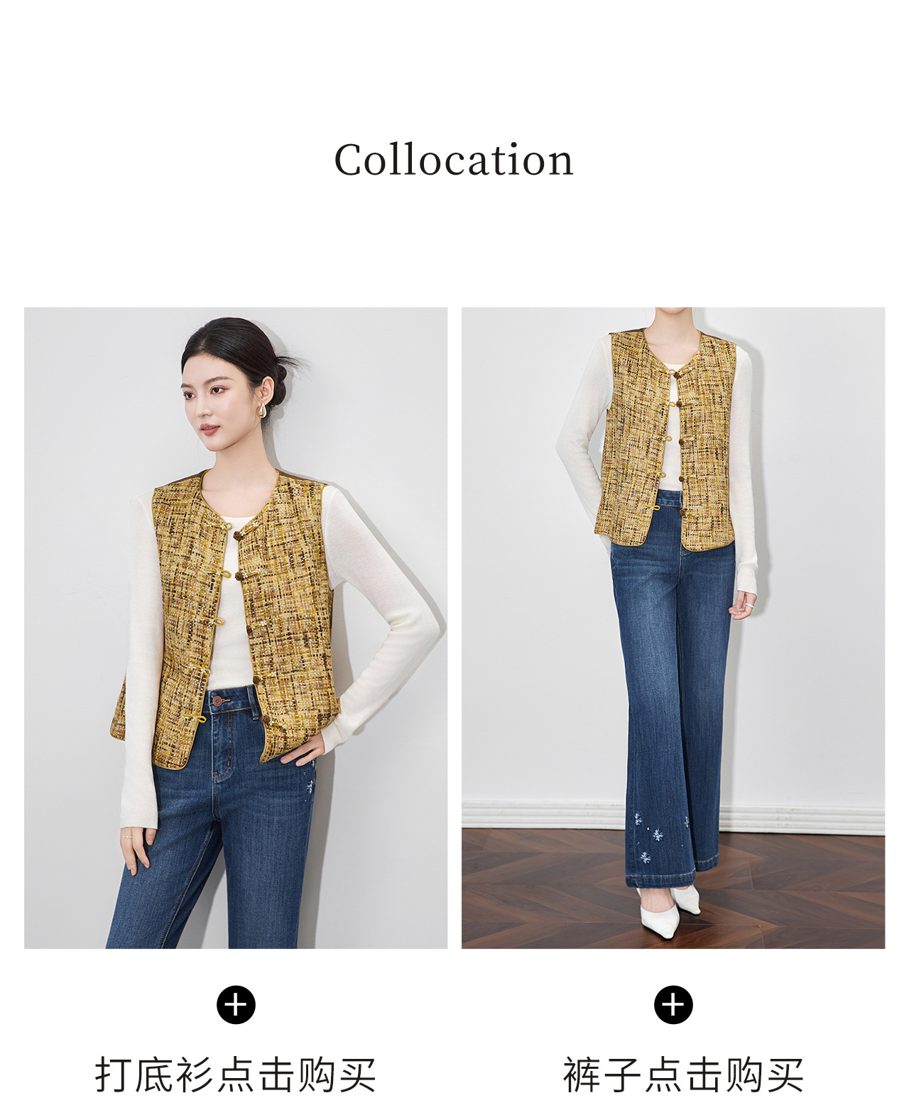 洛诗琳法式粗花呢小香风马甲上衣2025秋季新中式国风上衣wl03928