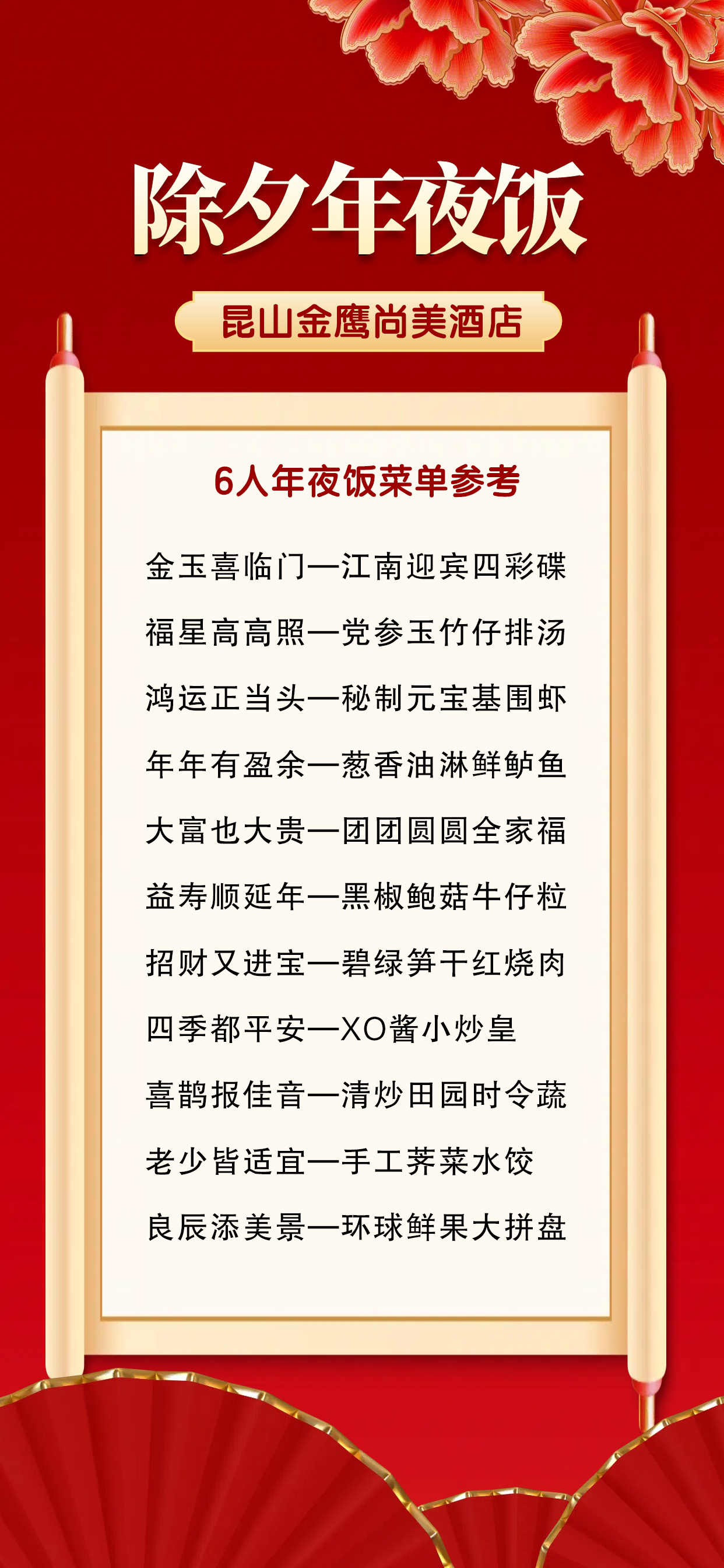 ★新春团圆宴★¥5399起/套【昆山金鹰尚美酒店】2晚3间高级景观房,含自助早餐、团圆宴桌餐、次日自助午餐、自助晚餐!另有8/10人套餐可选~ 昆山CBD核心区域!2026年2月16日-2月20日专享