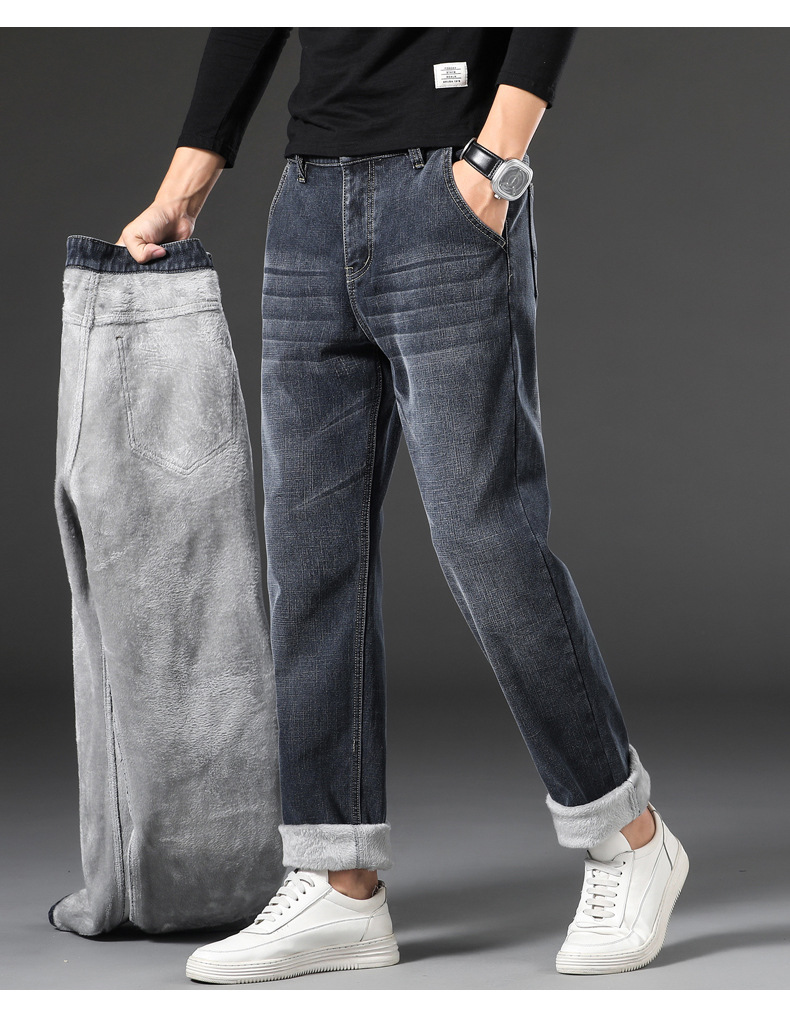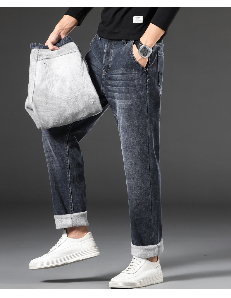 【新款DQ】大码男装冬季新款加绒加厚牛仔裤男宽松弹力商务百塔牛仔长裤