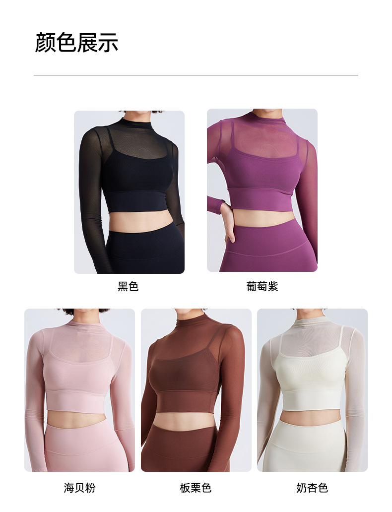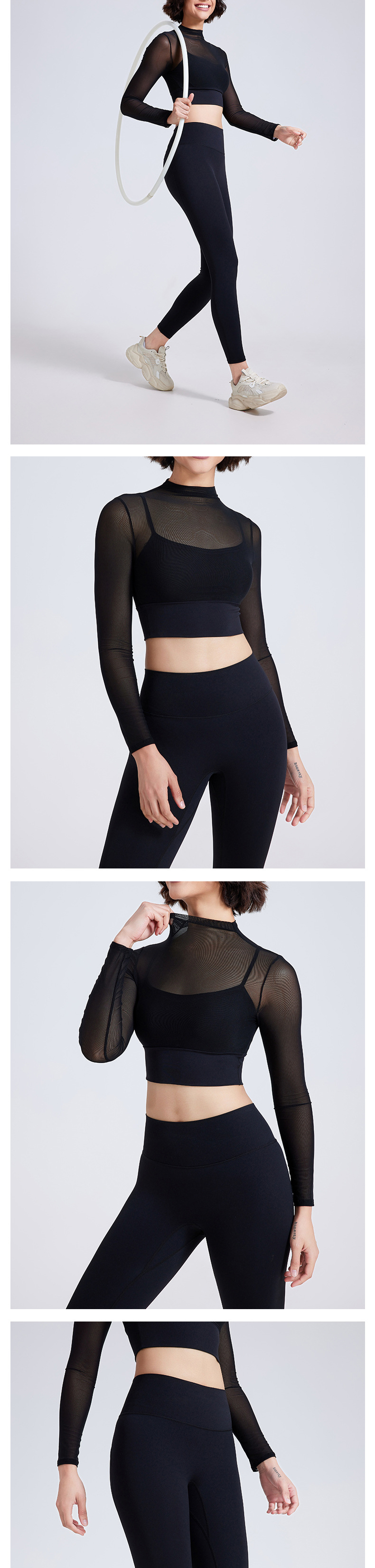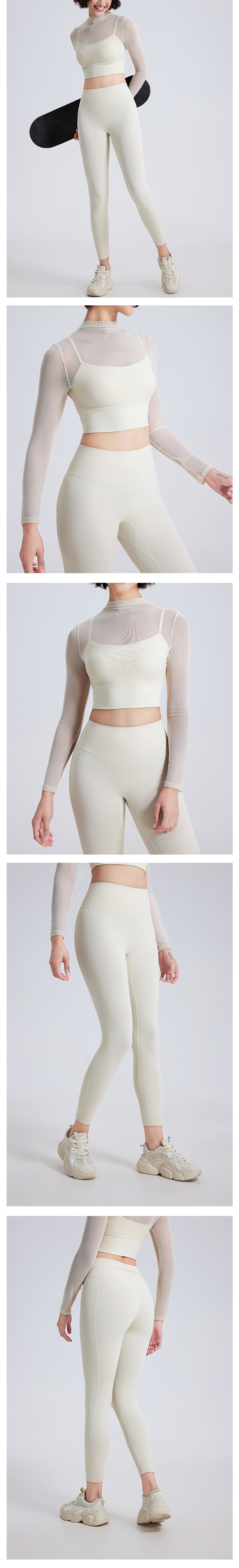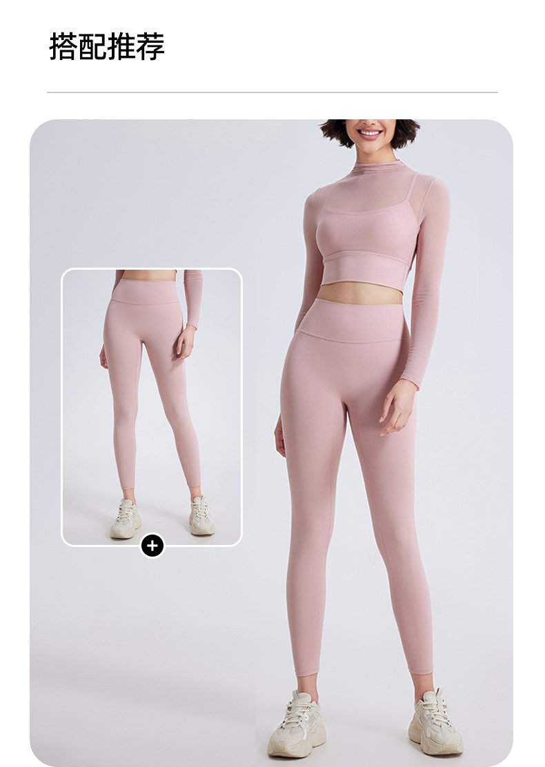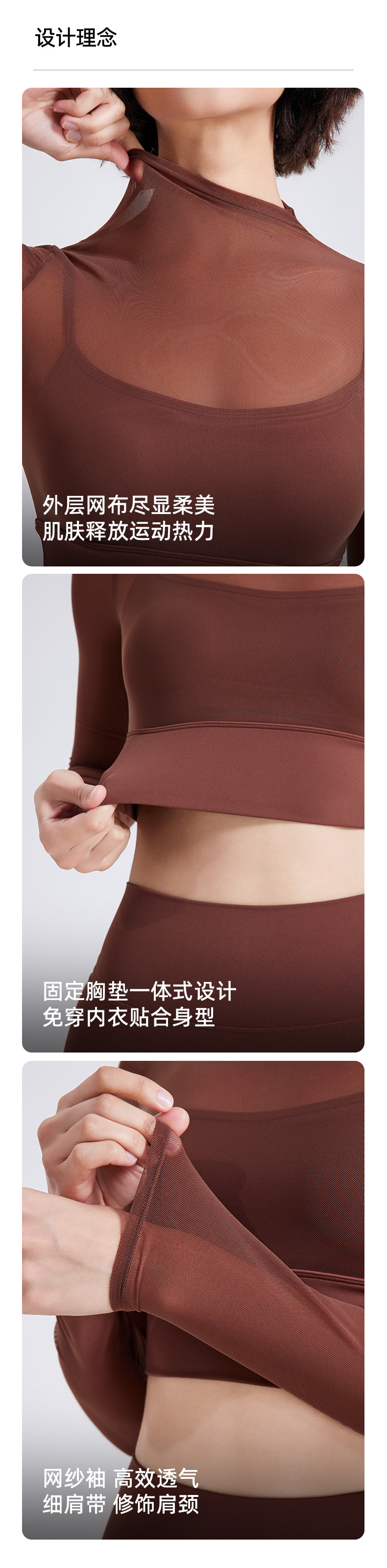 跃牌【禅语梵心系列】性感网纱瑜伽服长袖带胸垫跑步速干运动文胸 无痕运动速干紧身裤外穿跑步健身裤 CX2418-上衣 CK2421-裤子