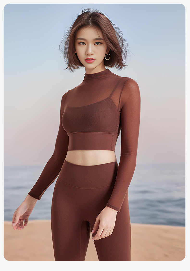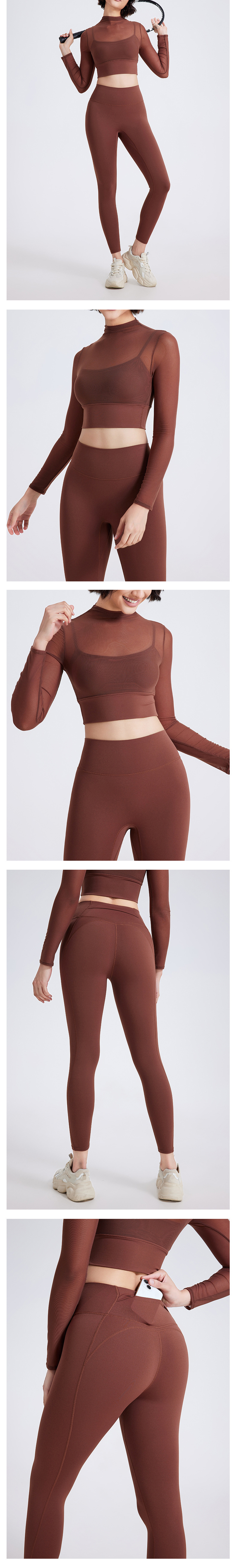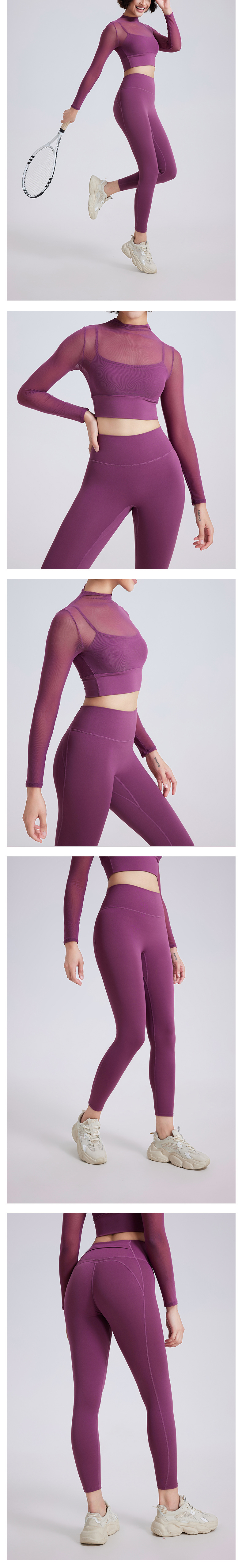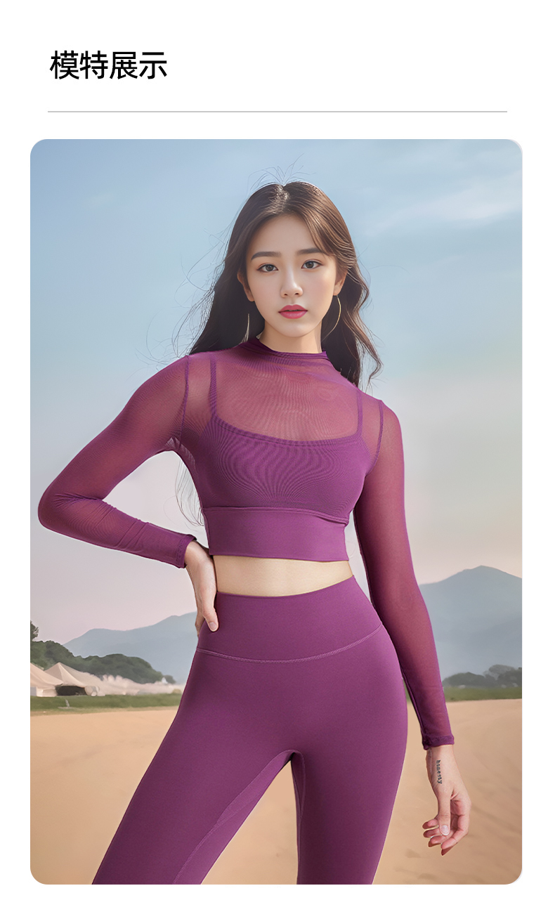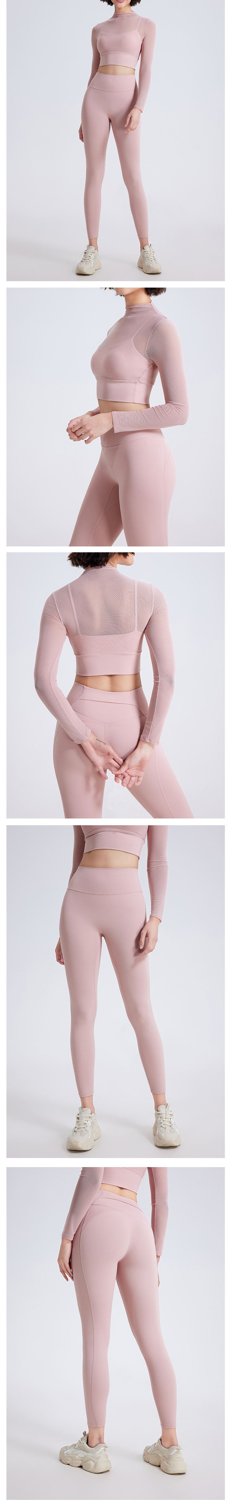 跃牌【禅语梵心系列】性感网纱瑜伽服长袖带胸垫跑步速干运动文胸 无痕运动速干紧身裤外穿跑步健身裤 CX2418-上衣 CK2421-裤子