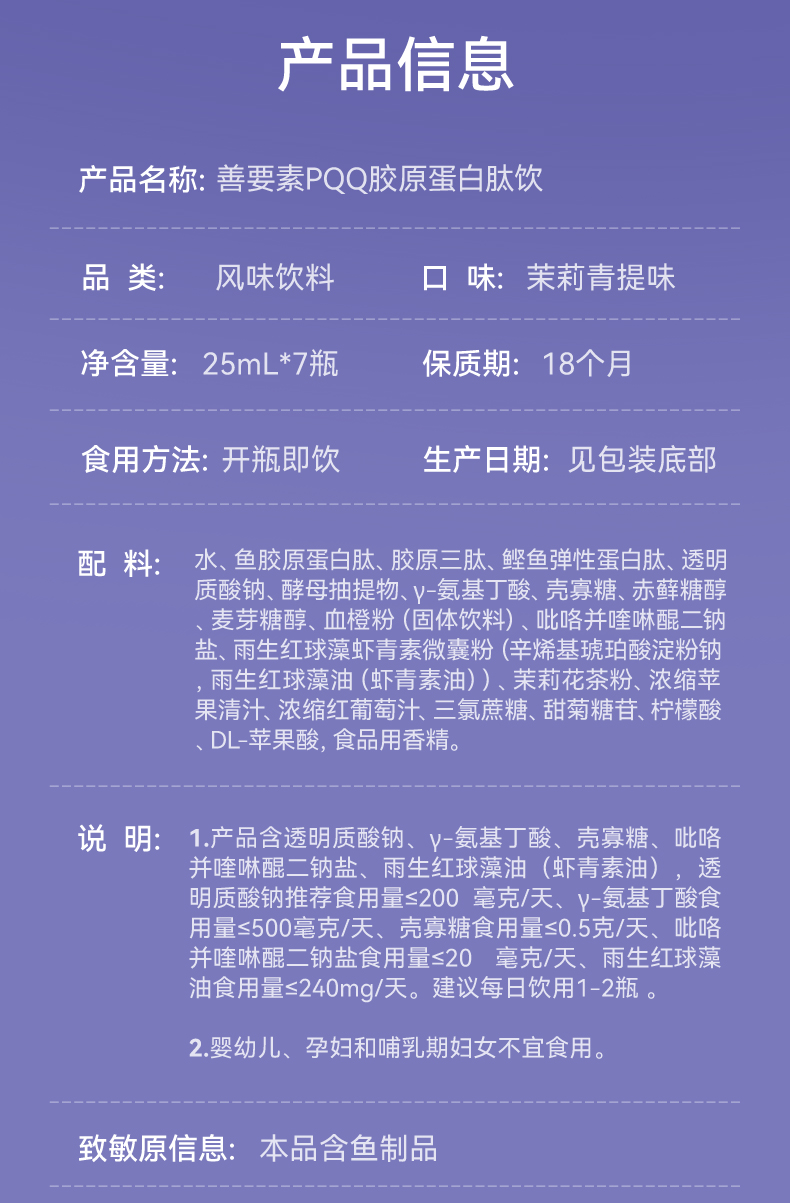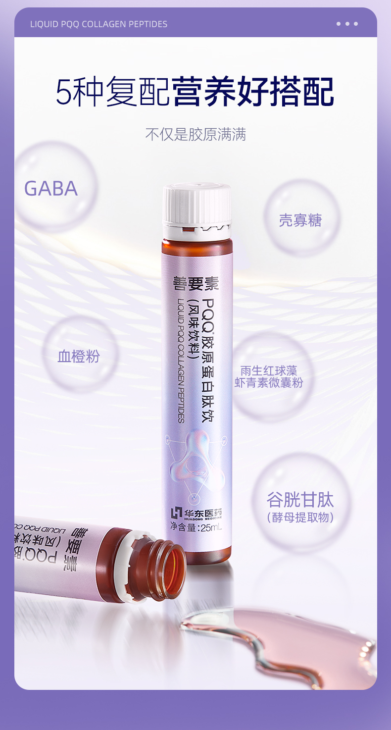 【北京卫视养生堂】华东医药PQQ胶原蛋白肽饮 25ml*7支/盒 小分子液态肽 胶原直充