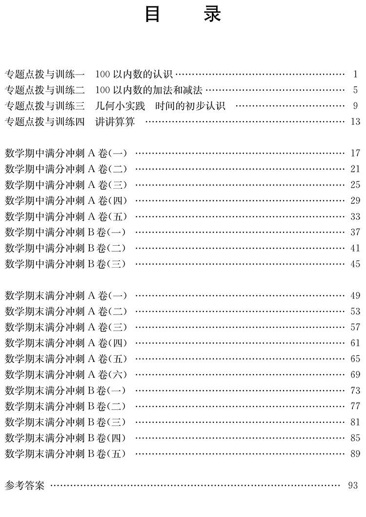 数学期中期末满分冲刺卷 一年级第二学期(修订版)