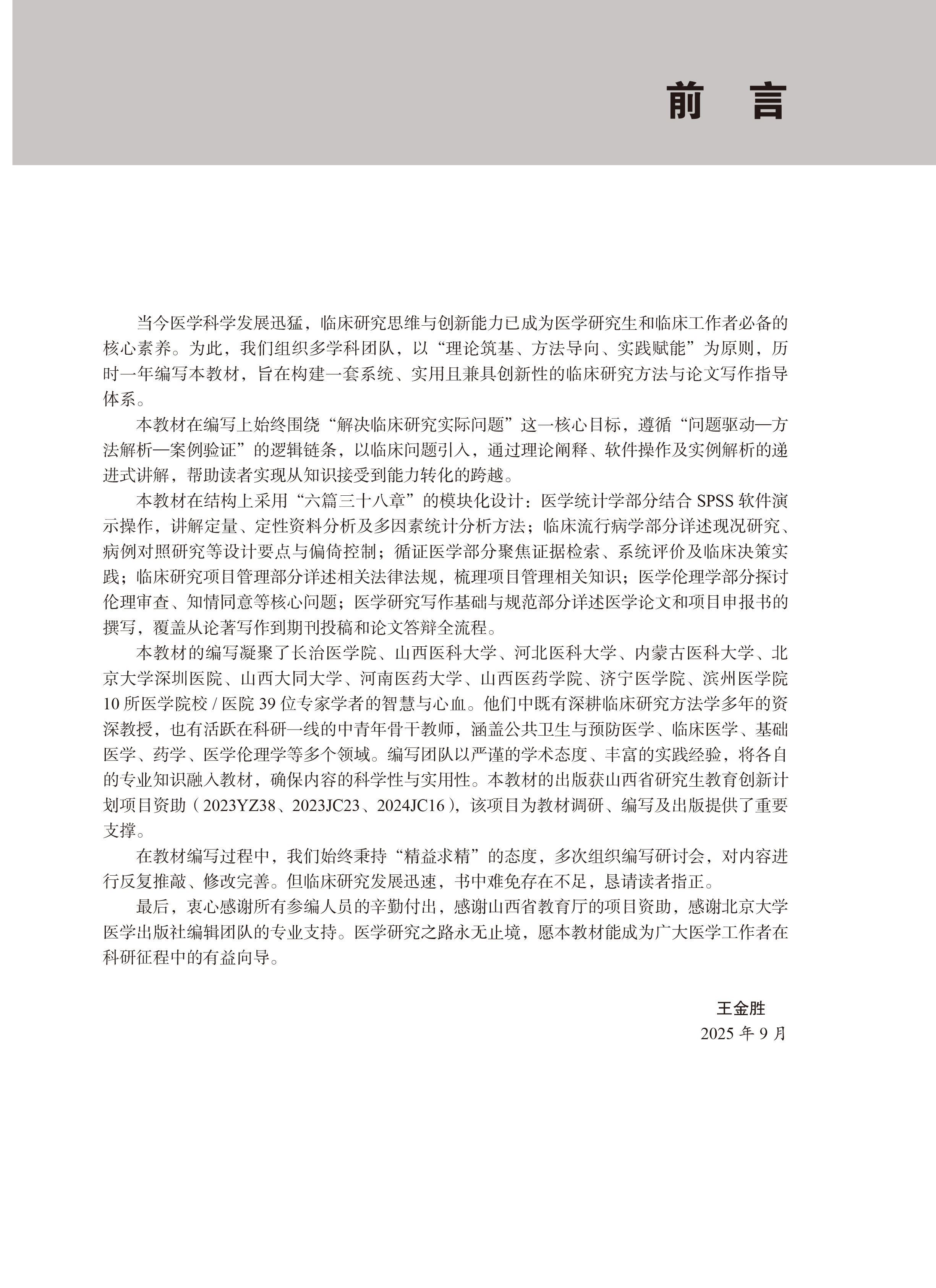临床研究方法与论文写作 王金胜 主编 北医社