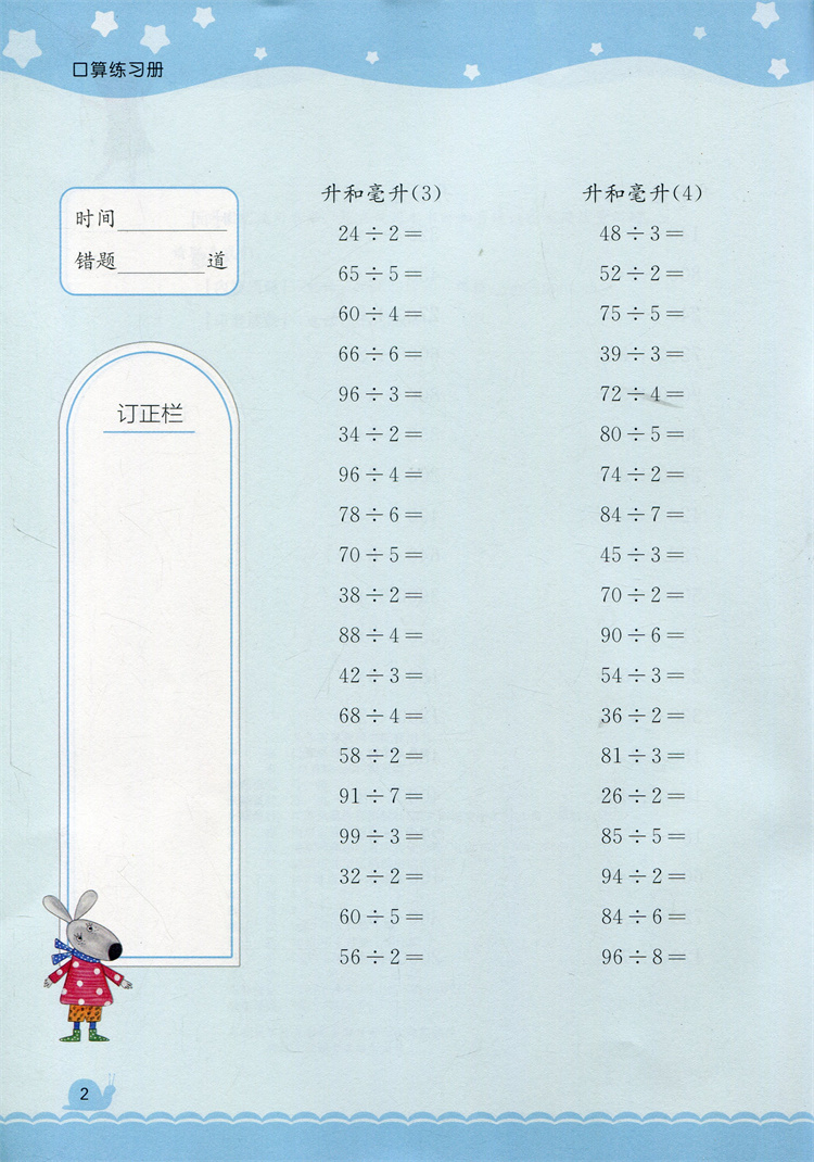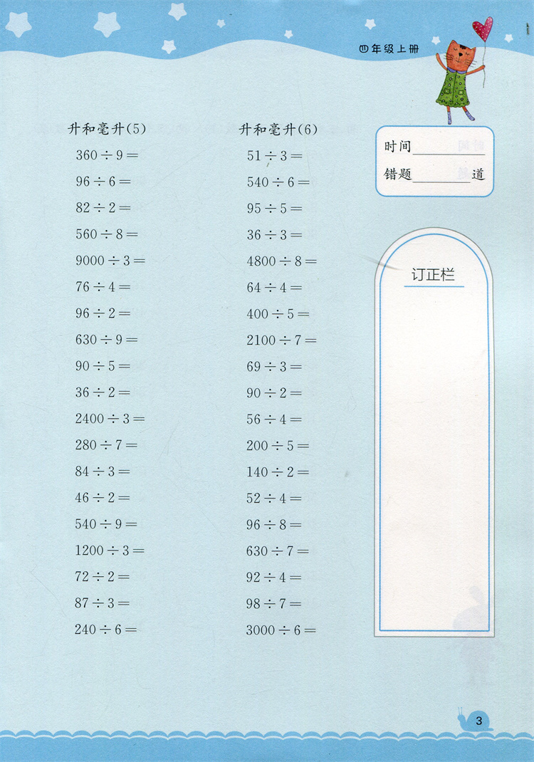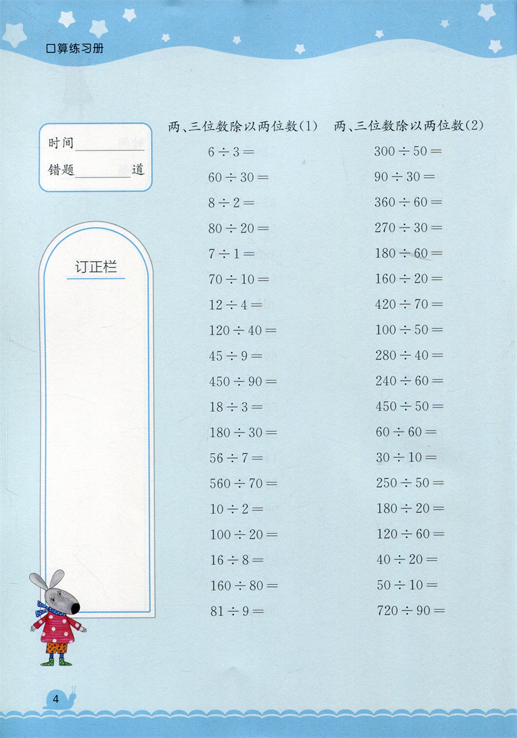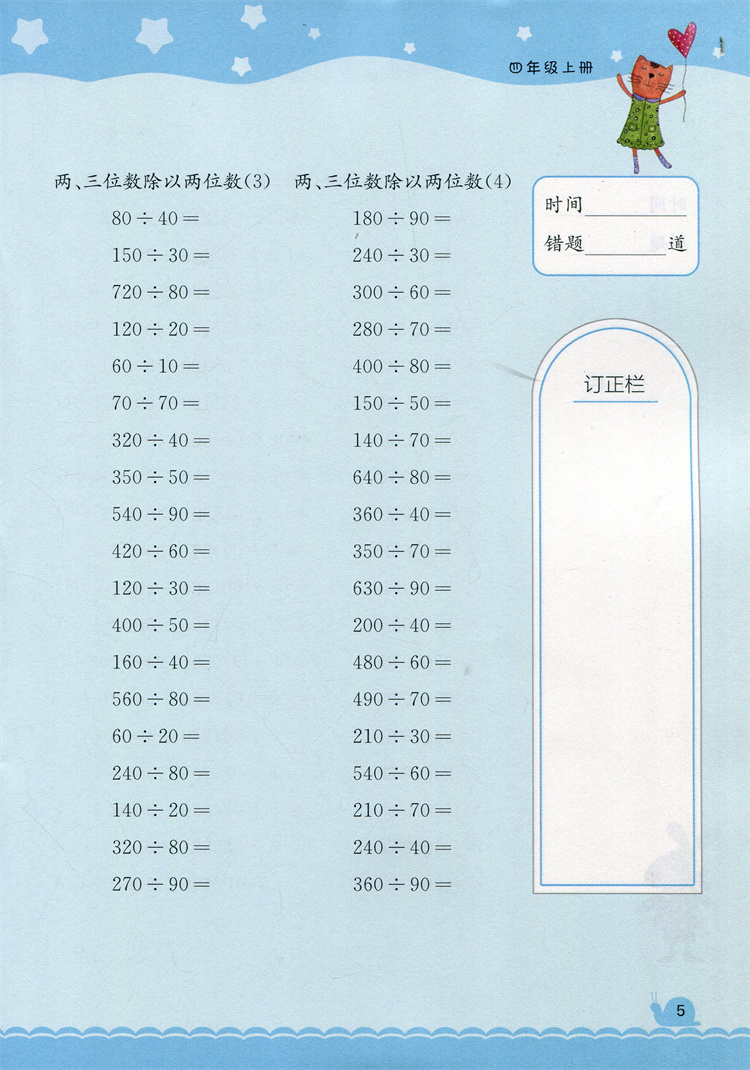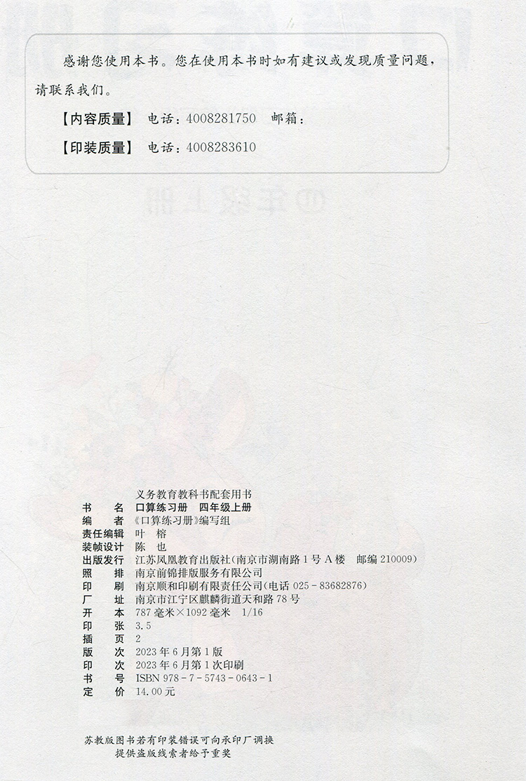 2023年秋 口算练习册 四年级上册 无答案 小学生计算口算能手训练练习册4上 江苏凤凰教育出版社