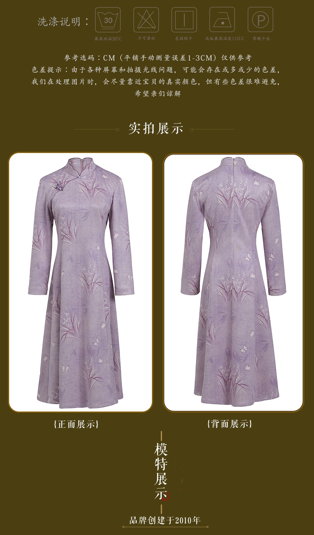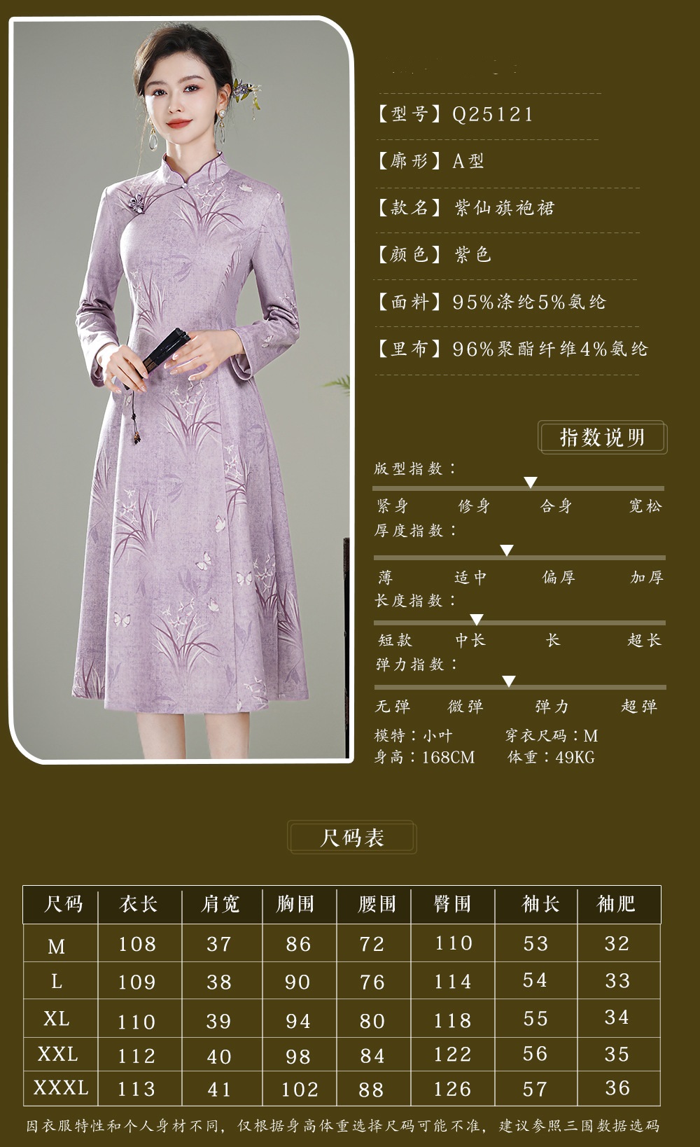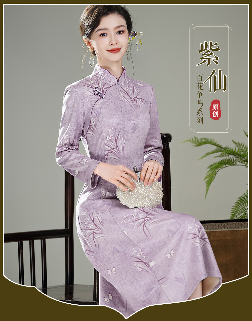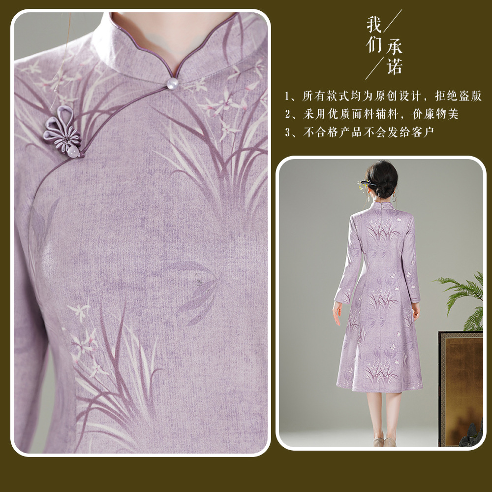 【紫仙】麂皮绒复古长袖,新中式国风旗袍连衣裙XGT-Q25121