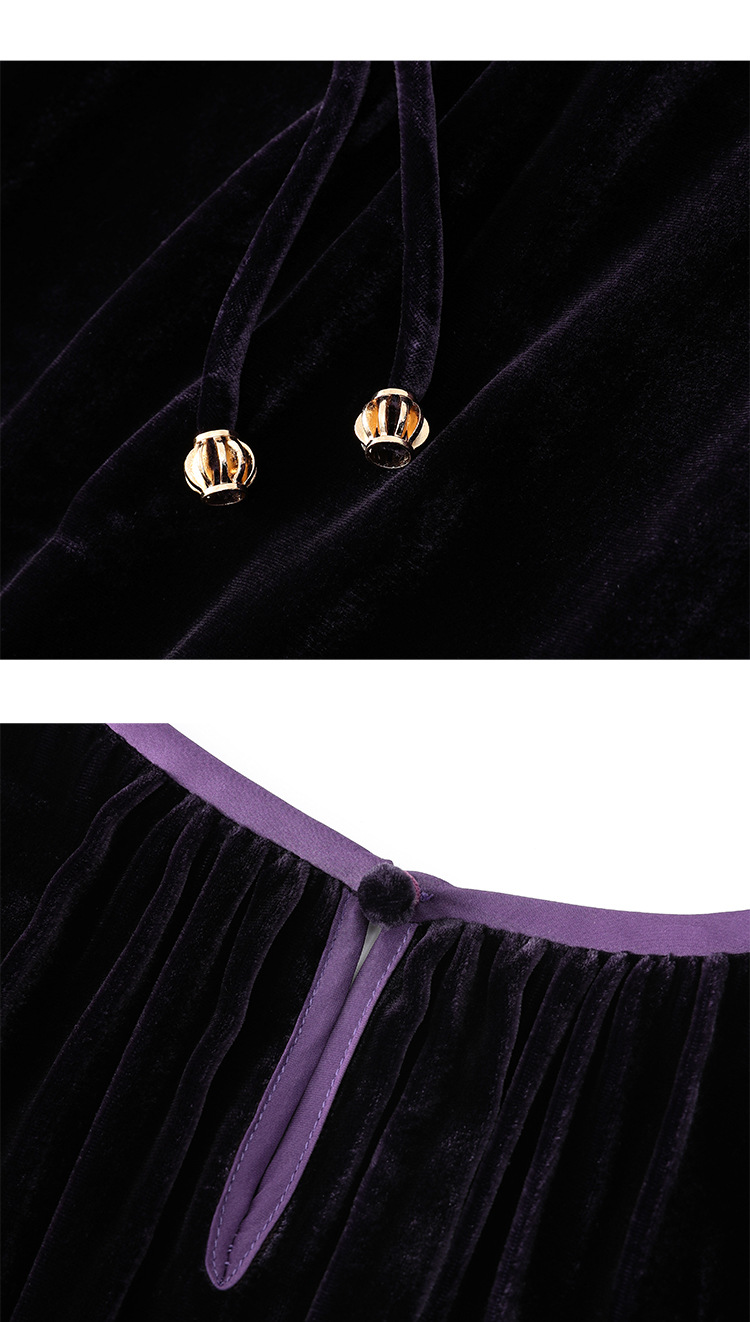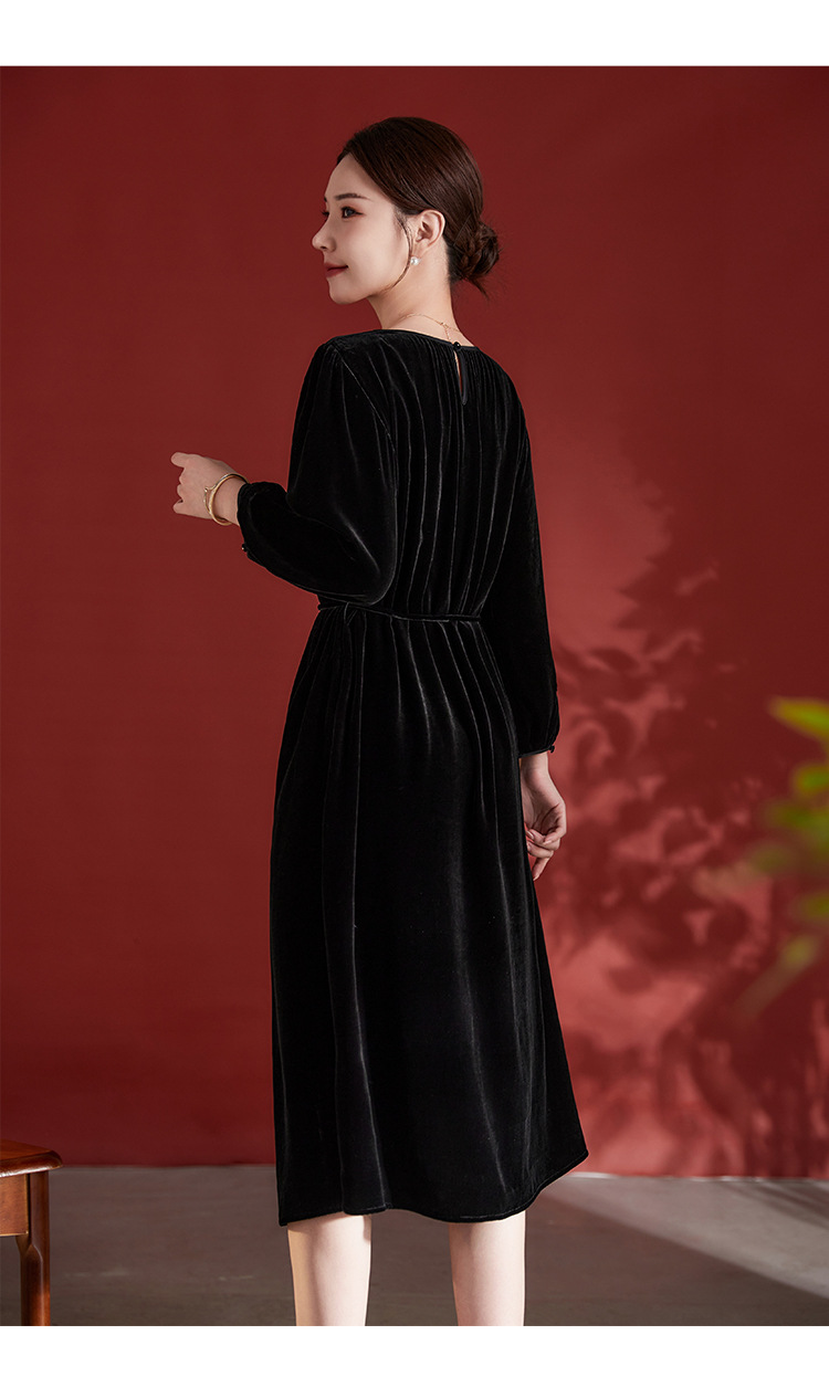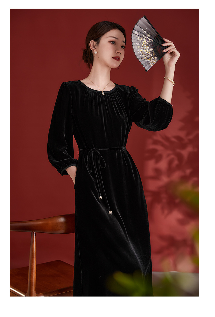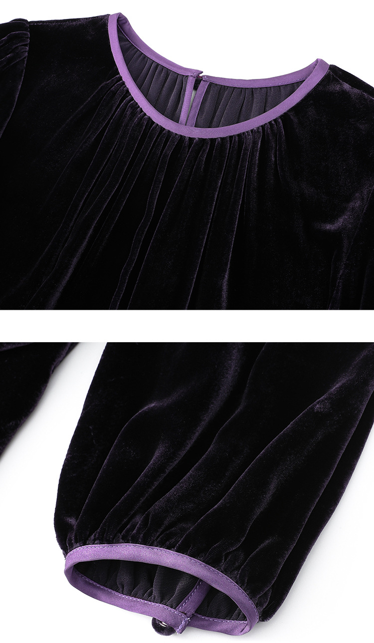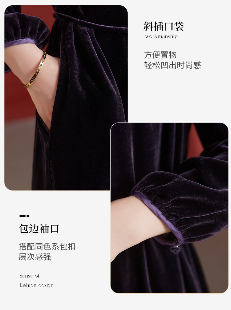 墨黛紫高级感长袖,桑蚕丝丝绒连衣裙SM-82497980