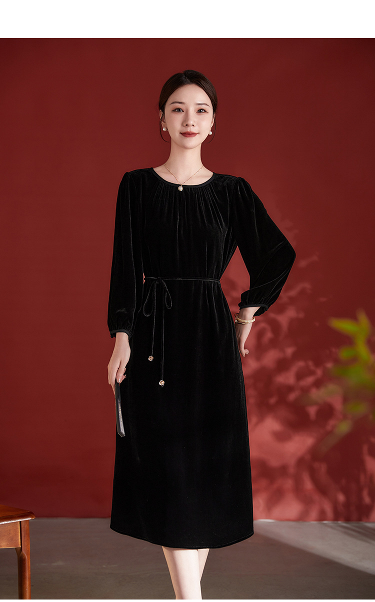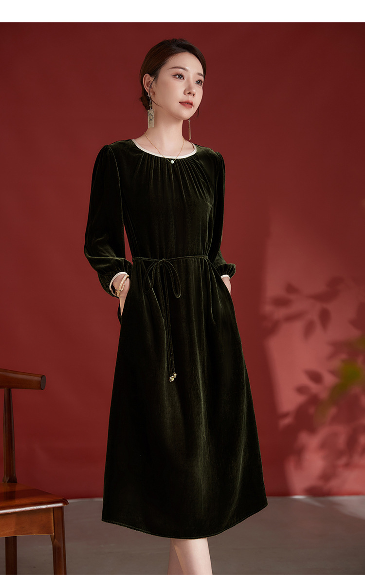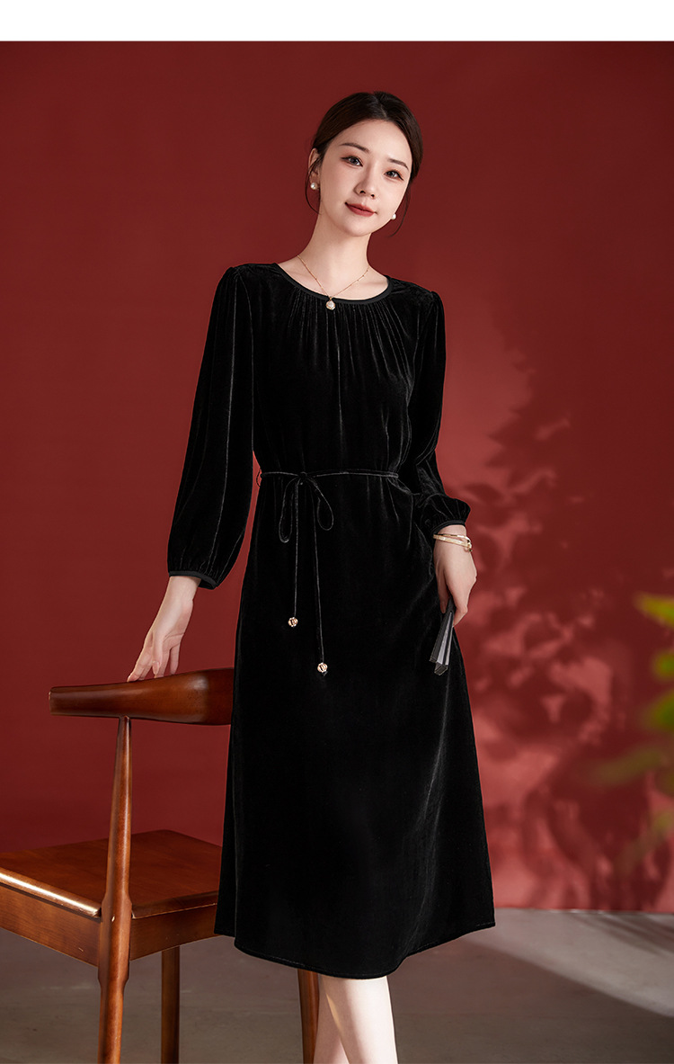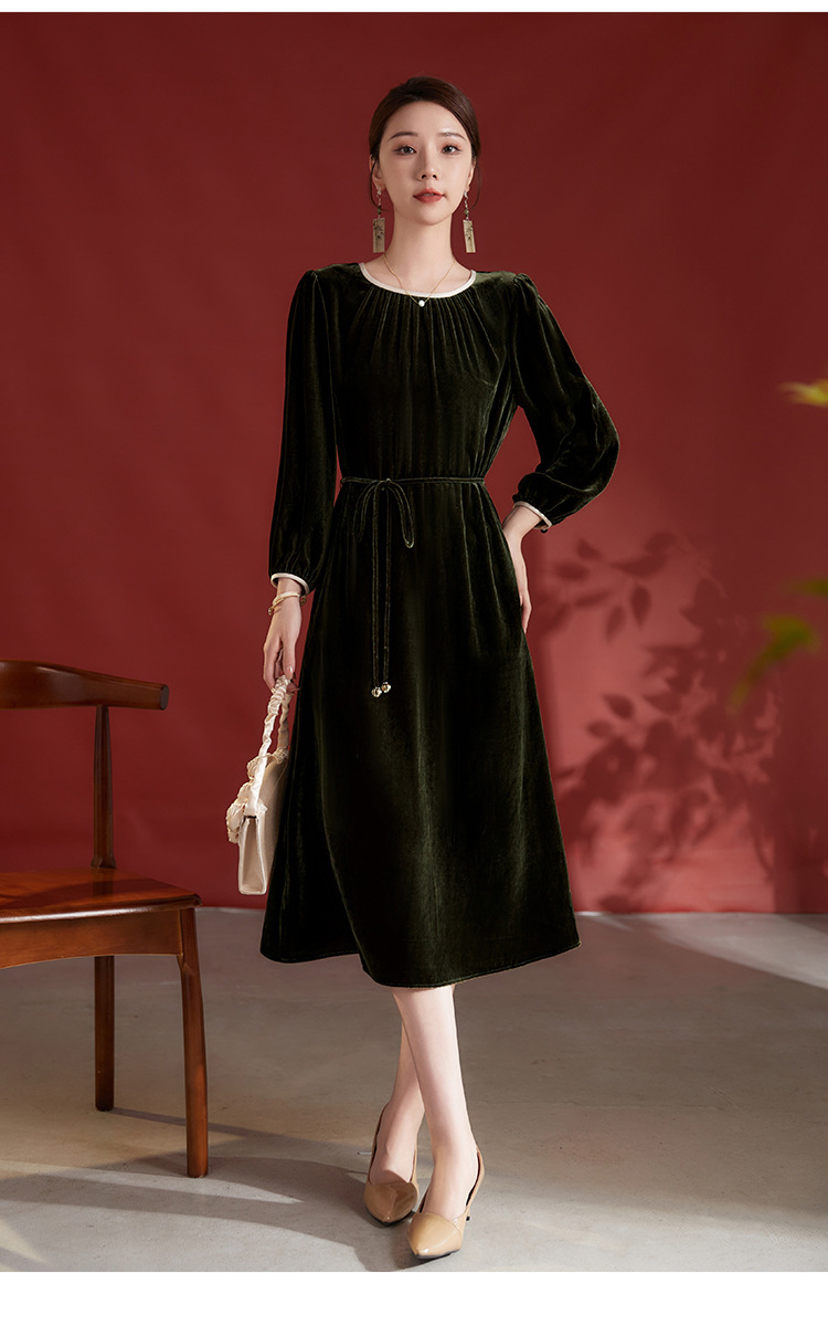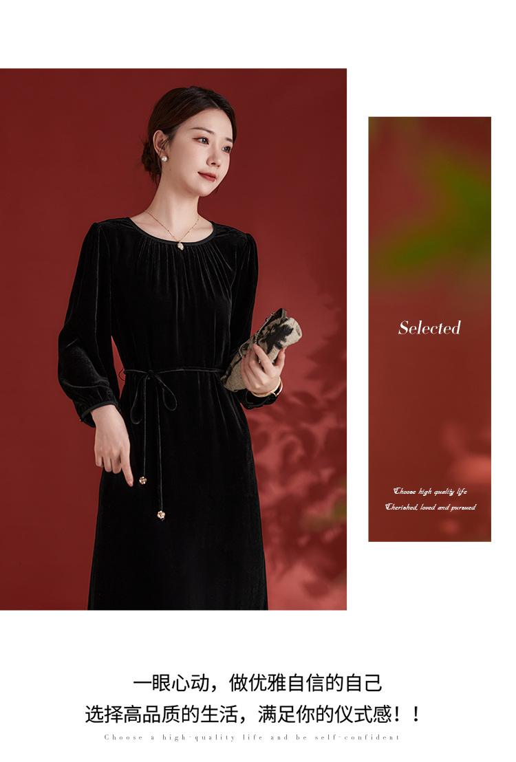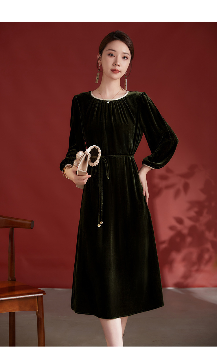 墨黛紫高级感长袖,桑蚕丝丝绒连衣裙SM-82497980