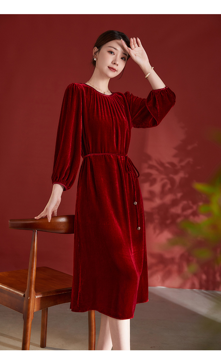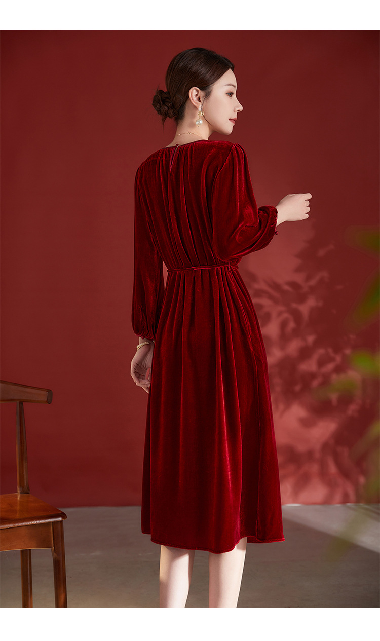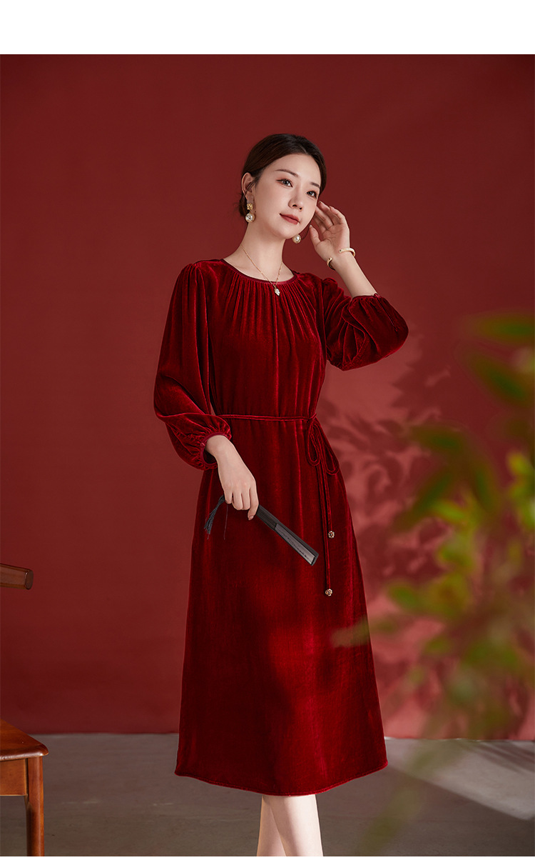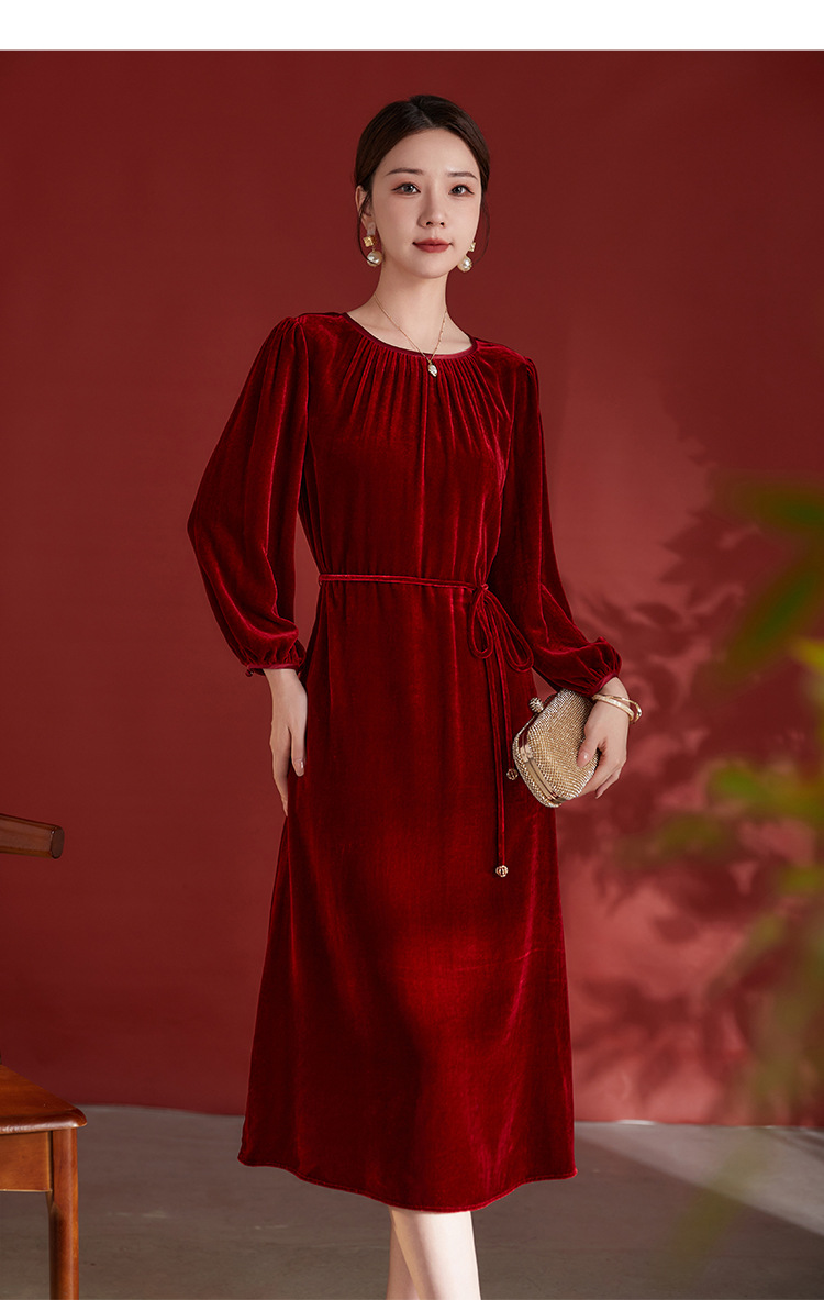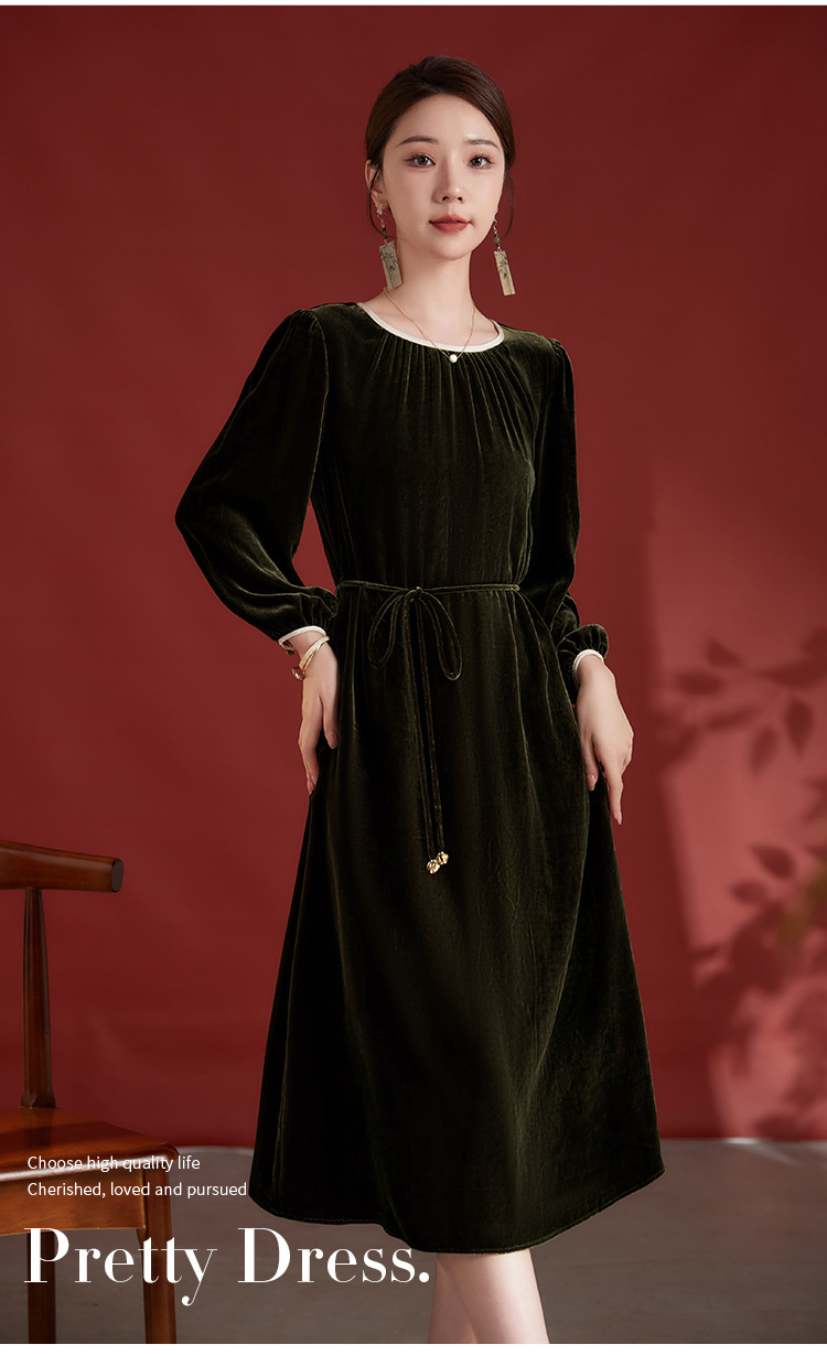 墨黛紫高级感长袖,桑蚕丝丝绒连衣裙SM-82497980