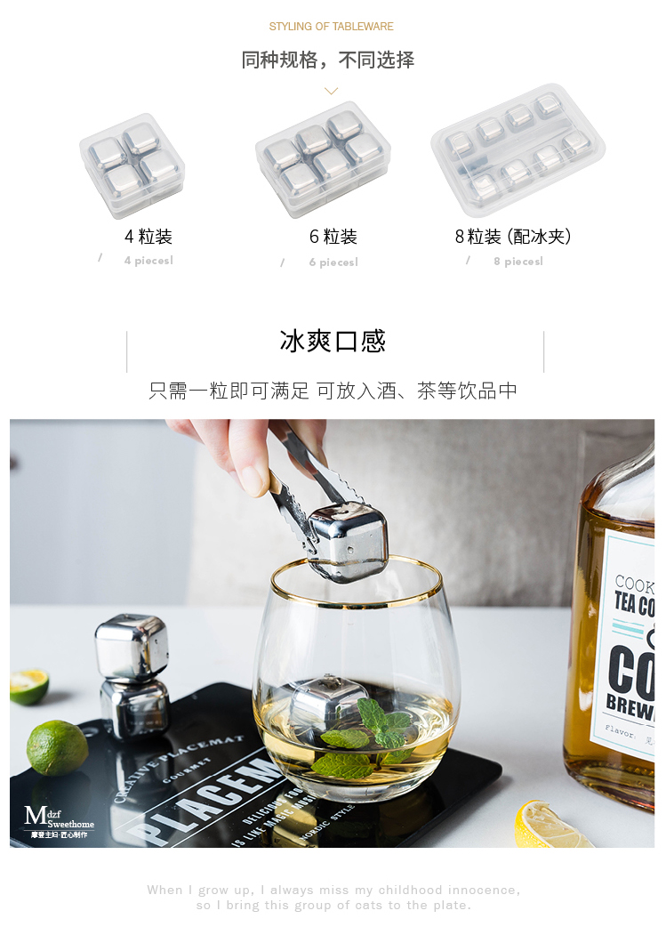 摩登主妇 304不锈钢金属速冻冰格家用冰块冰酒石威士忌冰镇神器