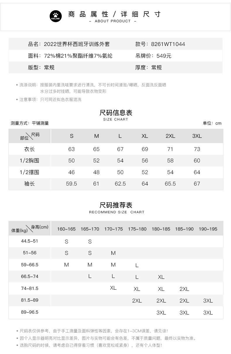 KELME卡尔美 2022秋冬新款西班牙足球训练外套冬训针织外套队服