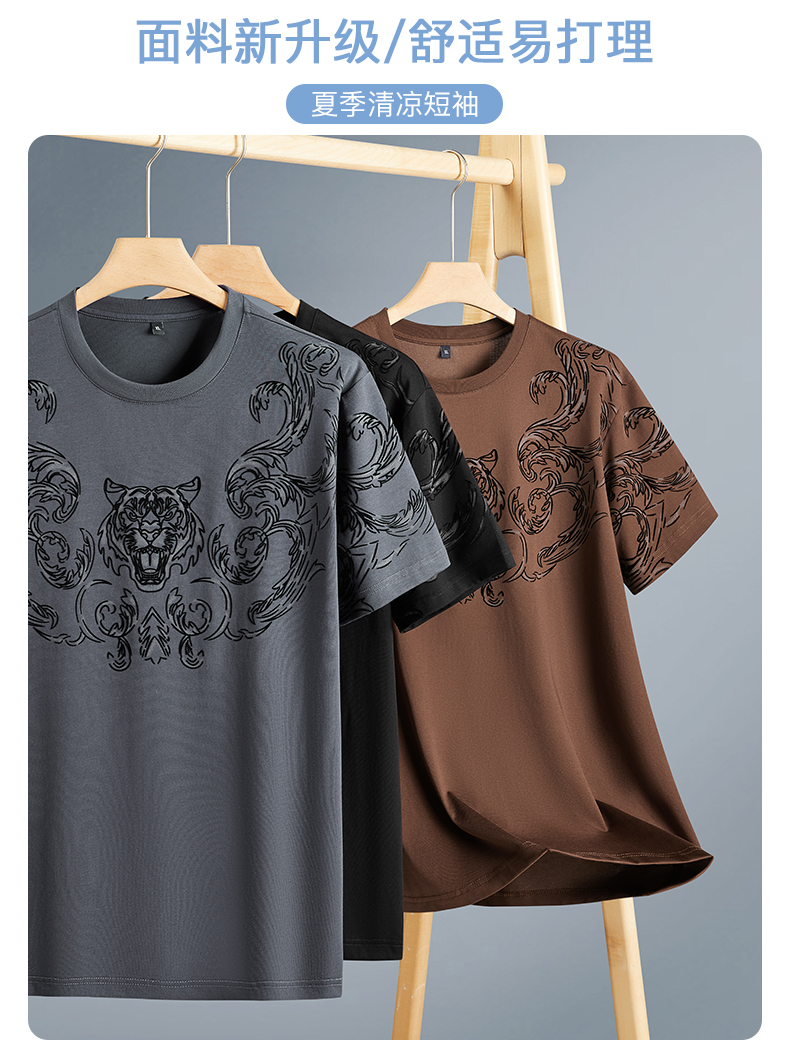 【丝光棉】【新款DPF】大依优型大码短袖T恤圆领加肥加大男装大号大码上衣男士休闲半袖夏季