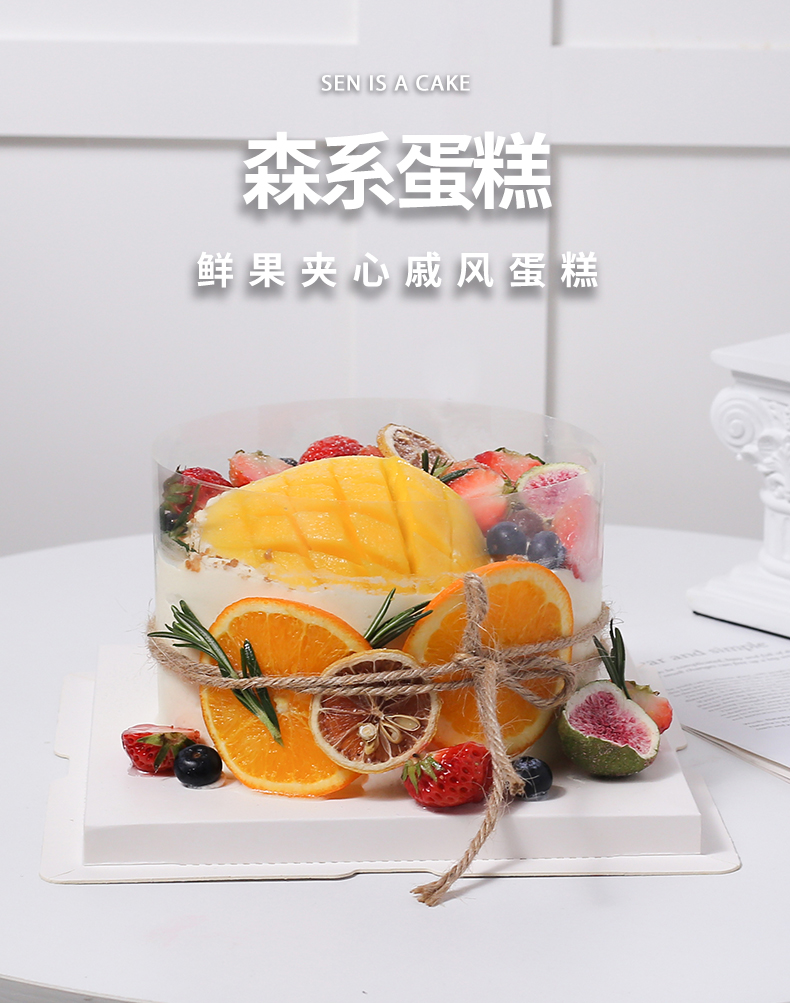 森系 动物奶油水果裸蛋糕(双层鲜果夹心)