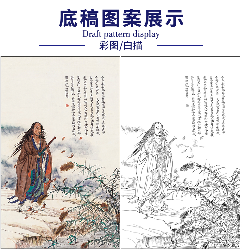 任重山水人物工笔画白描底稿《屈原》临摹勾线高清打印稿RD77