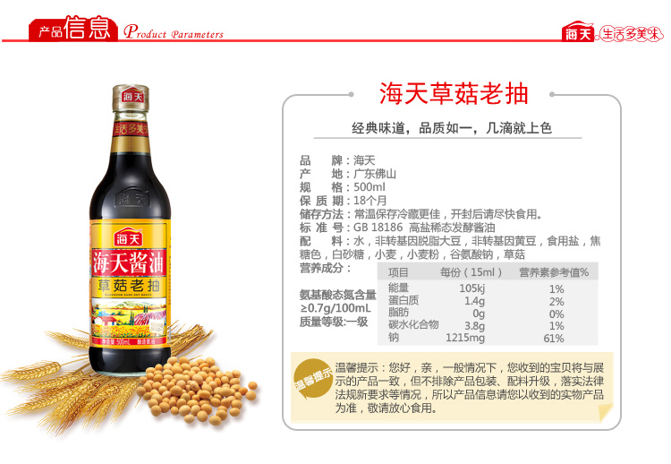 【百汇到家】海天草菇老抽酱油500ml