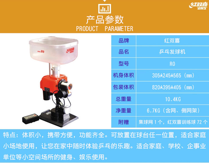 DHS红双喜 彩虹R0乒乓球发球机桌面式自动发球器(送100个球+集球网)