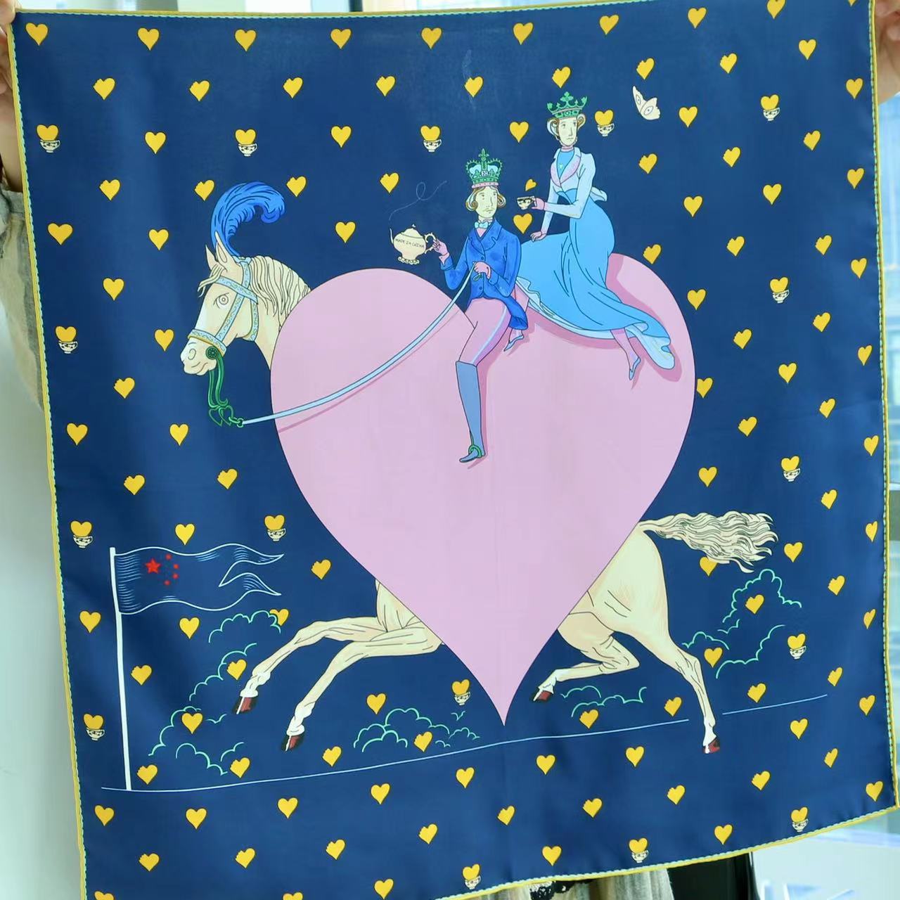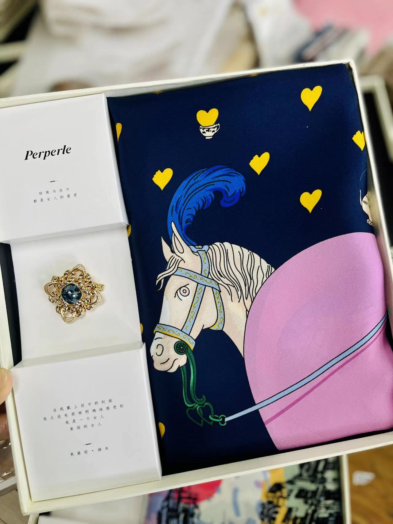【甄珠贝·时尚高级感系列】 70*70cm斜纹绸【爱心下午茶】丝巾和【宫廷风施华洛世奇】丝巾扣