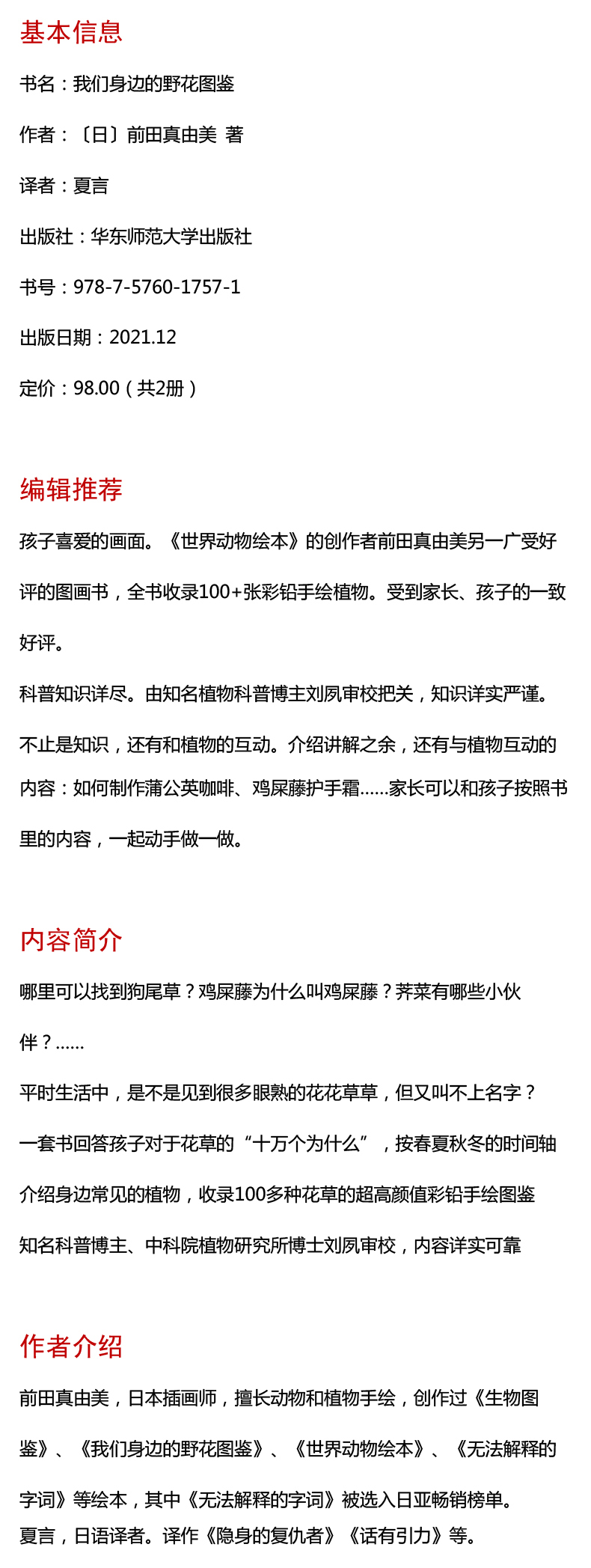 我们身边的野花图鉴 春夏+秋冬2册 彩铅手绘图鉴 科普博主刘夙