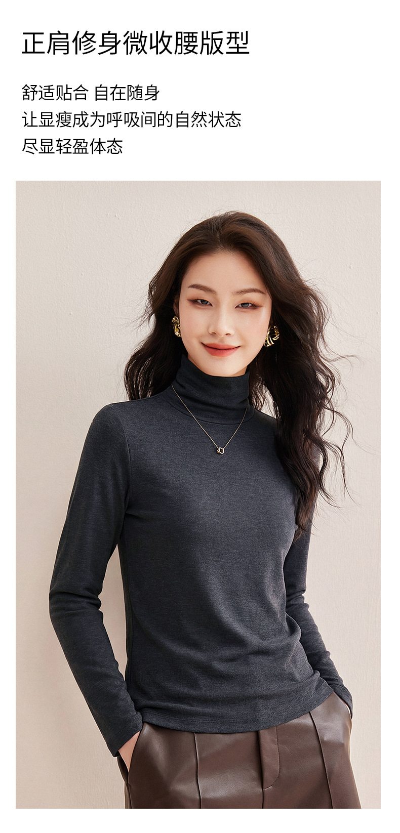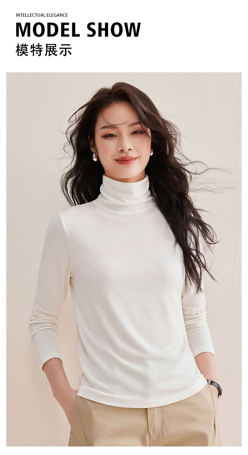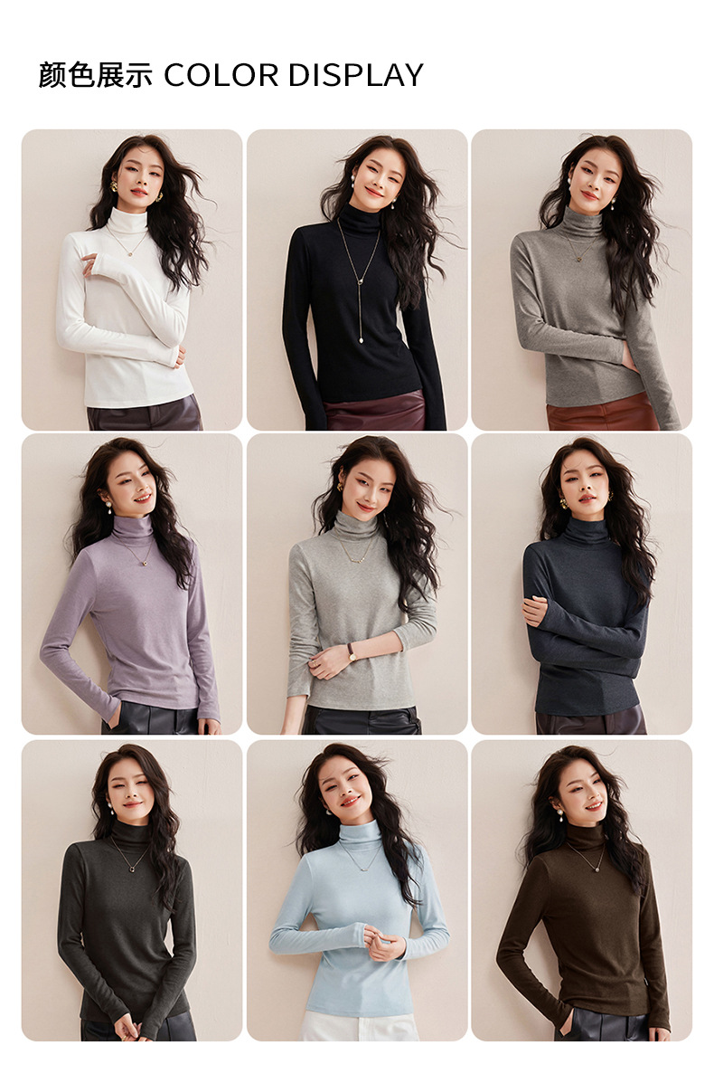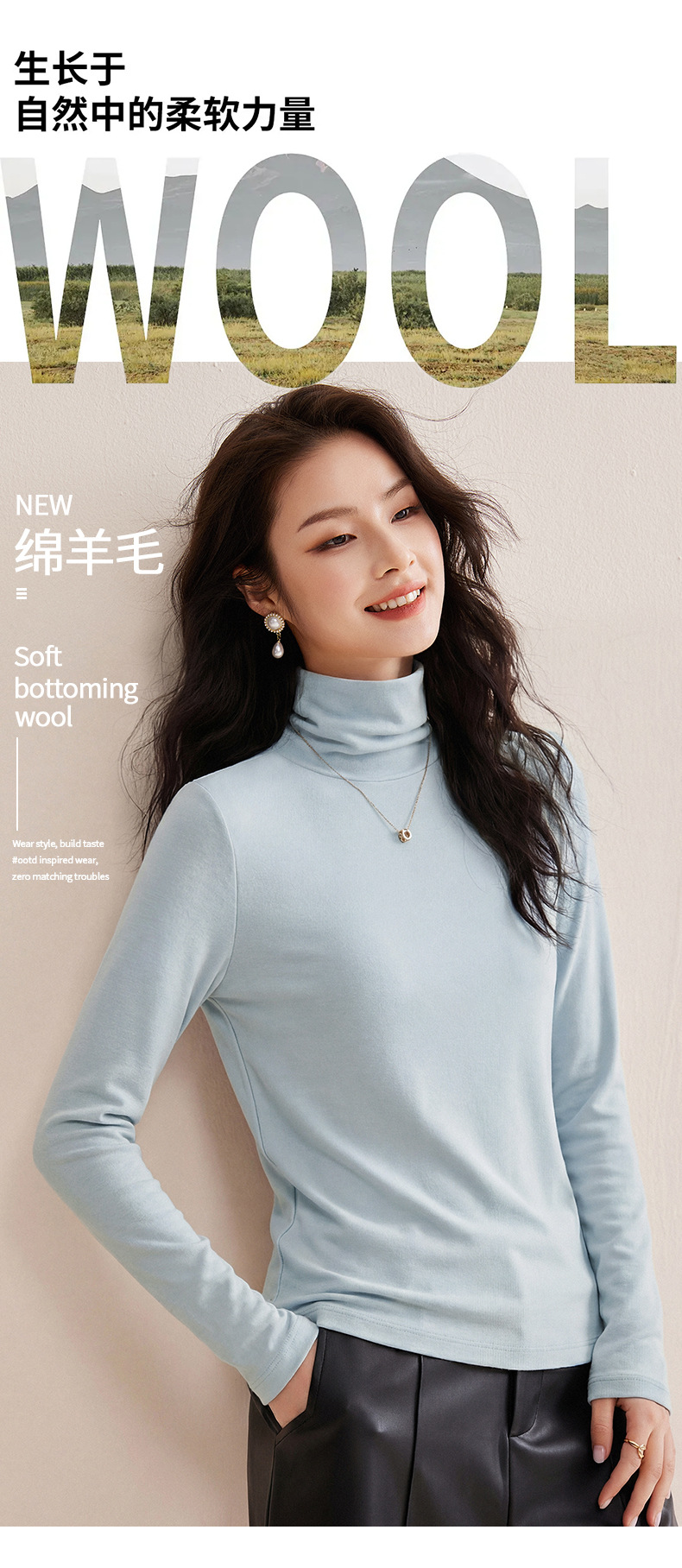 丁摩 可机洗美利奴精纺绵羊毛薄款高领打底衫女堆堆领修身针织高端内搭5ZF-18