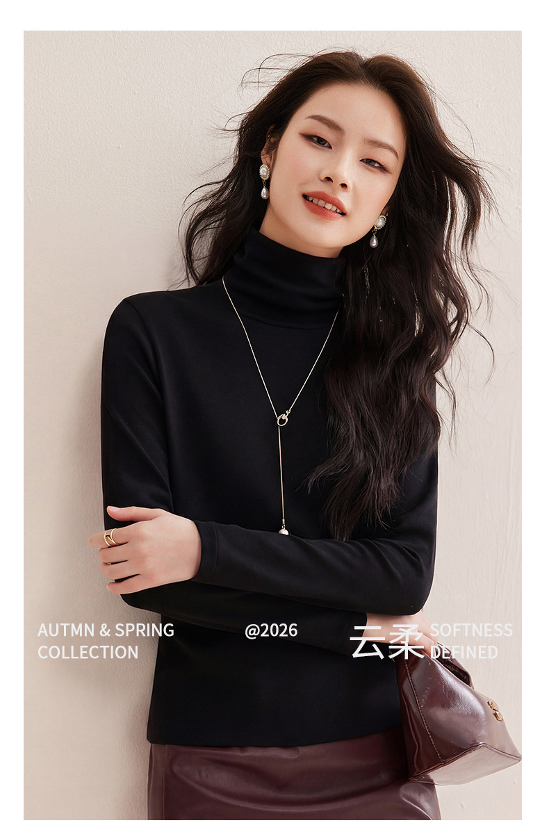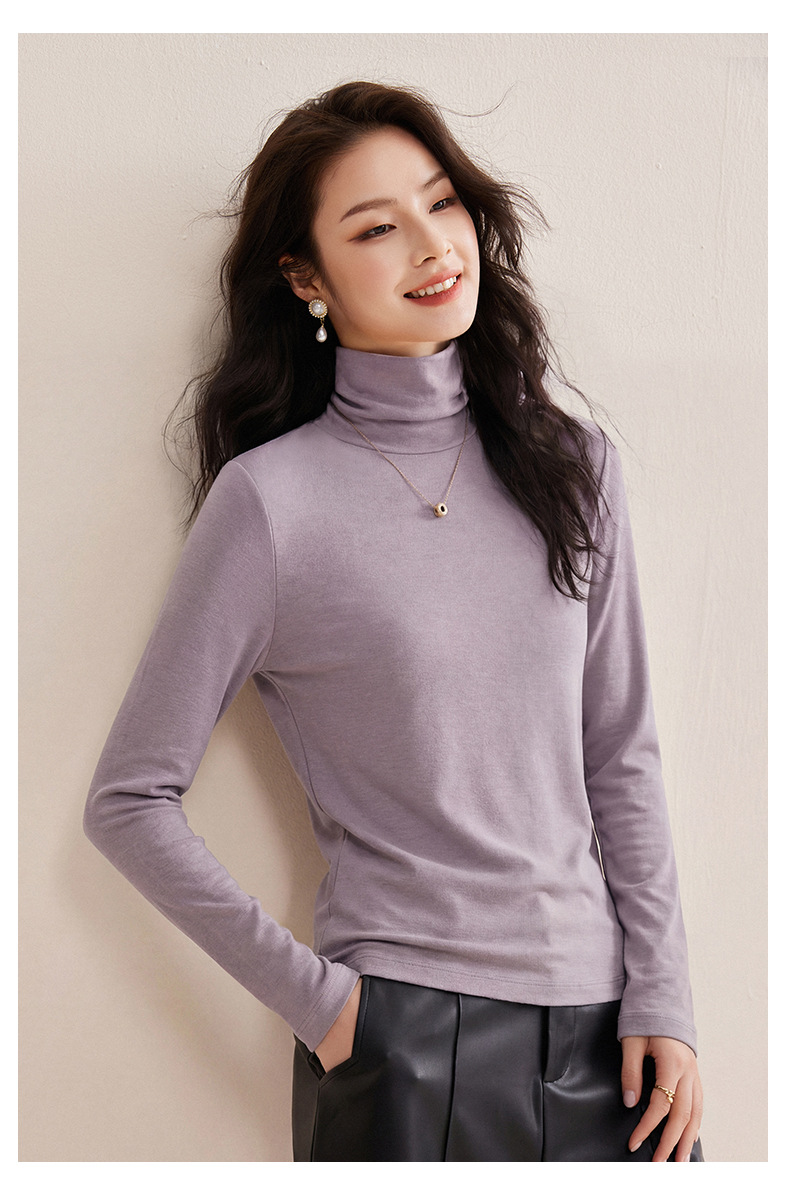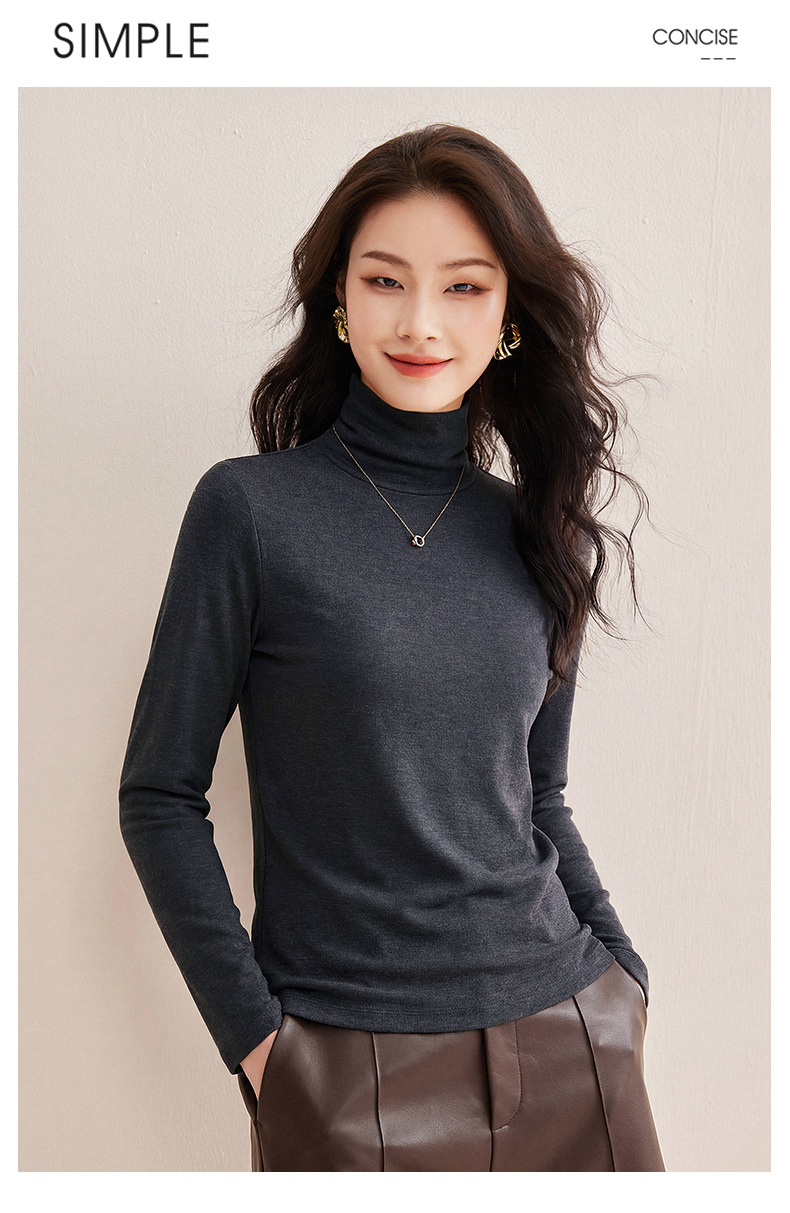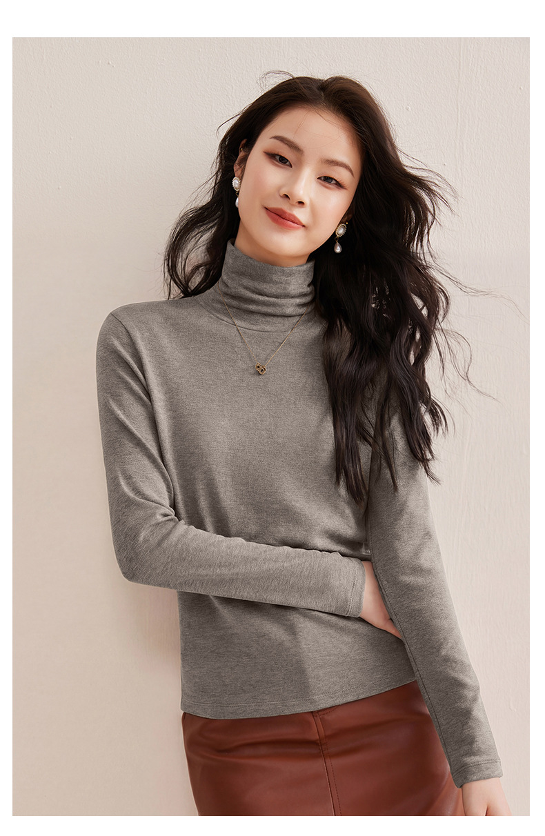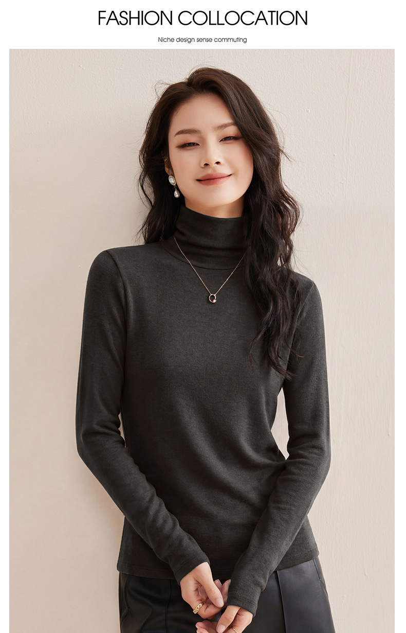 丁摩 可机洗美利奴精纺绵羊毛薄款高领打底衫女堆堆领修身针织高端内搭5ZF-18