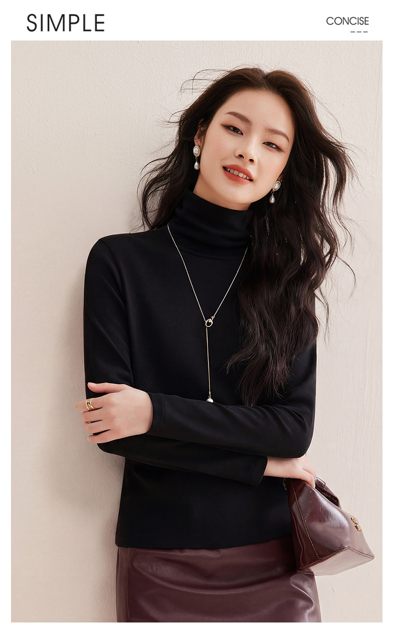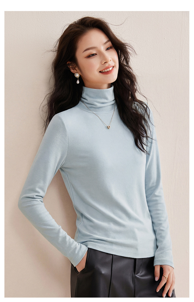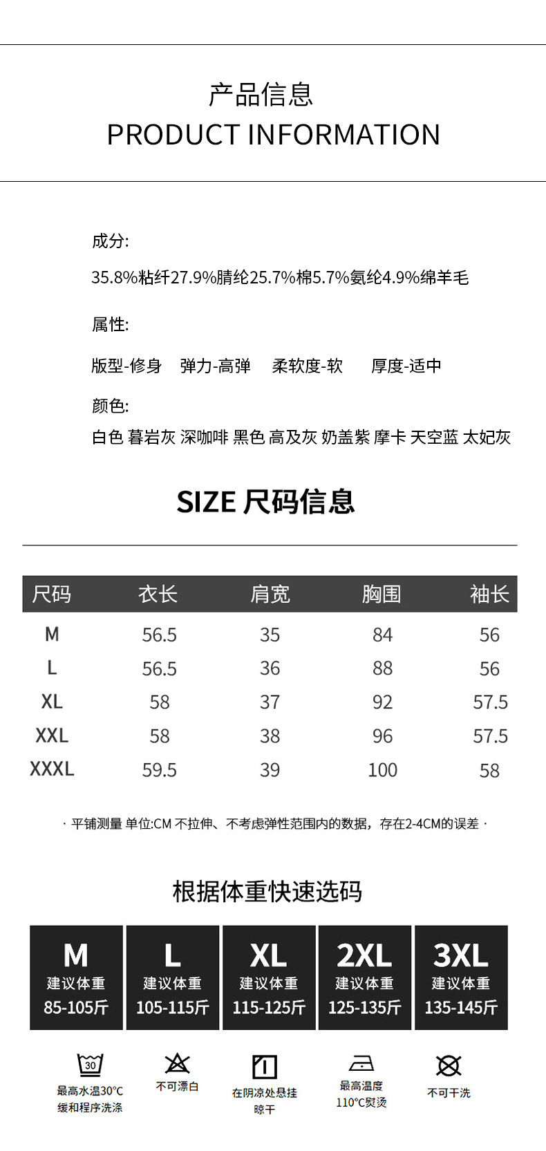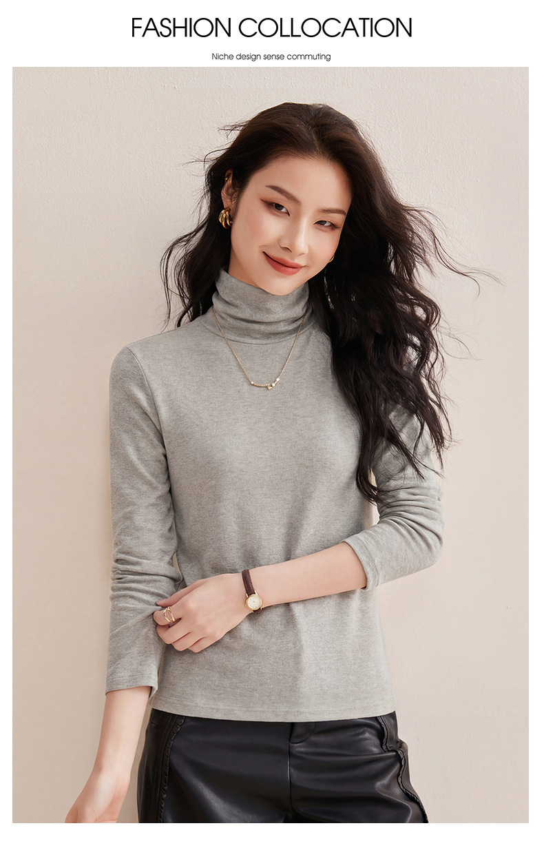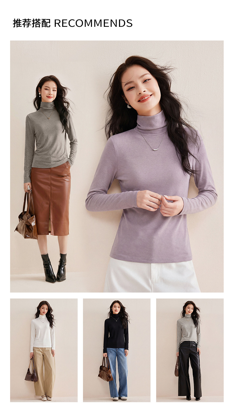 丁摩 可机洗美利奴精纺绵羊毛薄款高领打底衫女堆堆领修身针织高端内搭5ZF-18